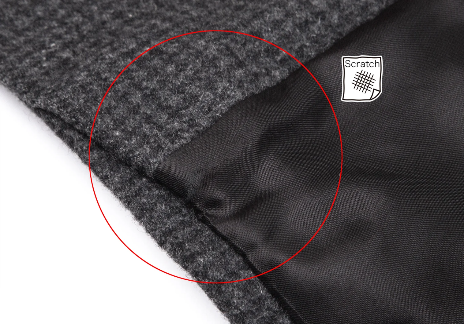 ウール70% ナイロン30% 裏地 アセテート50% レーヨン50% 袖裏地 ポリエステル100% 切り替え部分 ポリエステル65% コットン35%