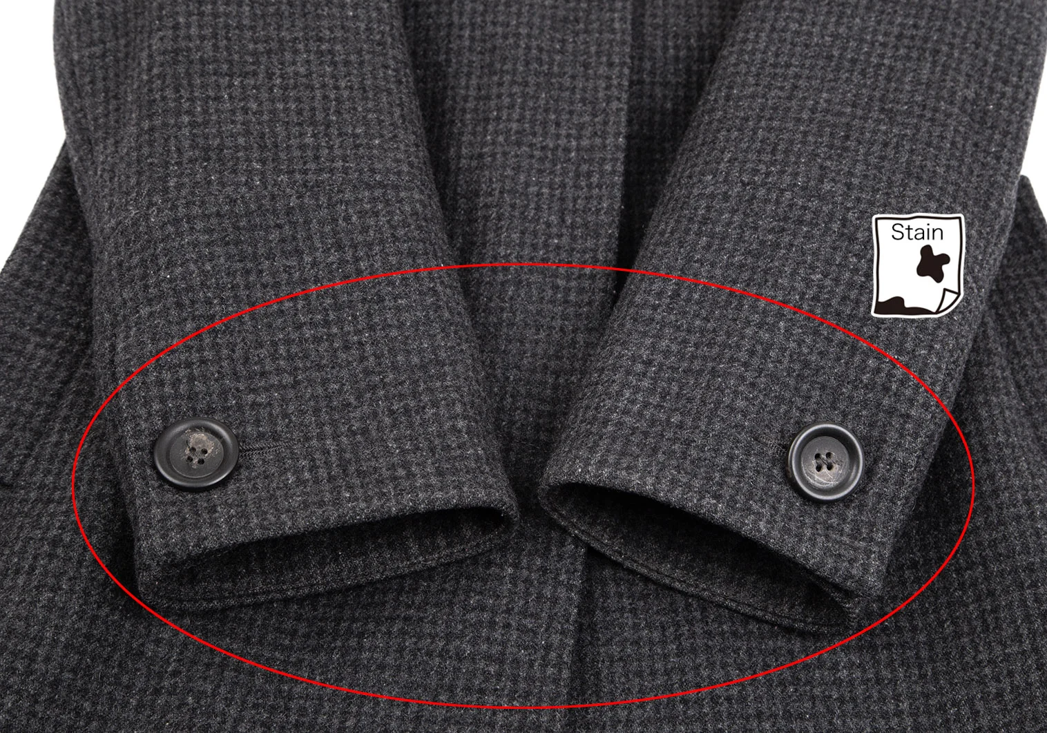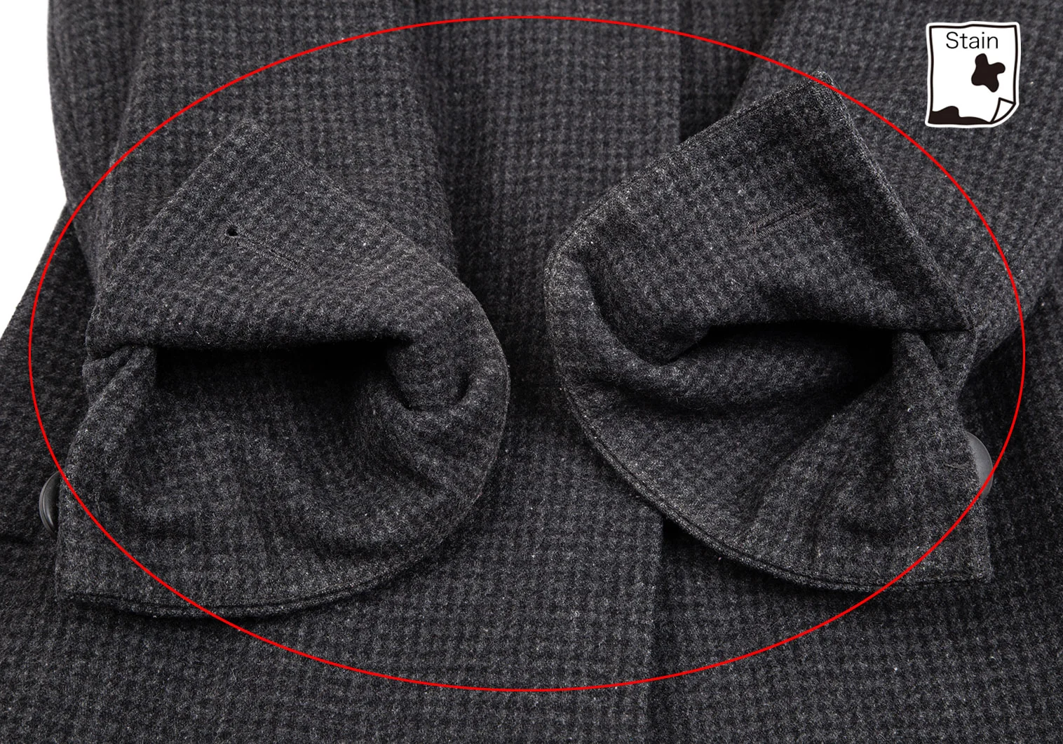 袖先・袖裏に薄シミ、裏裾先にダメージがあります(写真参照)。その他に目立ったシミ、汚れ、ほつれ等なくいい状態です。クリーニング済み