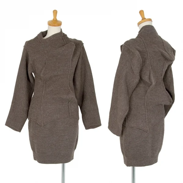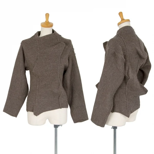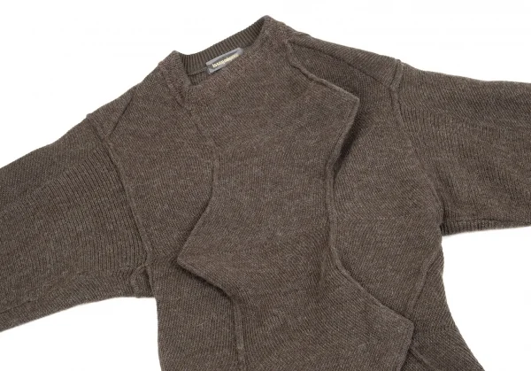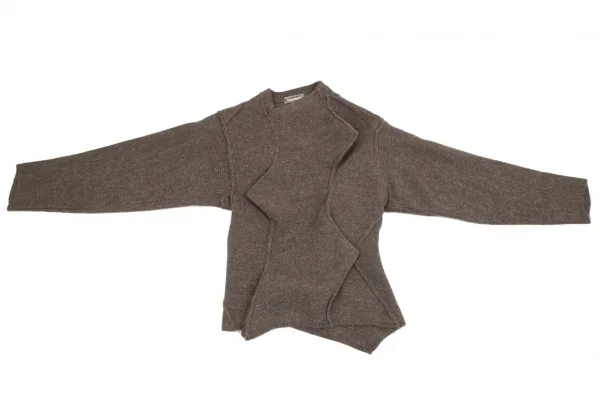 イッセイミヤケISSEY MIYAKE ジグザグ切替デザインニットセーター モカS