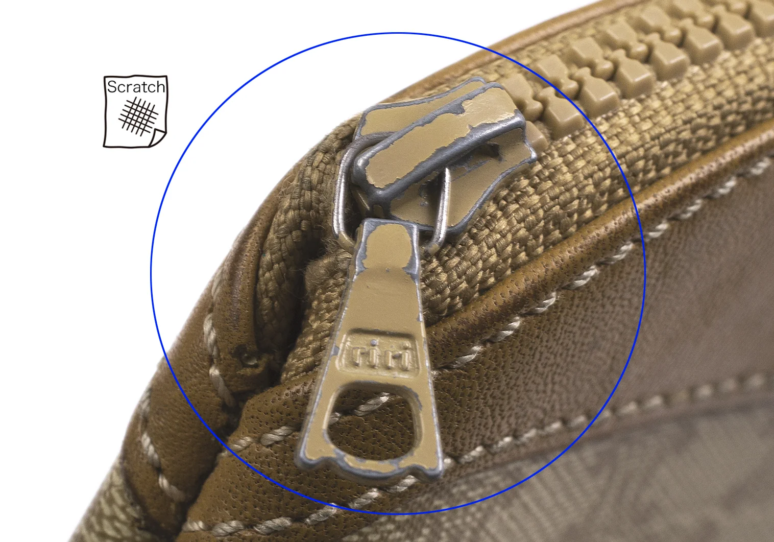 ジップ引き手塗装剥がれ、角擦れがあります(写真参照)。その他目立った傷や汚れなどなくいい状態です。