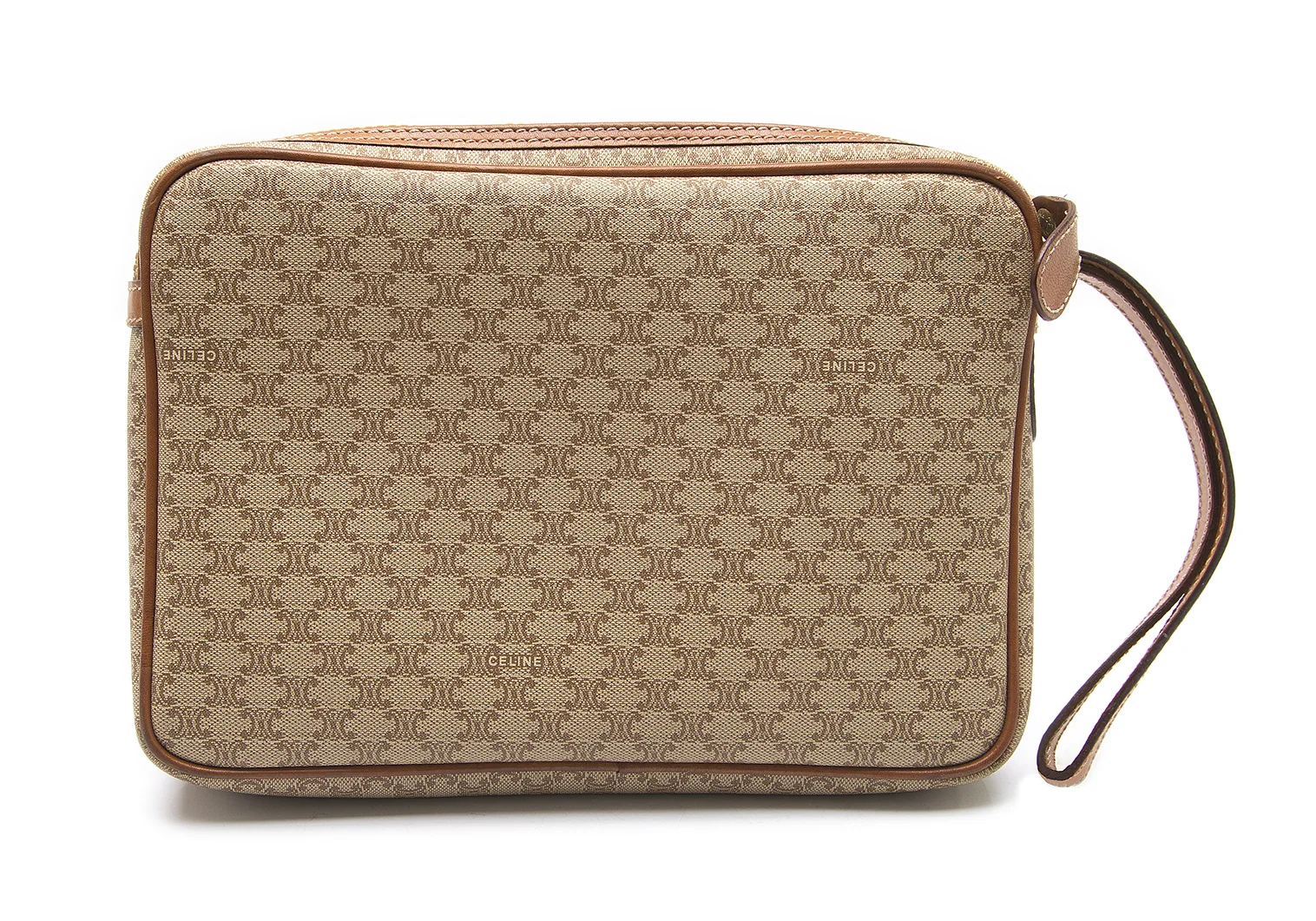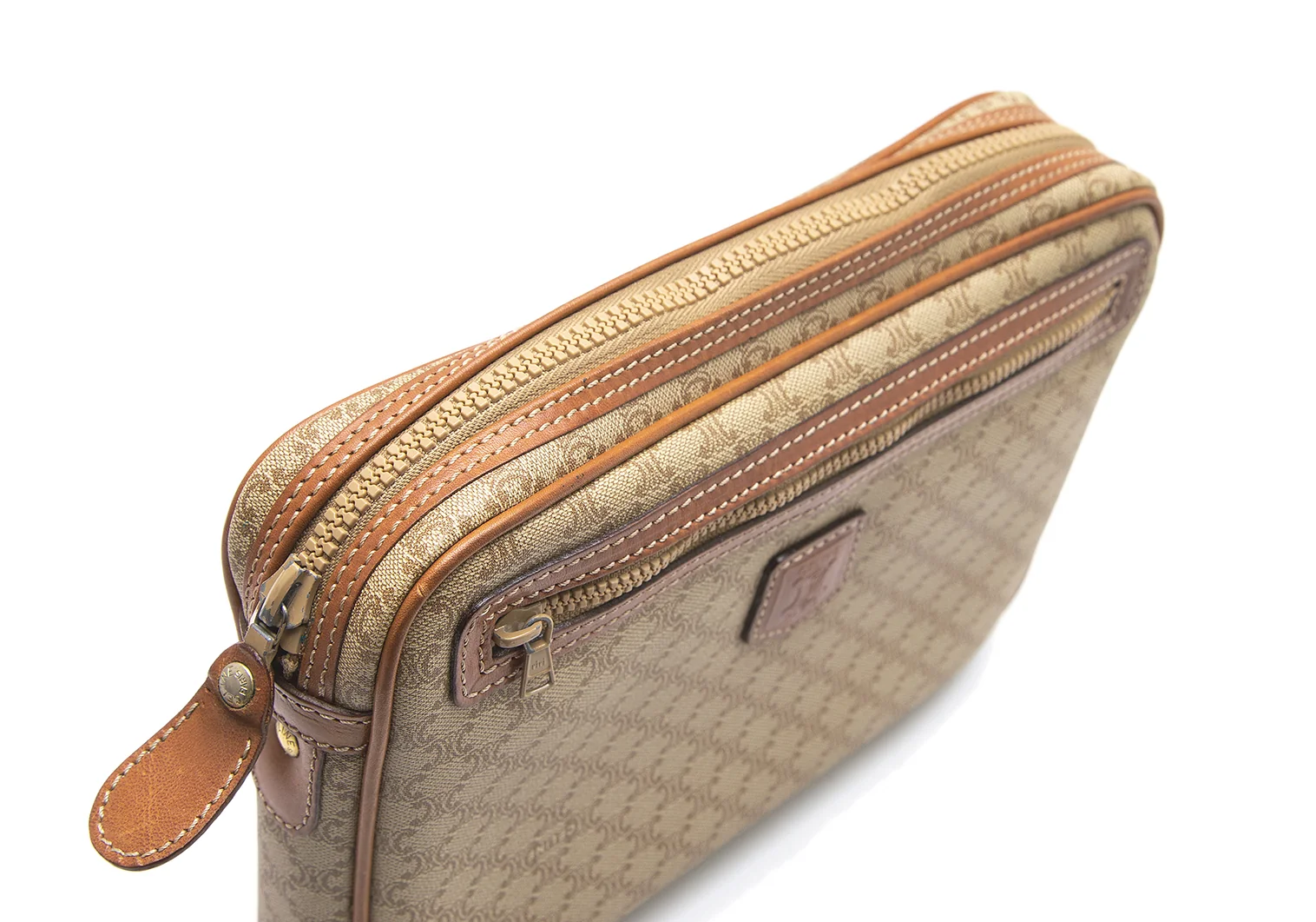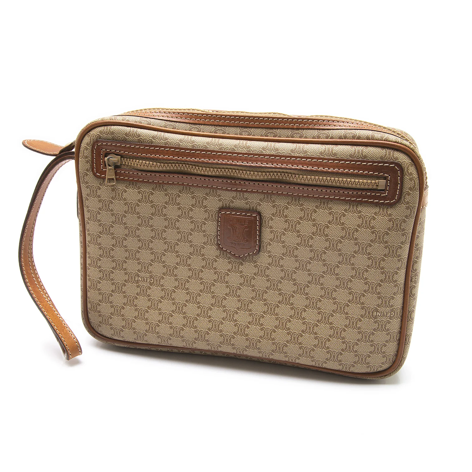 セリーヌCELINE オールドセリーヌマカダムクラッチバッグ 茶ベージュ