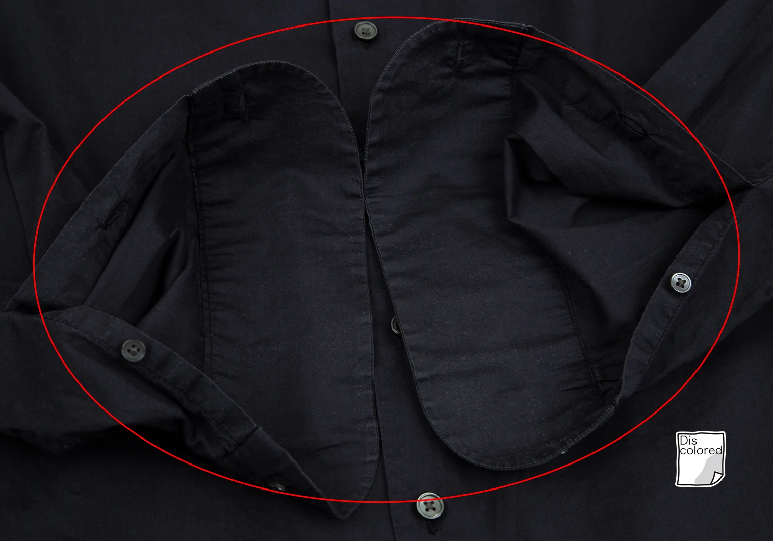 全体に若干の毛羽立ちがあります。襟裏・袖表裏に色褪せ、左肩に変色があります。(画像参照)その他ほつれ等ありません。クリーニング済み