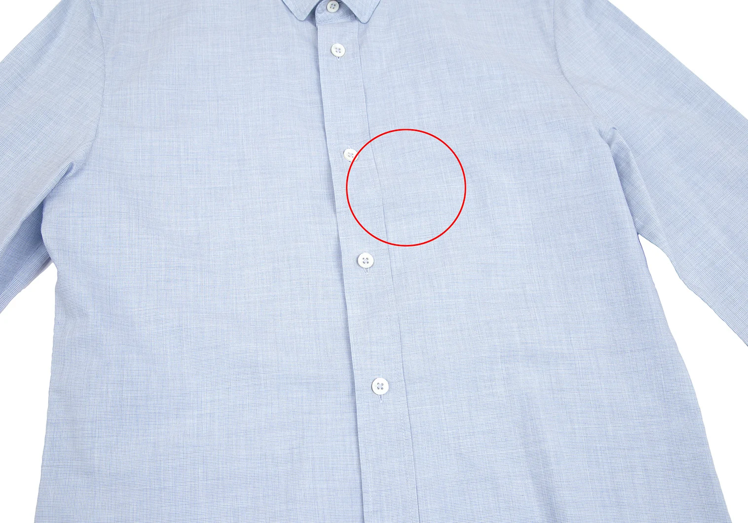 若干透け感があります。前身頃に薄シミがあります(写真参照)その他目立ったシミ、汚れ、ほつれ等なくいい状態です。クリーニング済み
