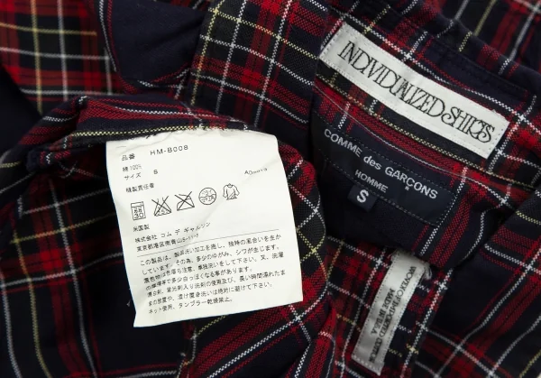 コムデギャルソン オム×インディビジュアライズドシャツCOMME des GARCONS HOMME×INDIVIDUALIZED HIRT オックスフォードタータンチェックシャツ 紺赤S