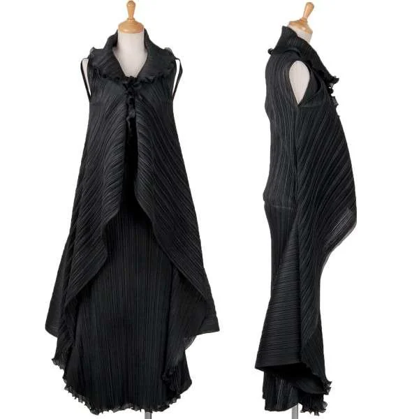 プリーツプリーズPLEATS PLEASE ノースリーブ羽織デザインプリーツワンピース 黒5