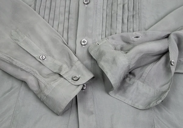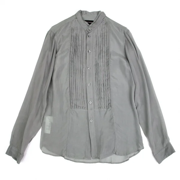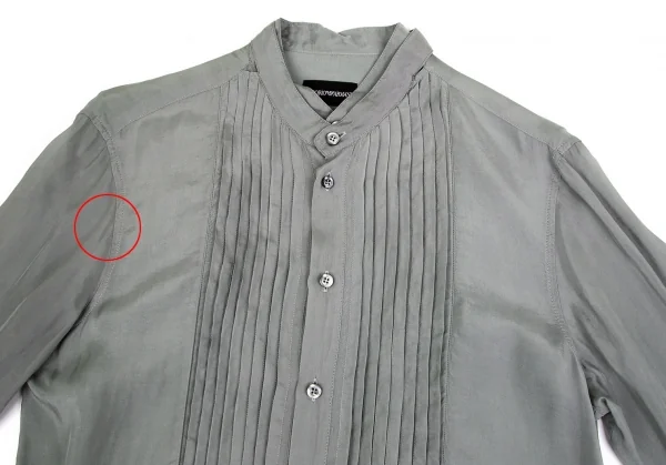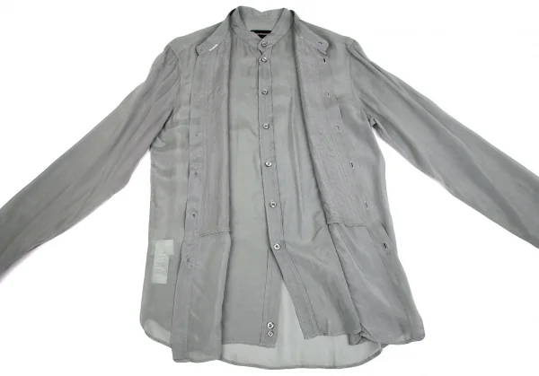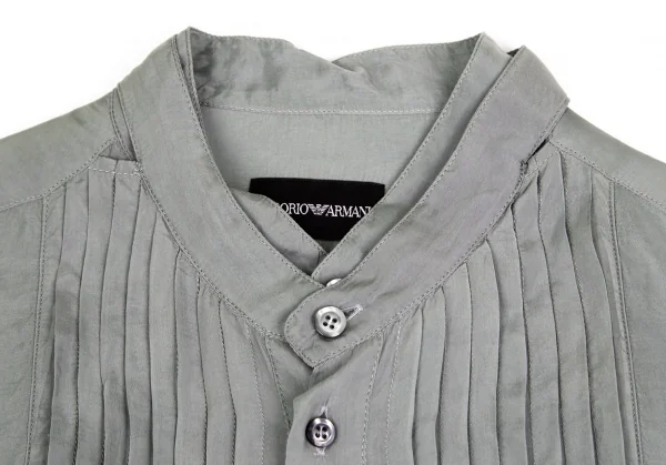 エンポリオアルマーニEMPORIO ARMANI レイヤードデザインピンタックバンドカラーシャツ グレーM位