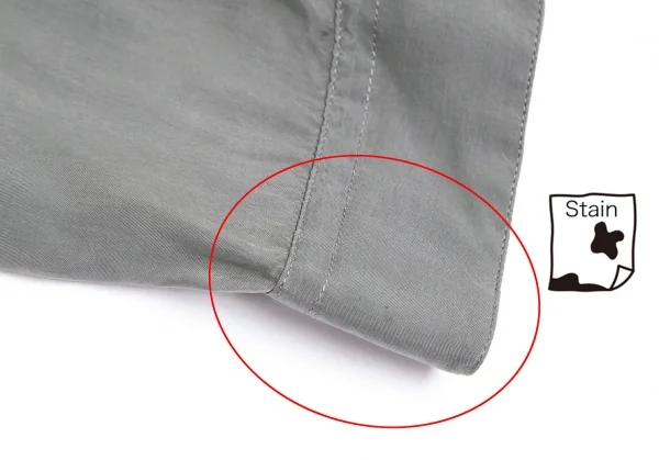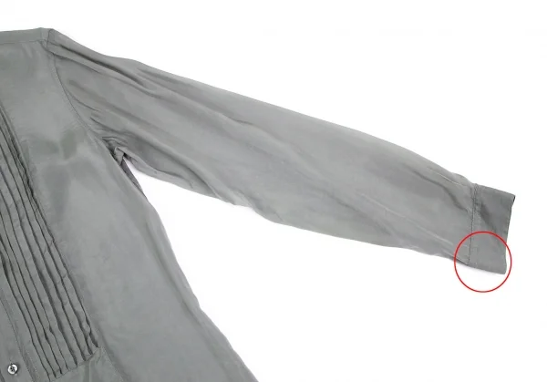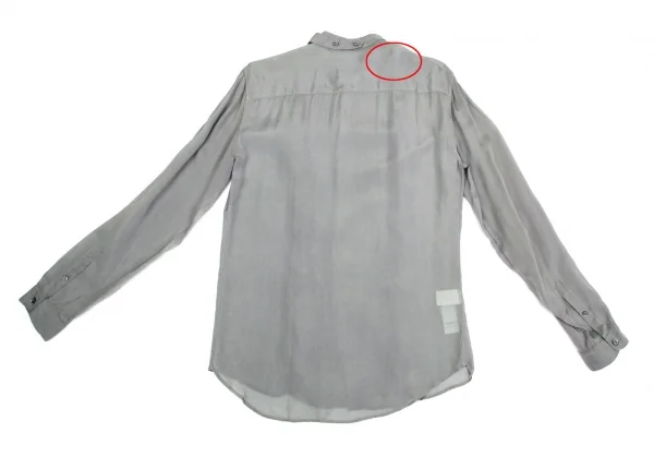 透け感があります。右脇に小さいアタリ、左袖先に小シミ、後ろ肩に薄シミがあります(写真参照)その他目立ったシミ、汚れ、ほつれ等なくいい状態です。クリーニング済み