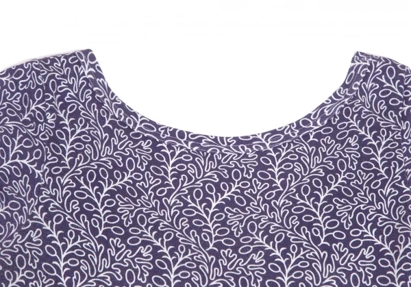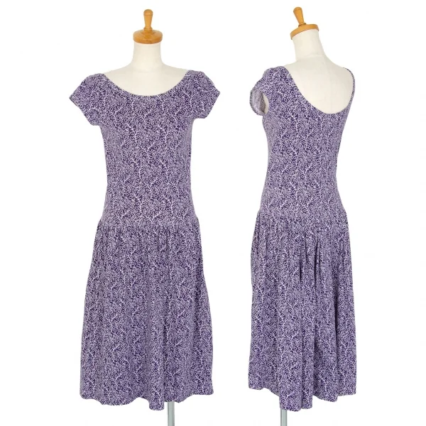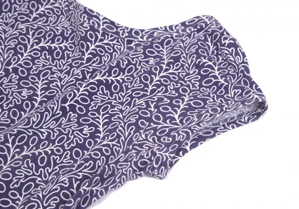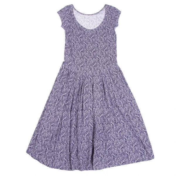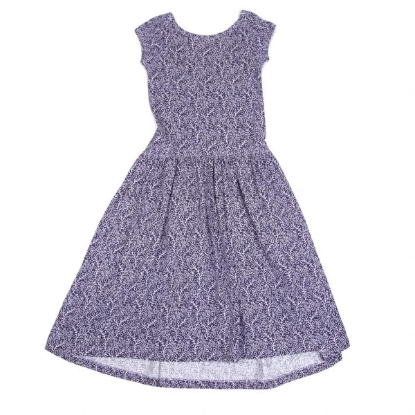 コムコム コムデギャルソンCOMME des GARCONS コットン天竺ボタニカルプリントノースリーブワンピース 紺白SS