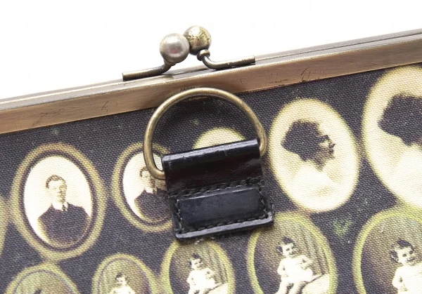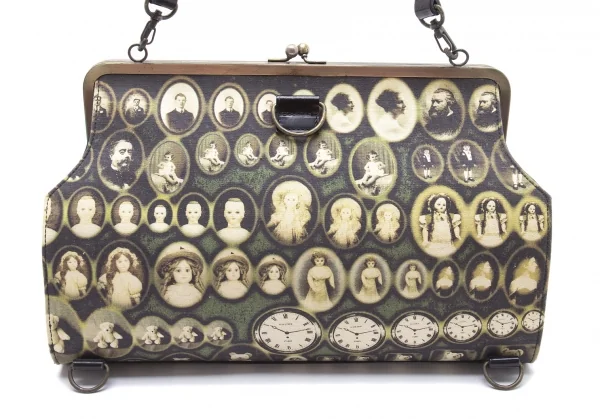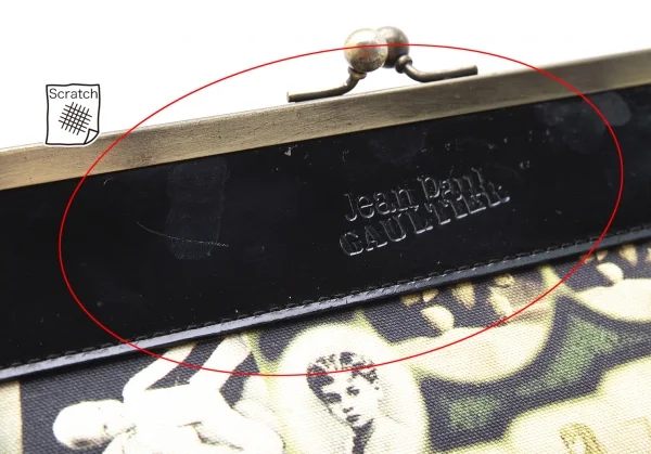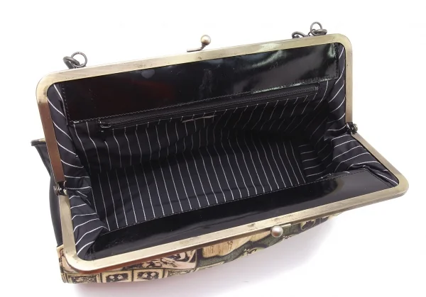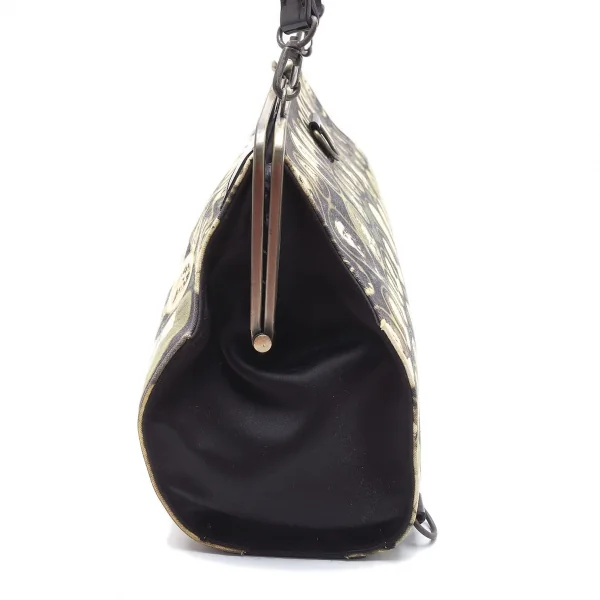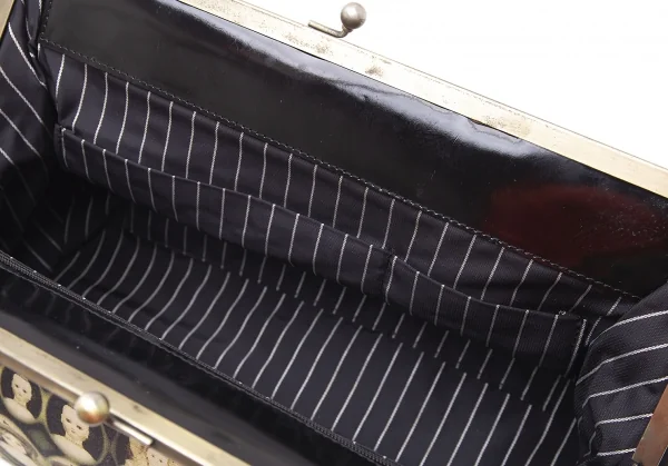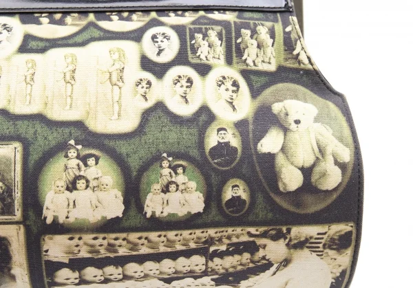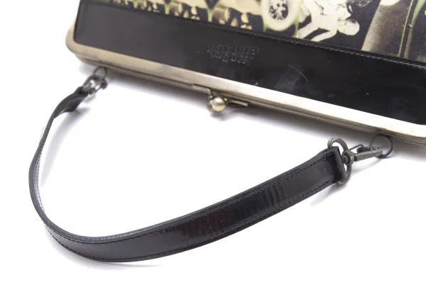 ジャンポールゴルチエJean Paul GAULTIER 肖像画プリントキャンバスがま口バッグ 黒ベージュ