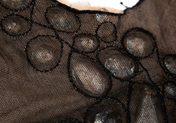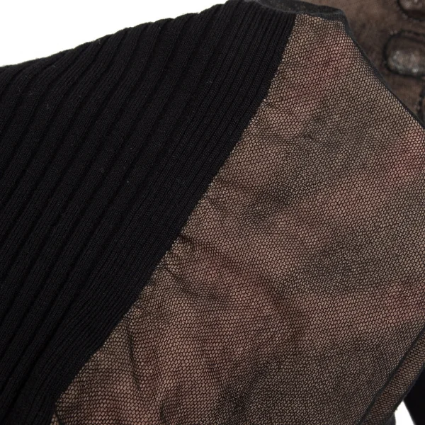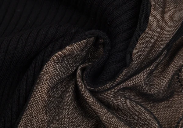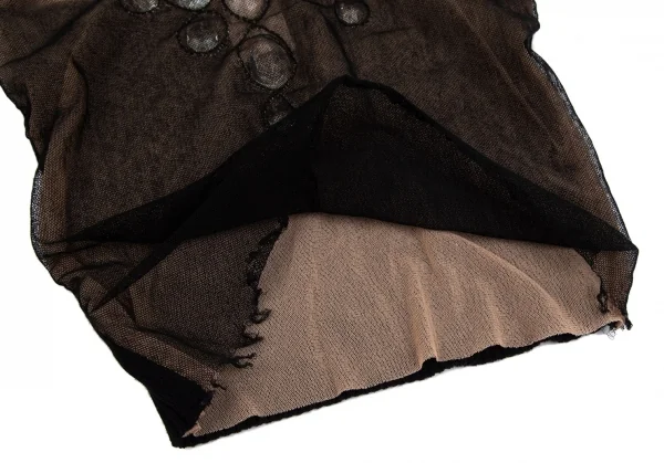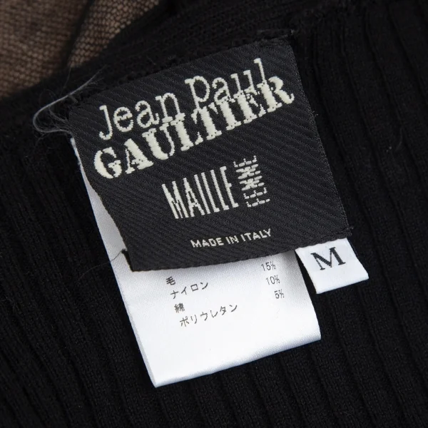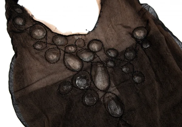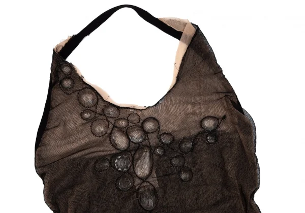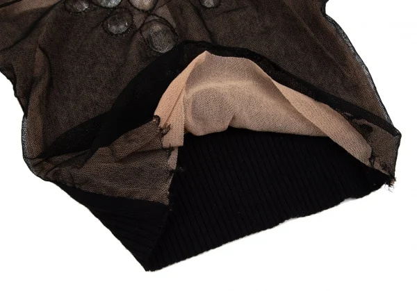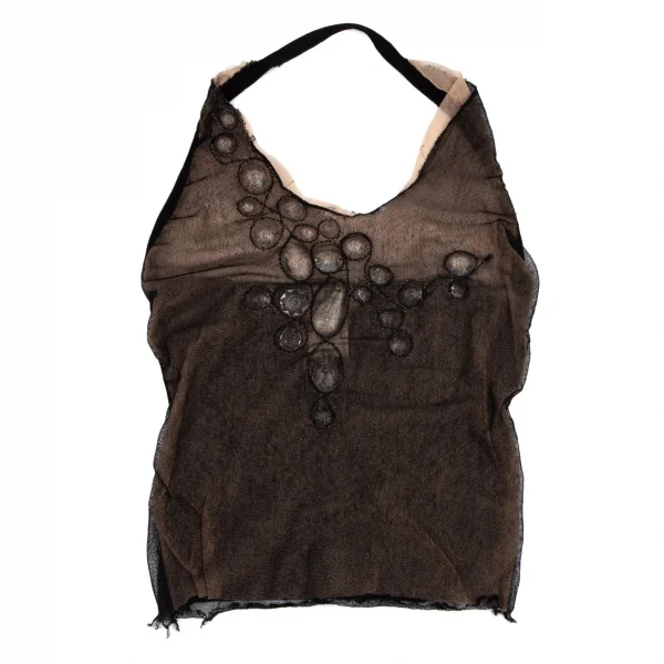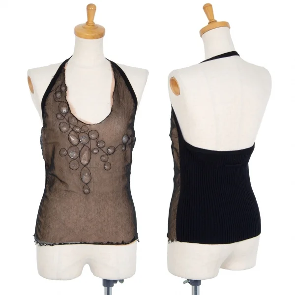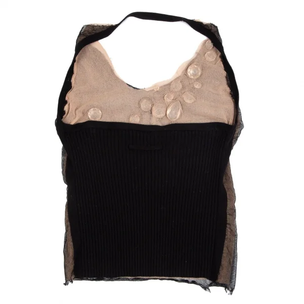 ジャンポールゴルチエ マイユファムJean Paul GAULTIER MAILLE FEMME ネットレイヤードビジュー装飾ホルターネックニットキャミソール 黒ベージュM