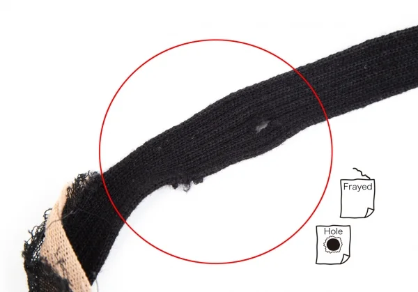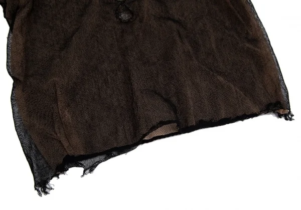 前身頃は透け感のある生地です。首元にほつれ・穴があります(画像参照)。その他目立ったシミ、汚れはありません。クリーニング済み