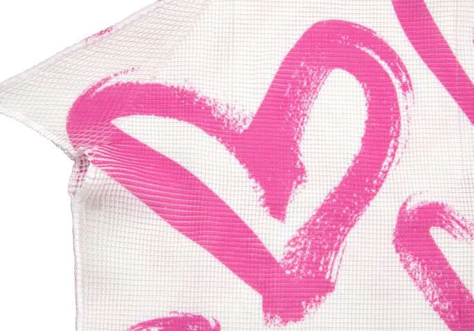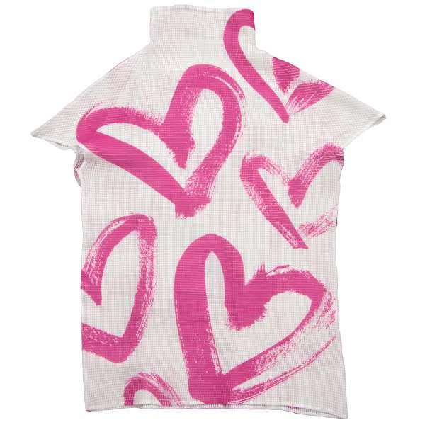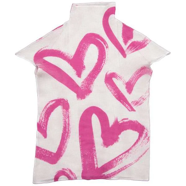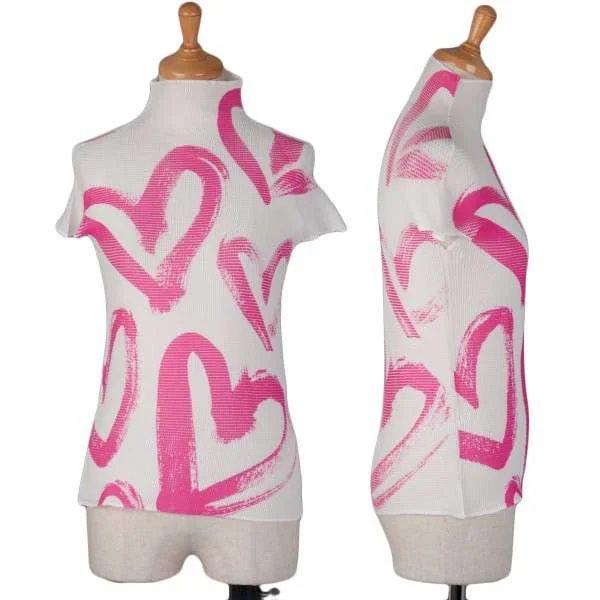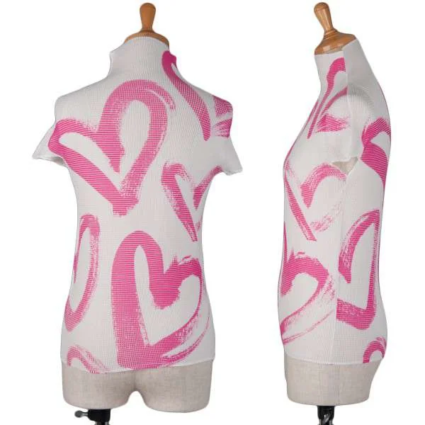 イッセイミヤケ ISSEY MIYAKE T プリーツハートプリントフレンチスリーブ 白ピンク3