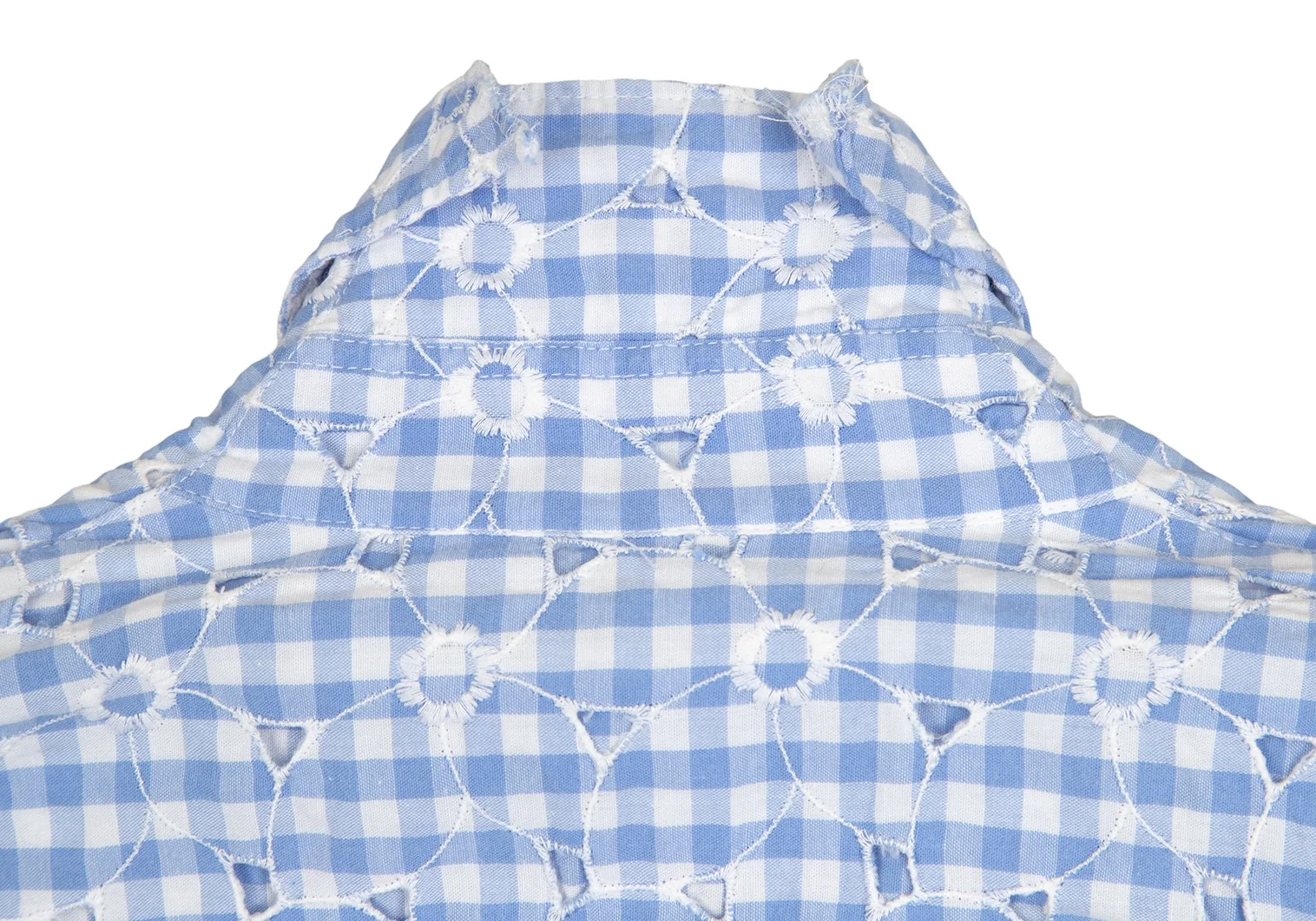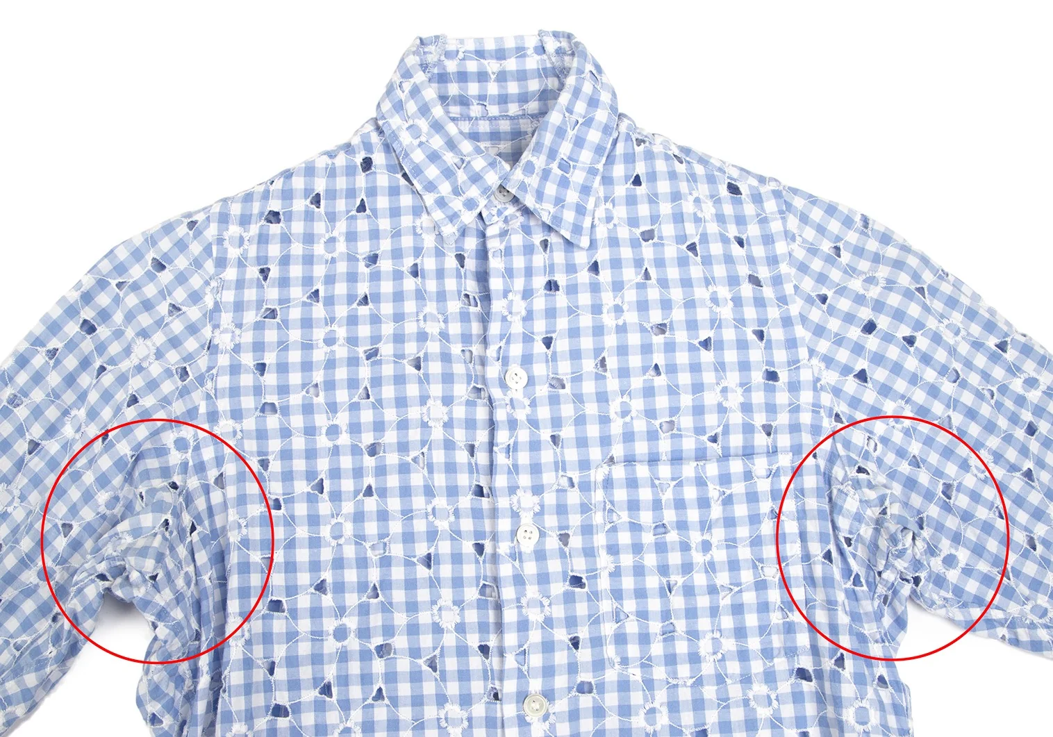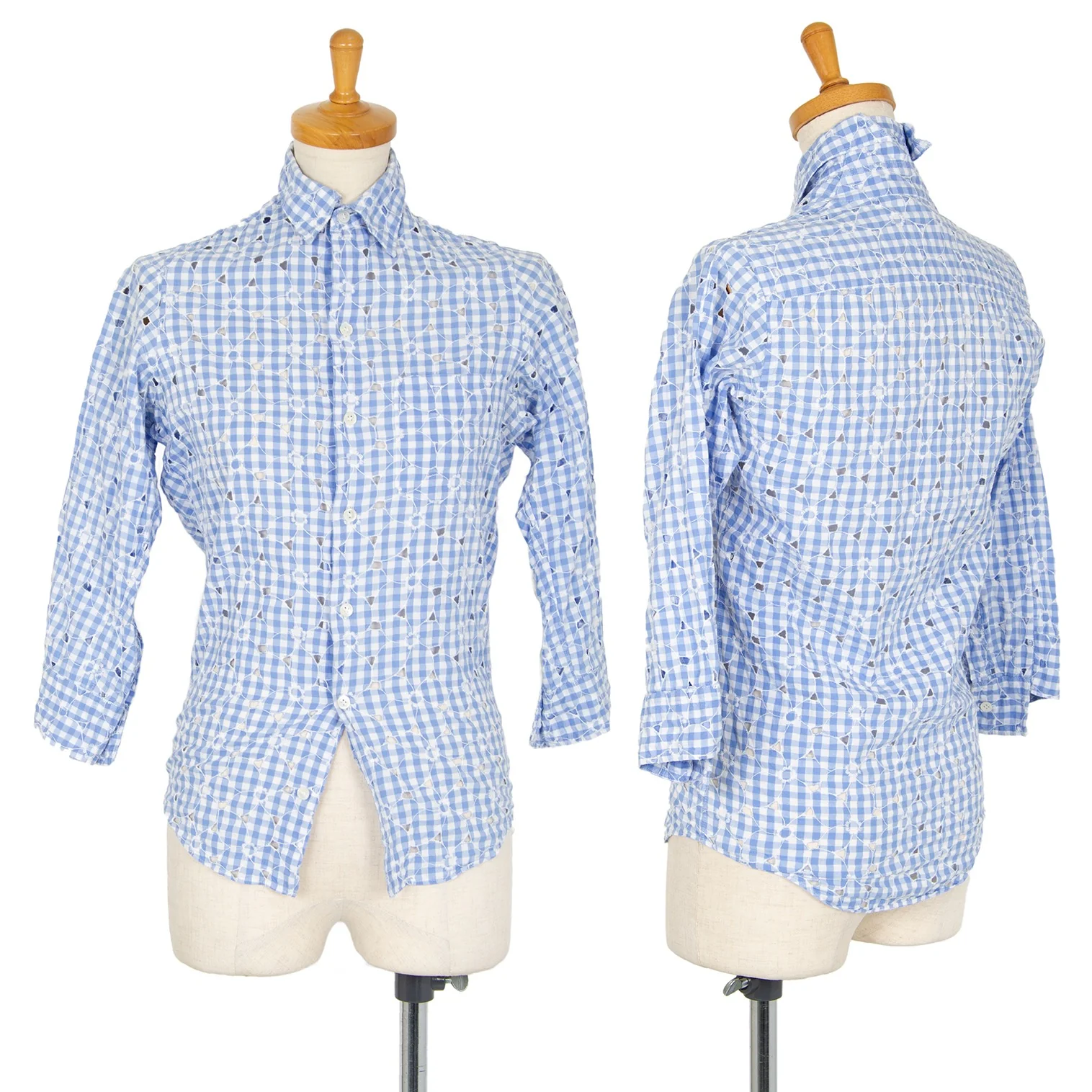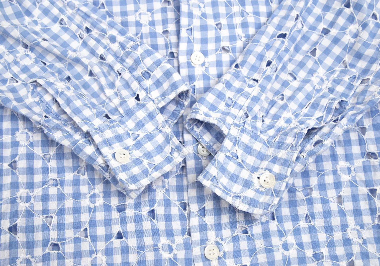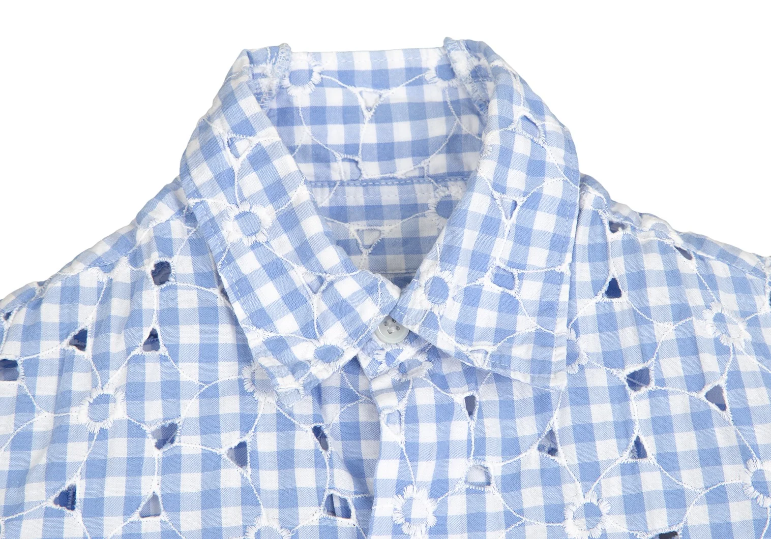ジュンヤワタナベ コムデギャルソンJUNYA WATANABE COMME des GARCONS フラワーエンブロイダリーレースギンガムチェック七分袖シャツ 水色白S
