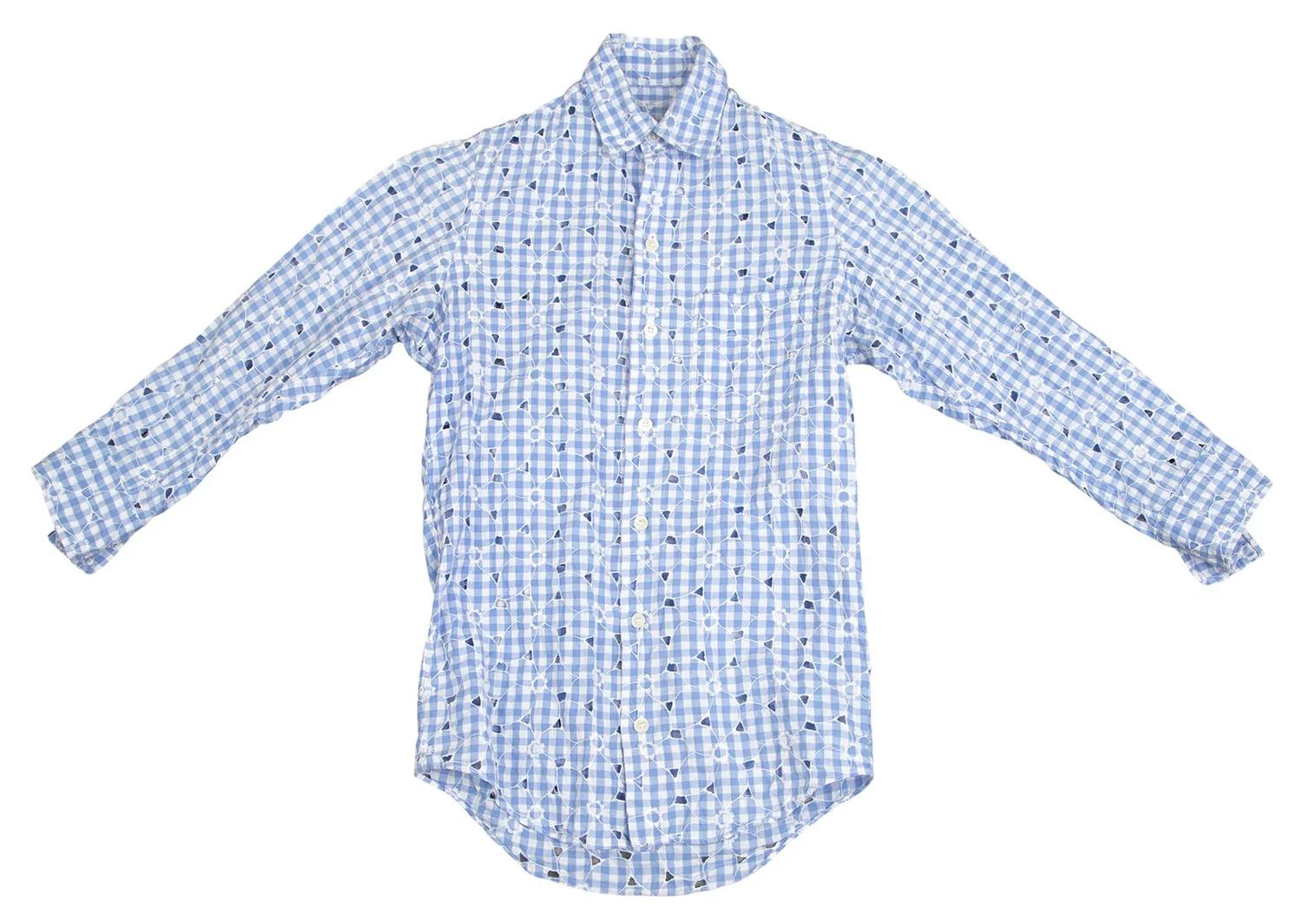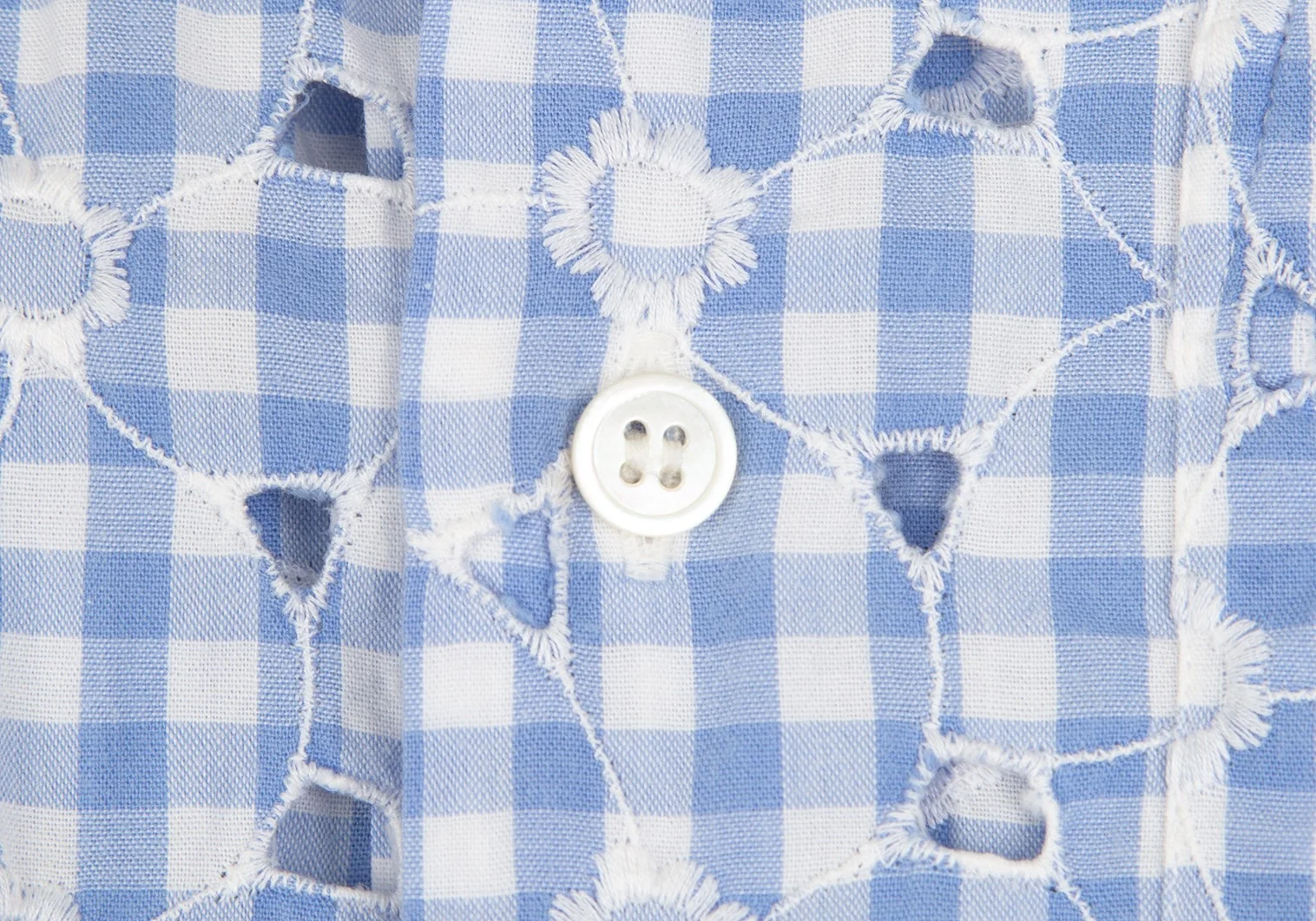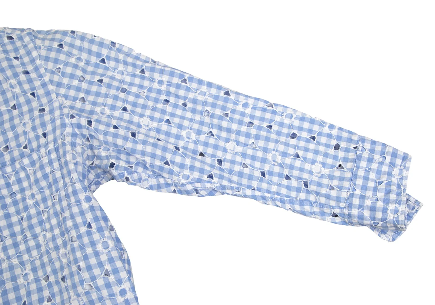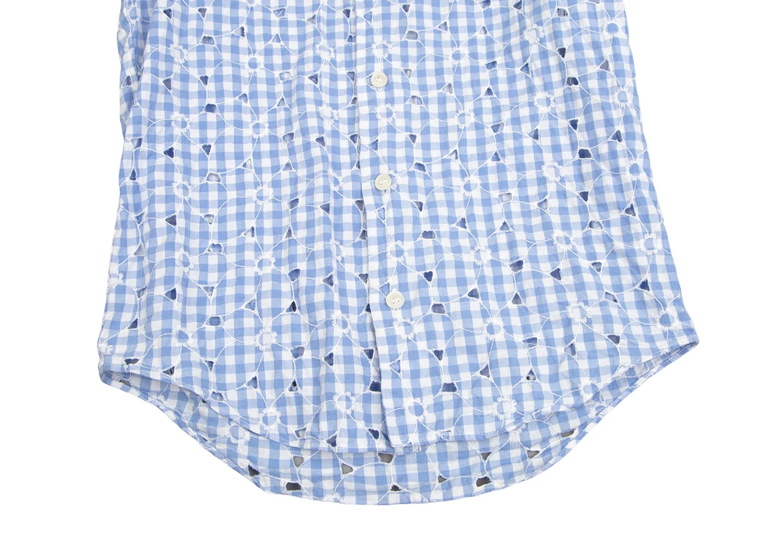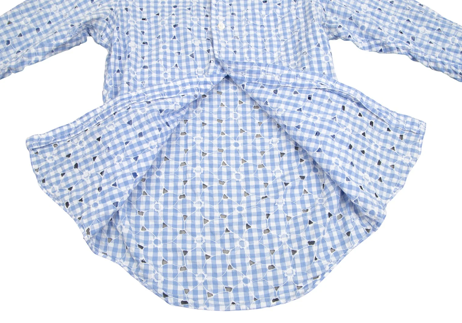ジュンヤワタナベ コムデギャルソンJUNYA WATANABE COMME des GARCONS フラワーエンブロイダリーレースギンガムチェック七分袖シャツ 水色白S