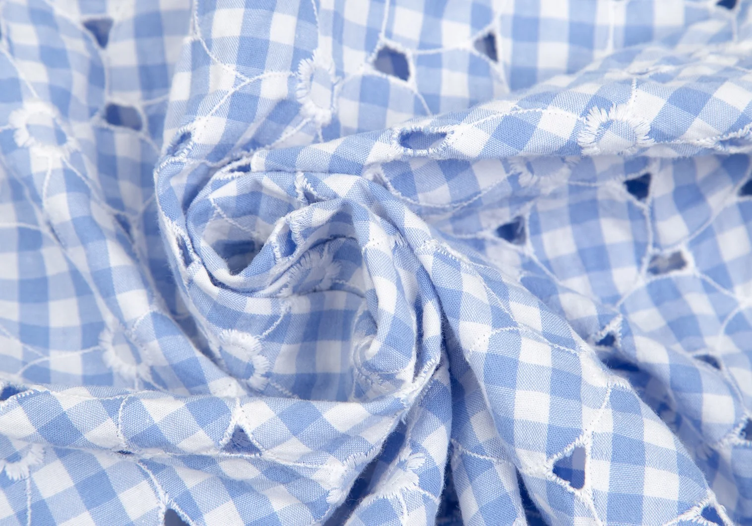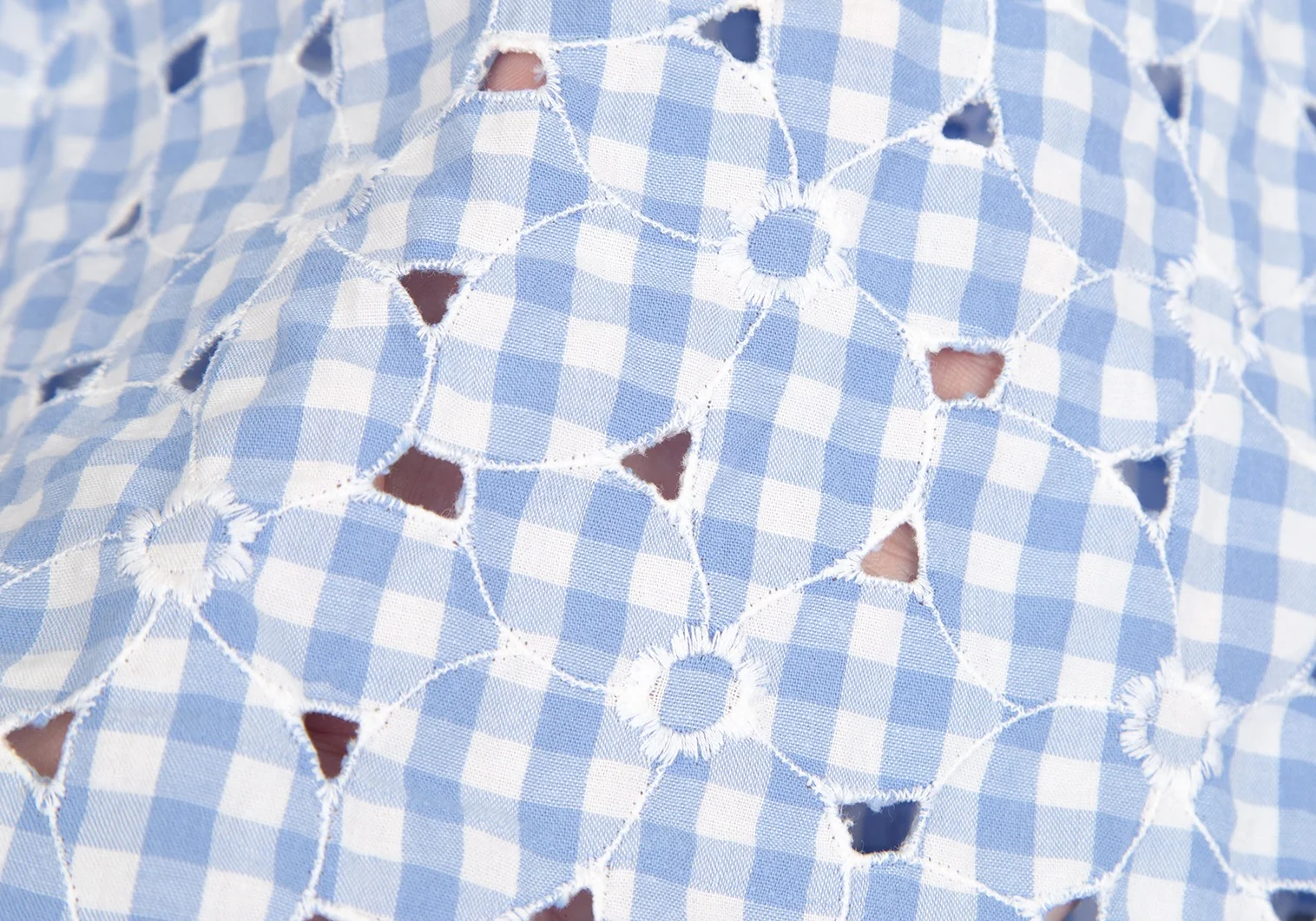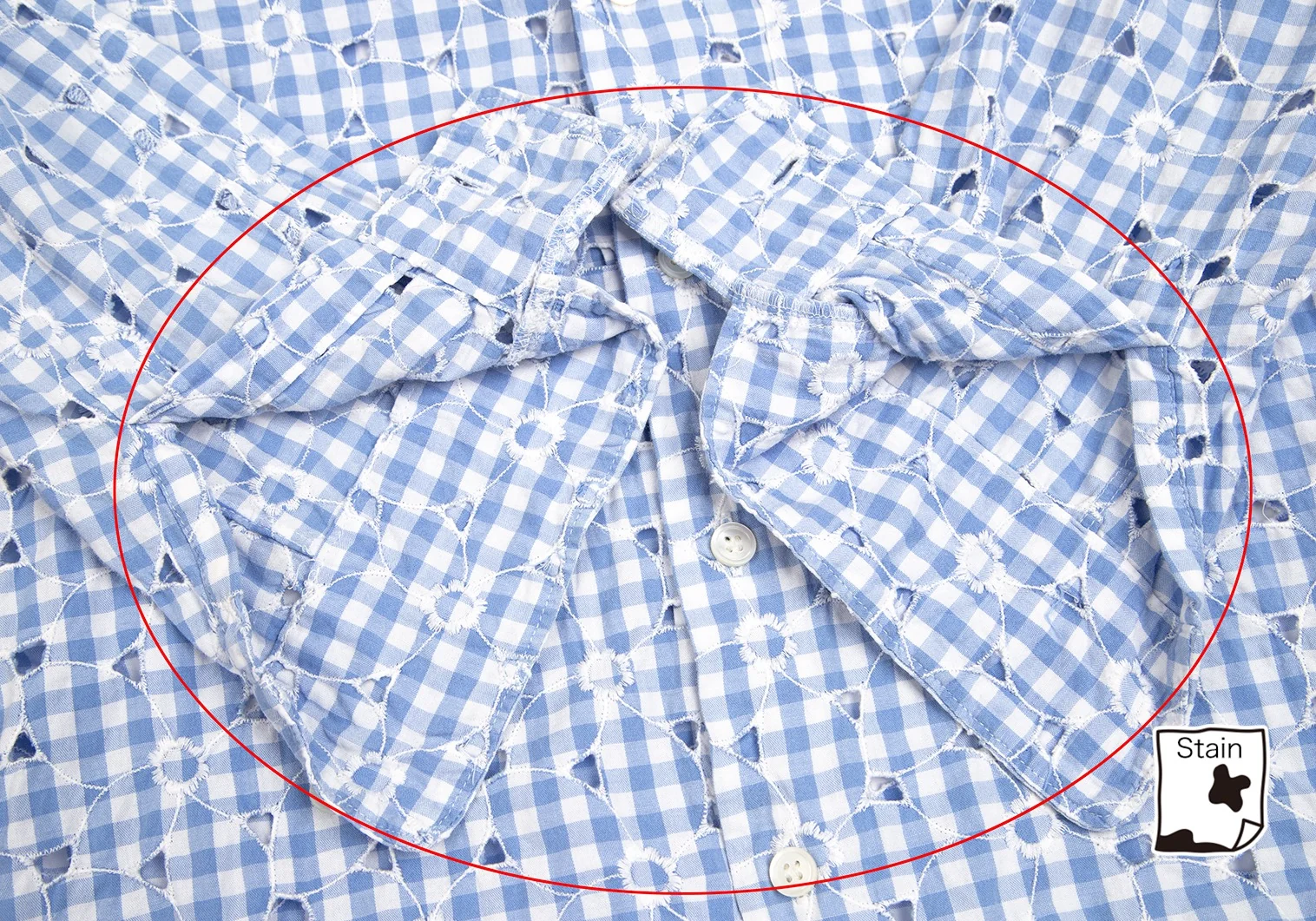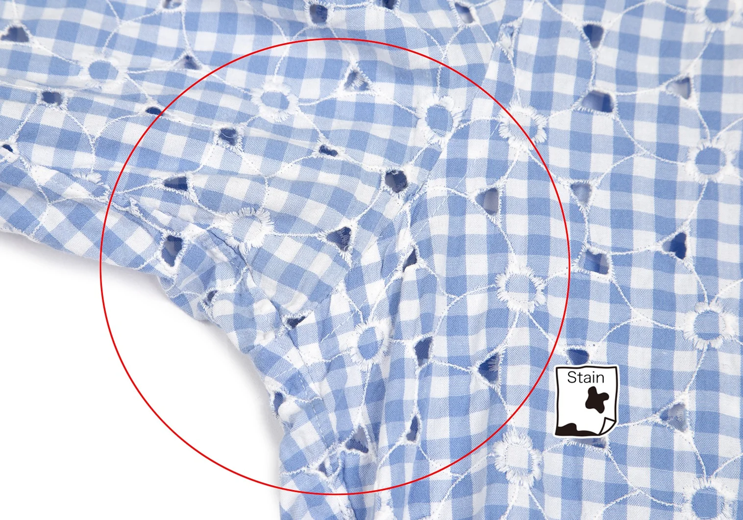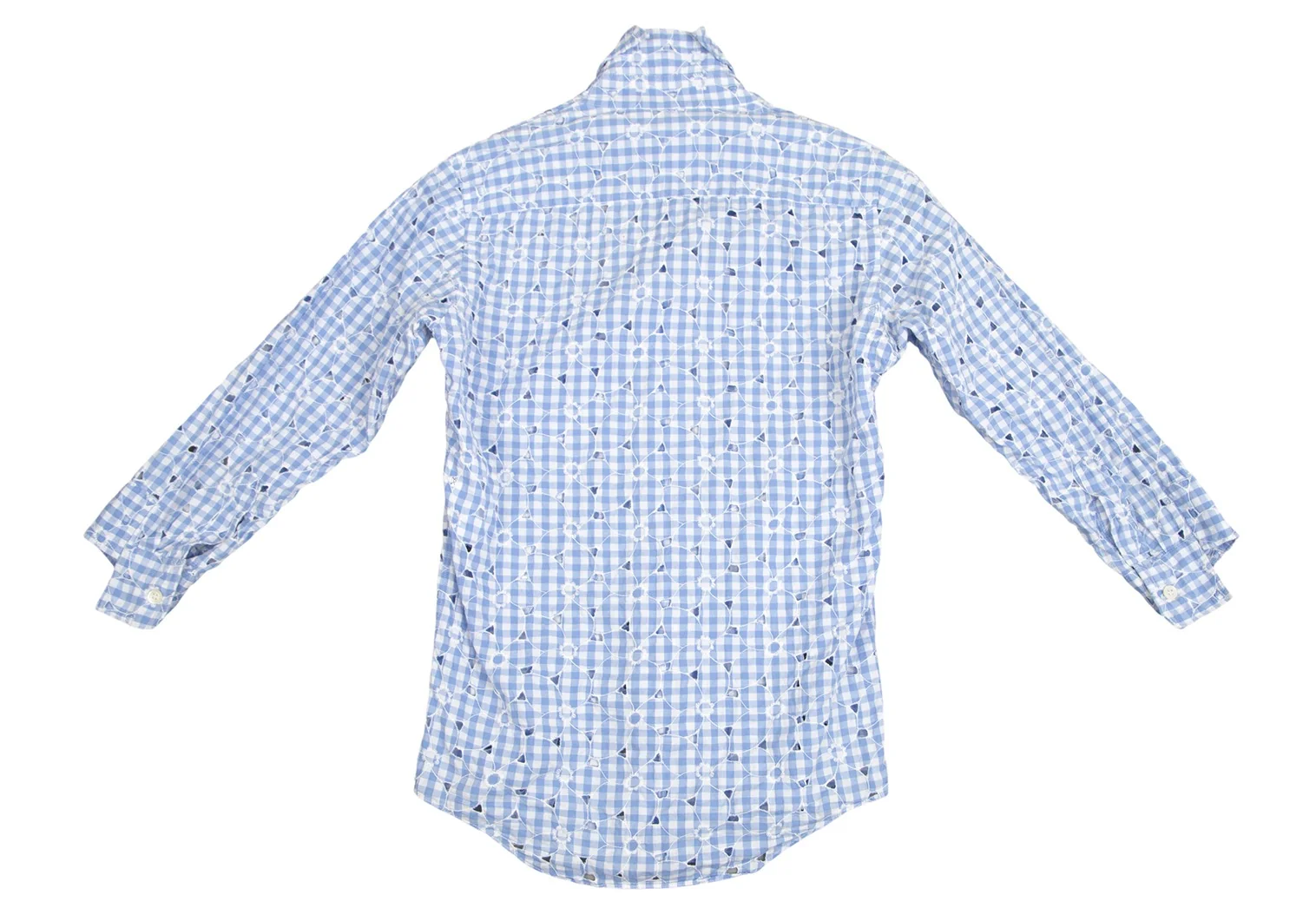 ジュンヤワタナベ コムデギャルソンJUNYA WATANABE COMME des GARCONS フラワーエンブロイダリーレースギンガムチェック七分袖シャツ 水色白S