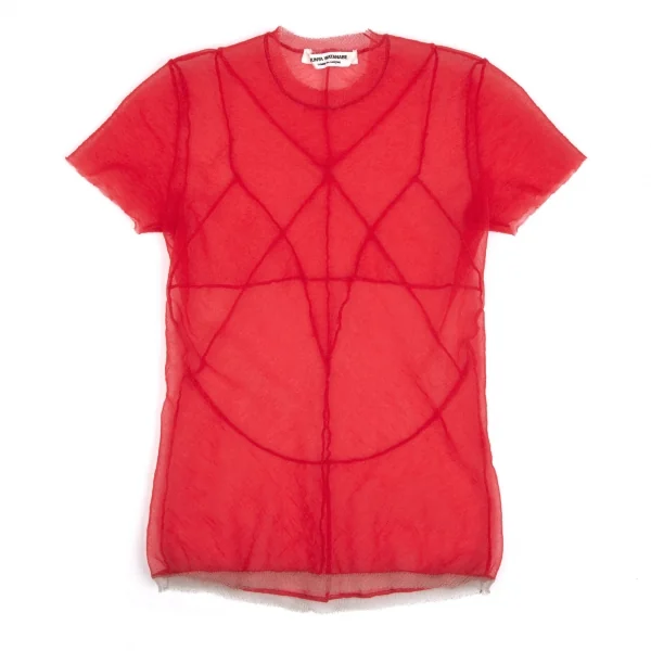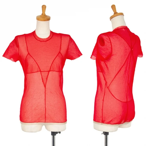 ジュンヤワタナベ コムデギャルソンJUNYA WATANABE COMME des GARCONS シースルー切替デザイン半袖ニット 赤M位