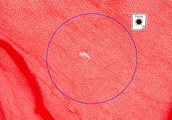 品質表示タグがありません。透け感があります。全体に細かい引っ掛け、後ろ身頃に小穴があります(写真参照)。その他に目立ったシミ、汚れ等はありません。クリーニング済み