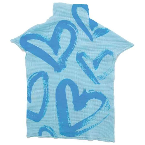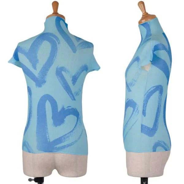 イッセイミヤケ ISSEY MIYAKE T プリーツハートプリントフレンチスリーブ 青3
