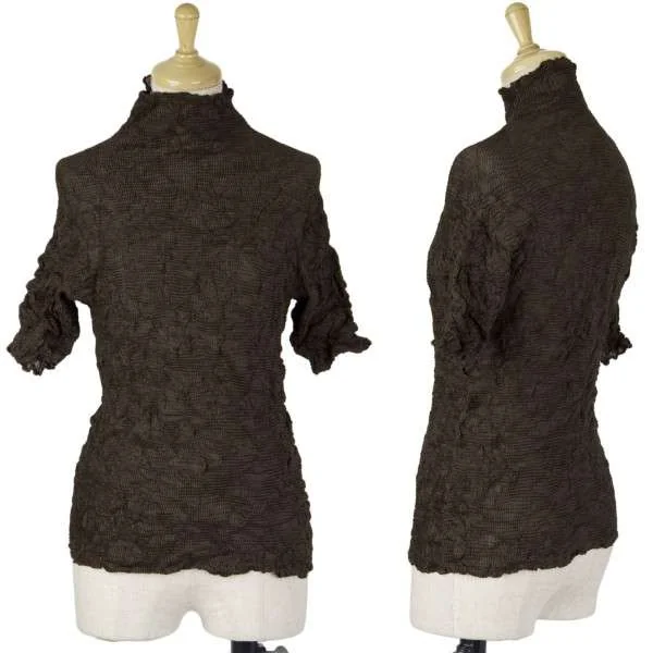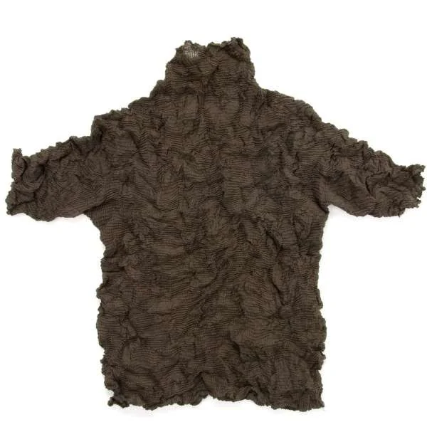 イッセイミヤケ ISSEY MIYAKE T 半袖プリーツしわ加工 茶M