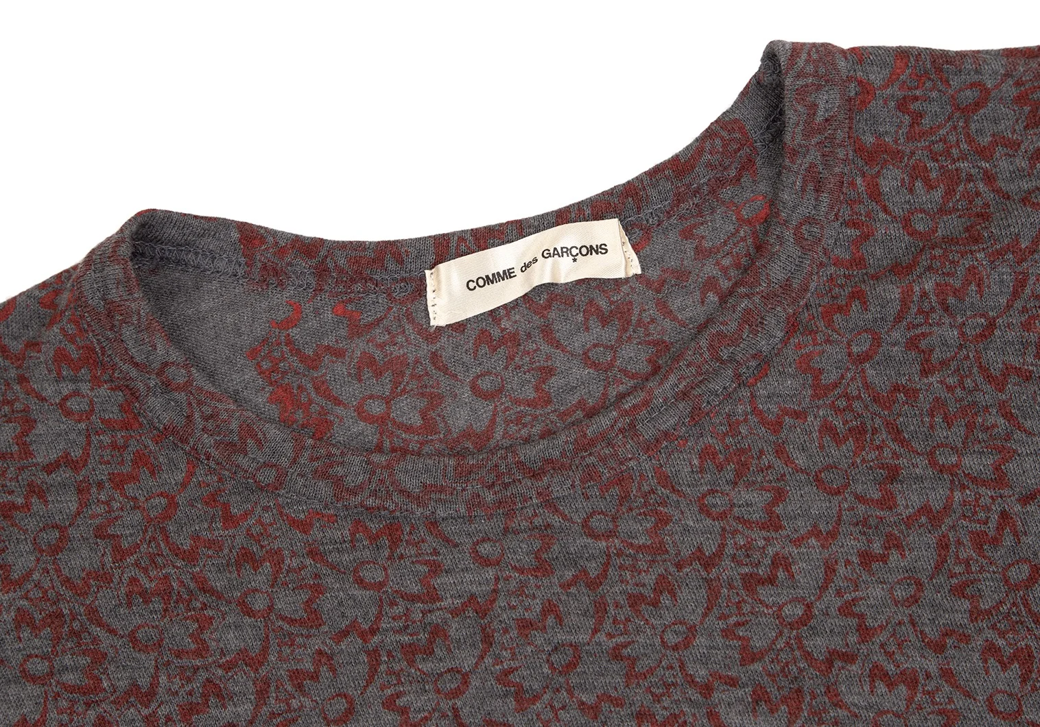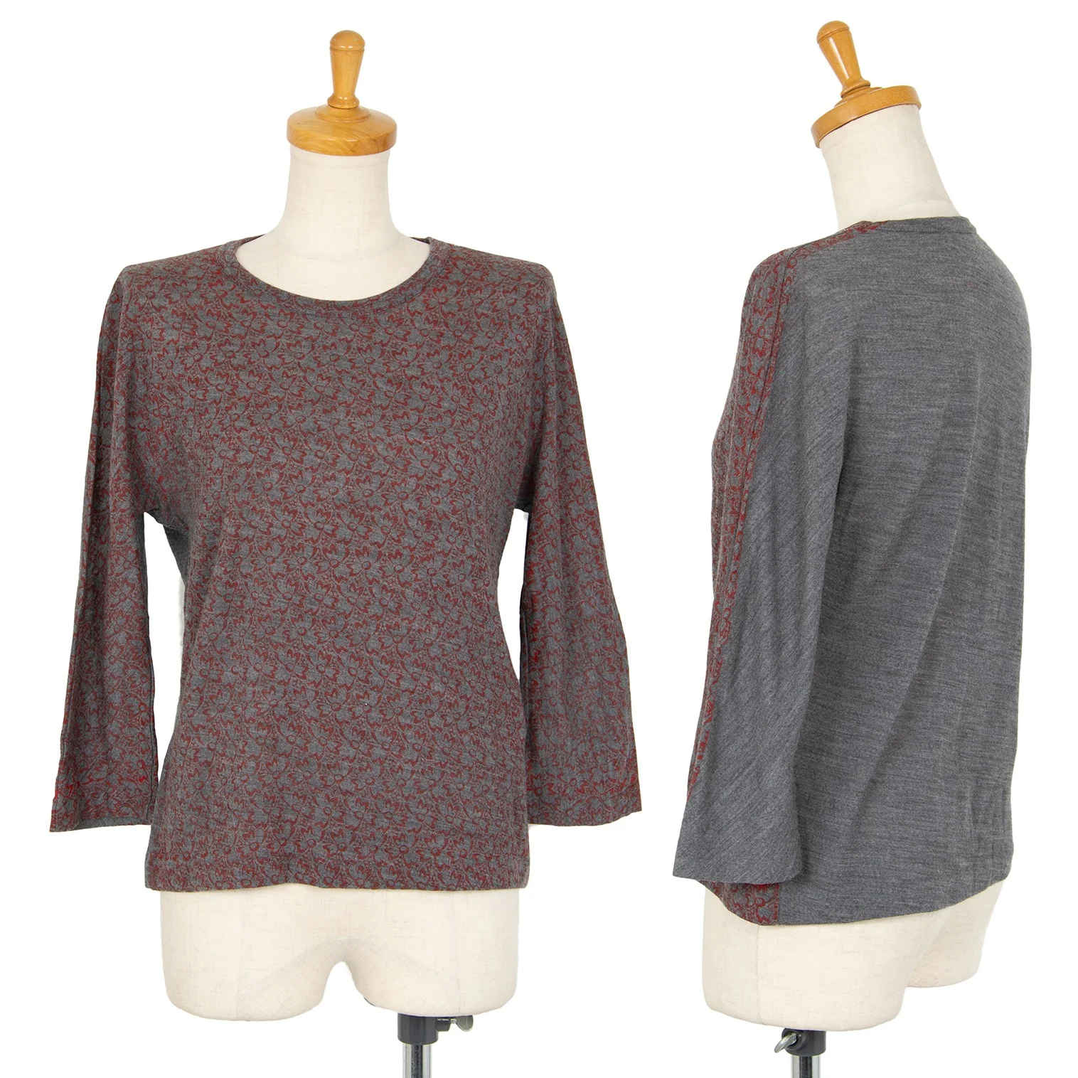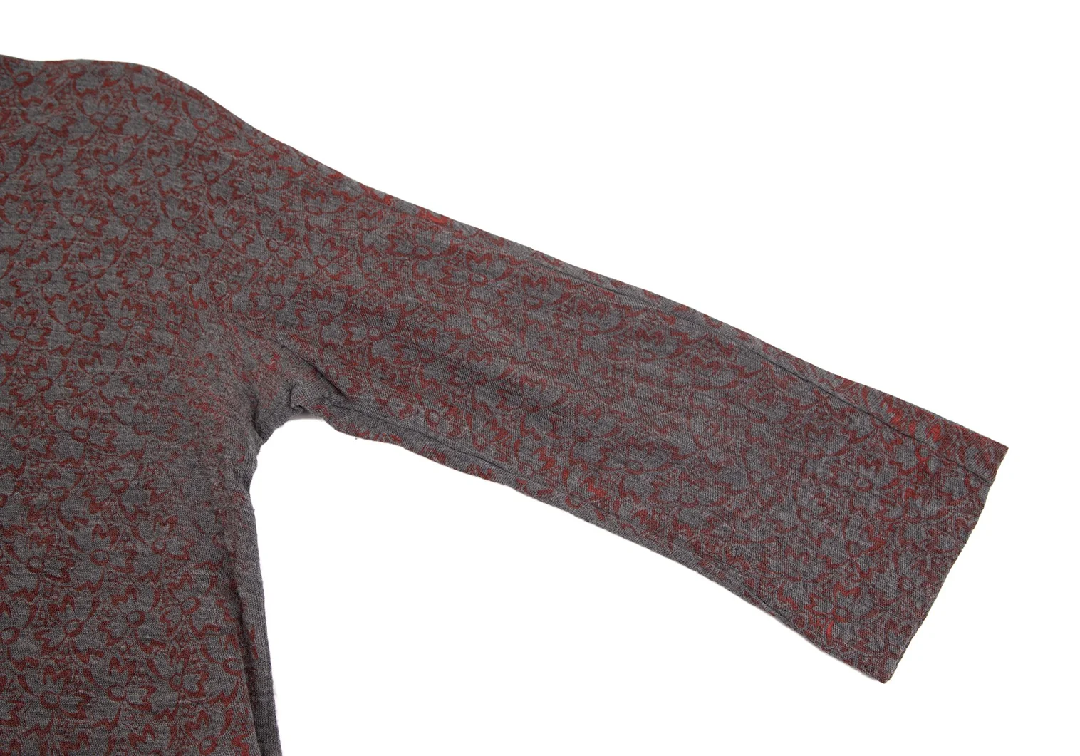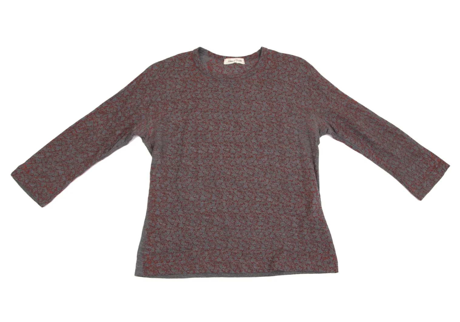 コムデギャルソンCOMME des GARCONS ウールフロント花柄7分袖ニットソー グレー赤M位