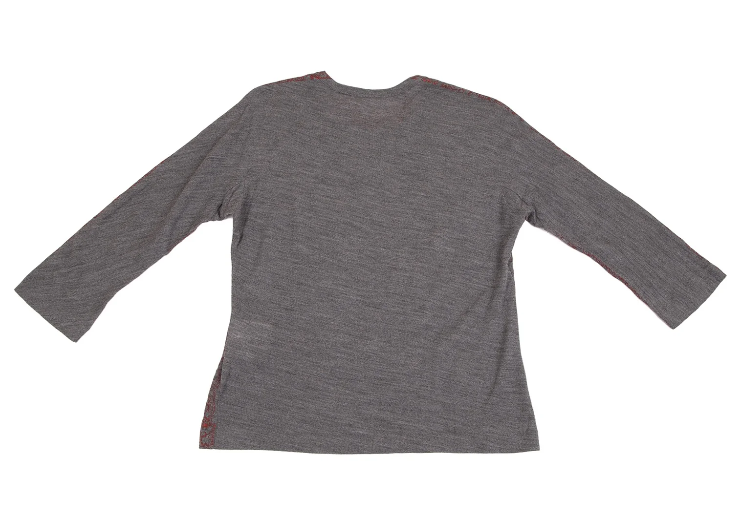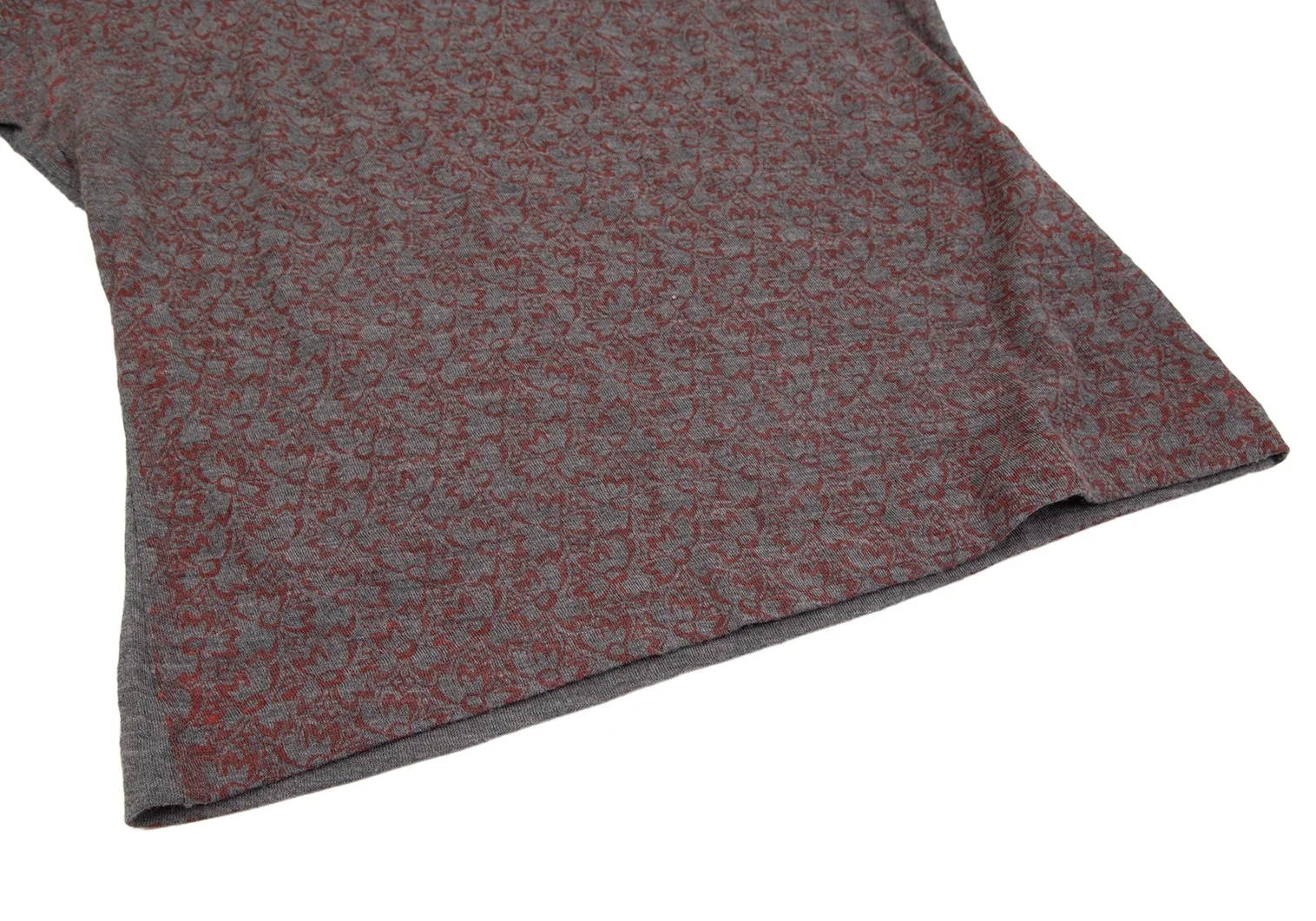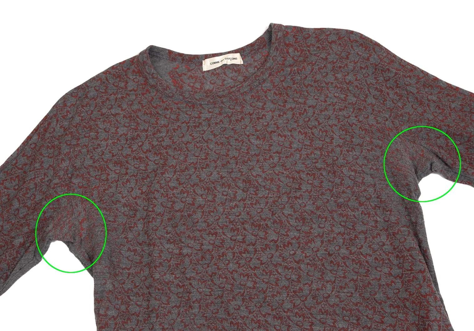 コムデギャルソンCOMME des GARCONS ウールフロント花柄7分袖ニットソー グレー赤M位