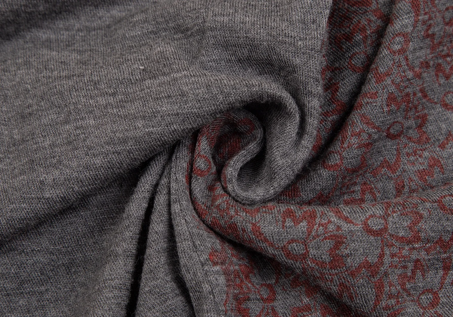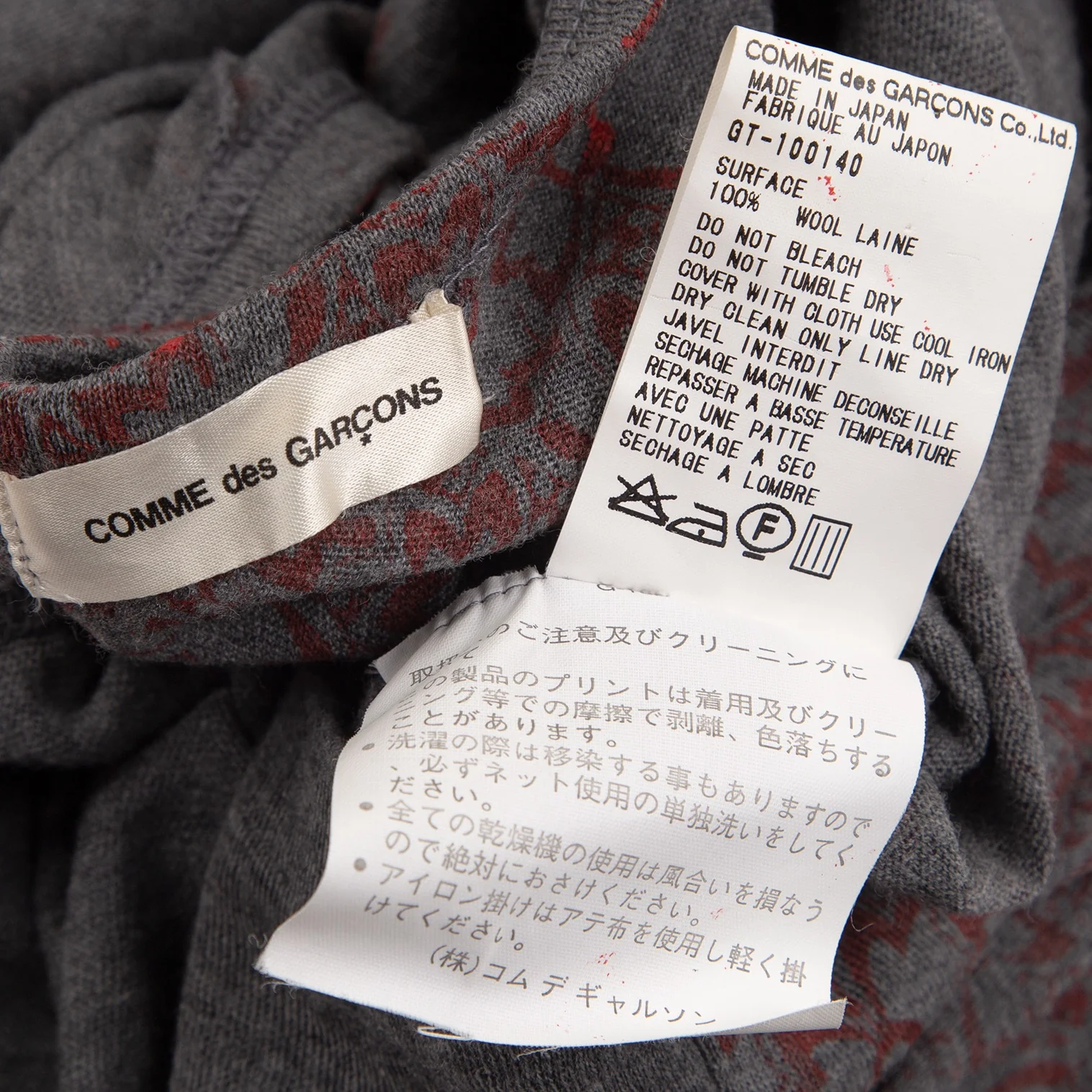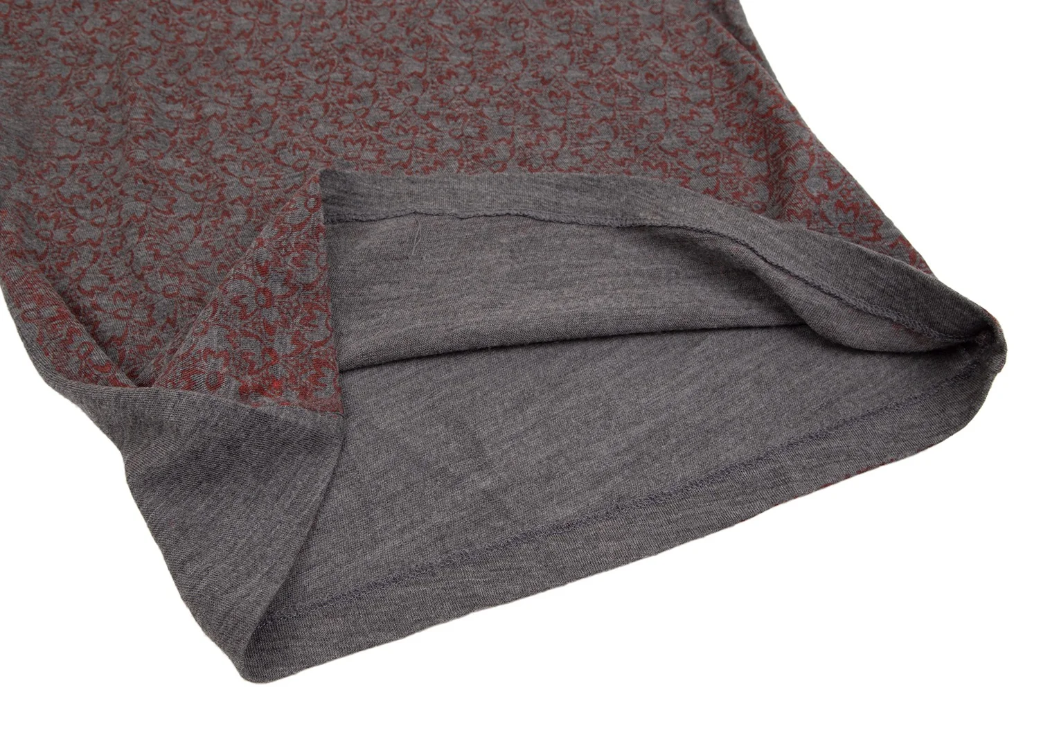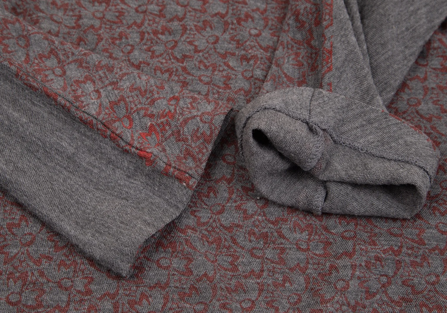コムデギャルソンCOMME des GARCONS ウールフロント花柄7分袖ニットソー グレー赤M位