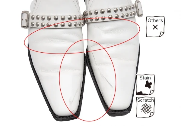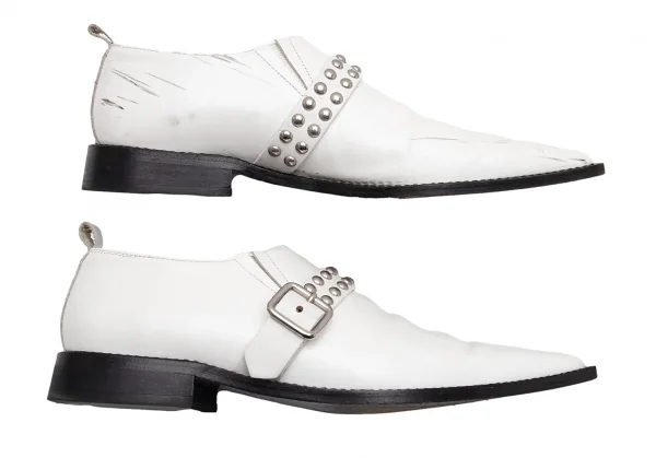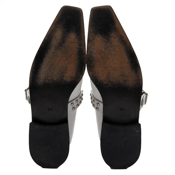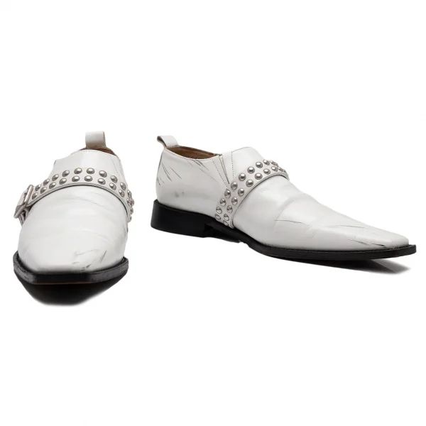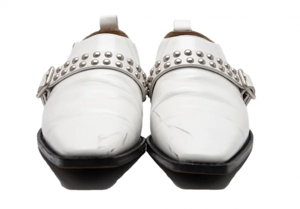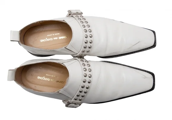コムデギャルソンCOMME des GARCONS スタッズベルトレザーポインテッドトゥシューズ 白24