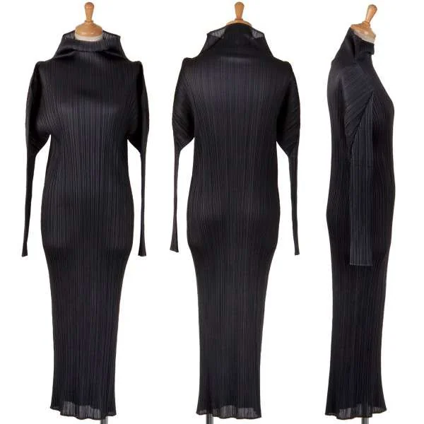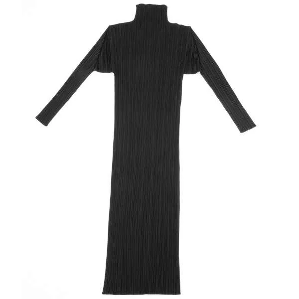 プリーツプリーズPLEATS PLEASE ハイネックプリーツロングワンピース 黒2