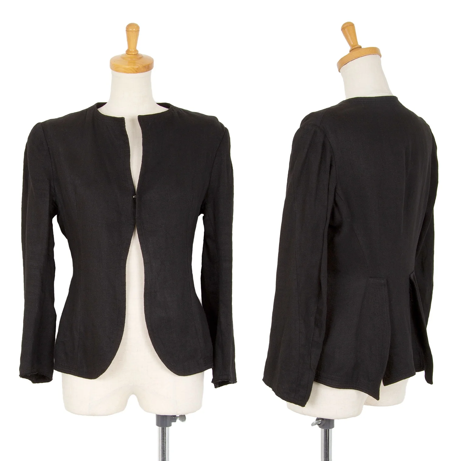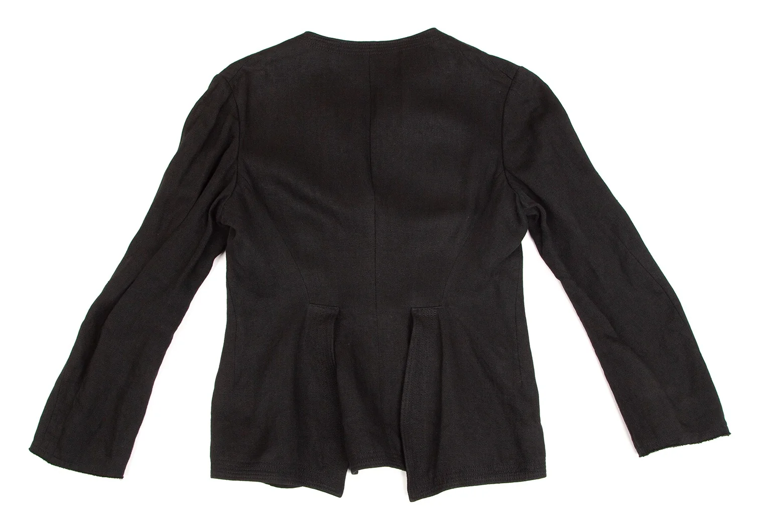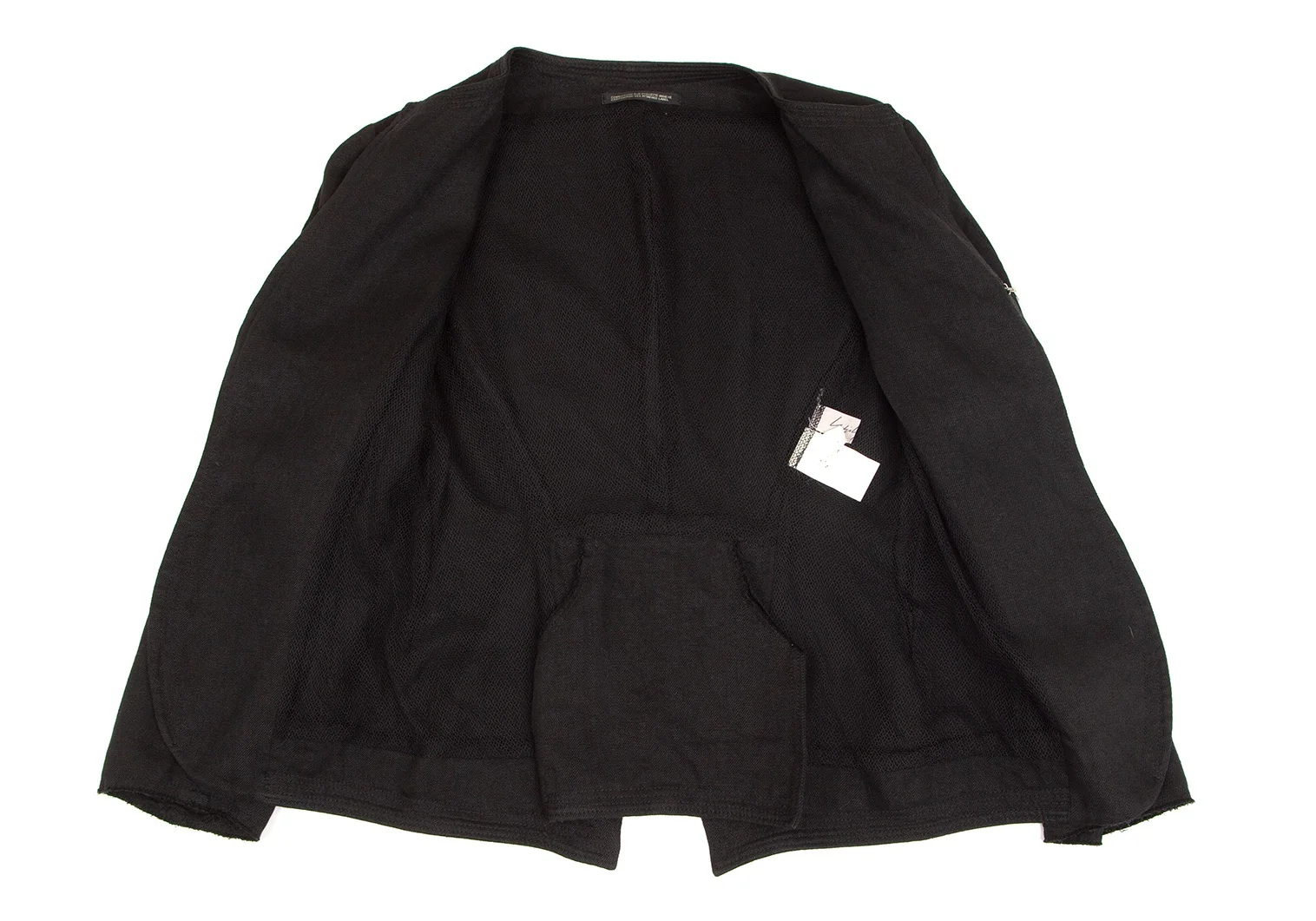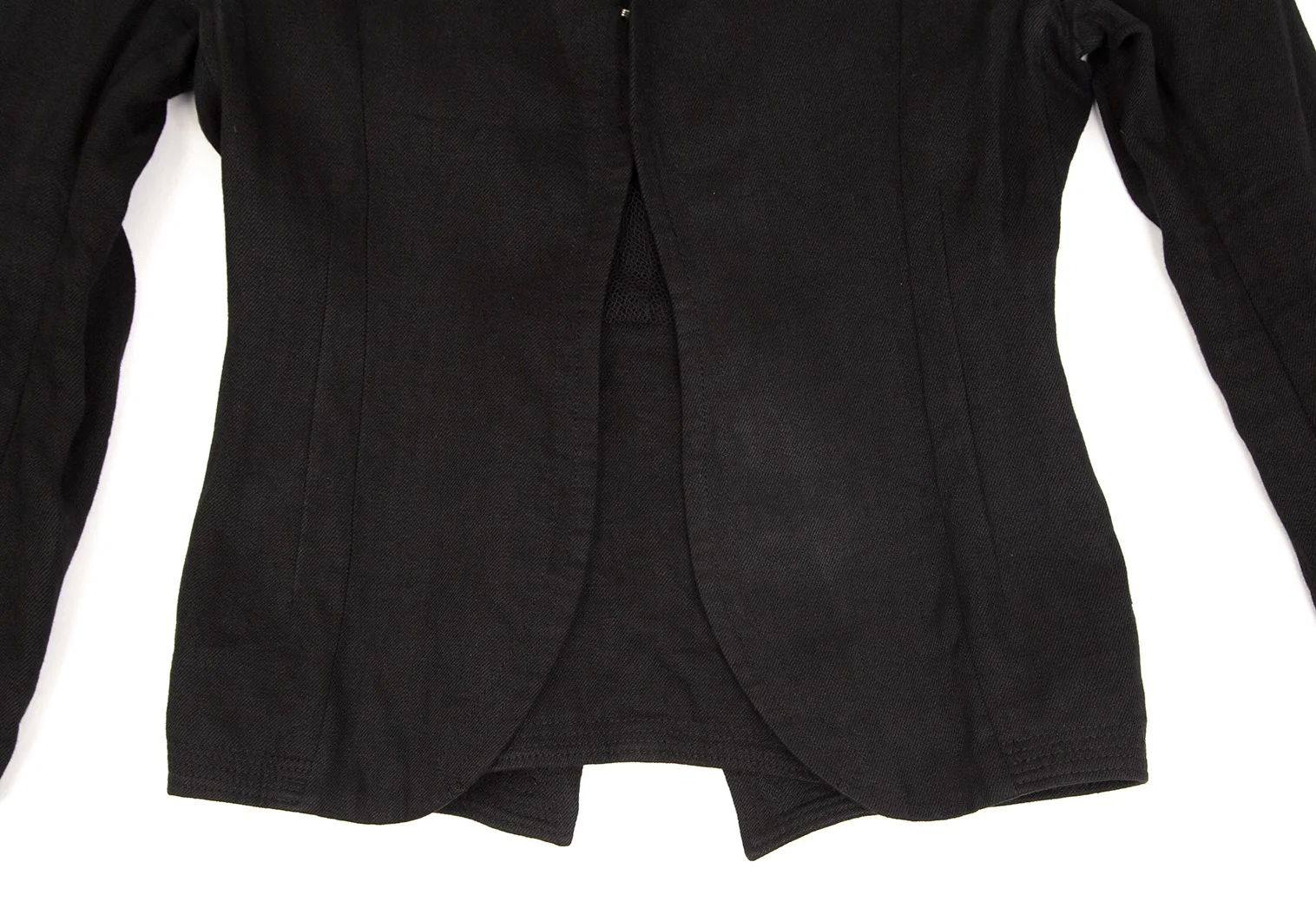 ヨウジヤマモト ファムYohji Yamamoto FEMME リネン裁ち切りデザインノーカラーホック留めジャケット 黒2