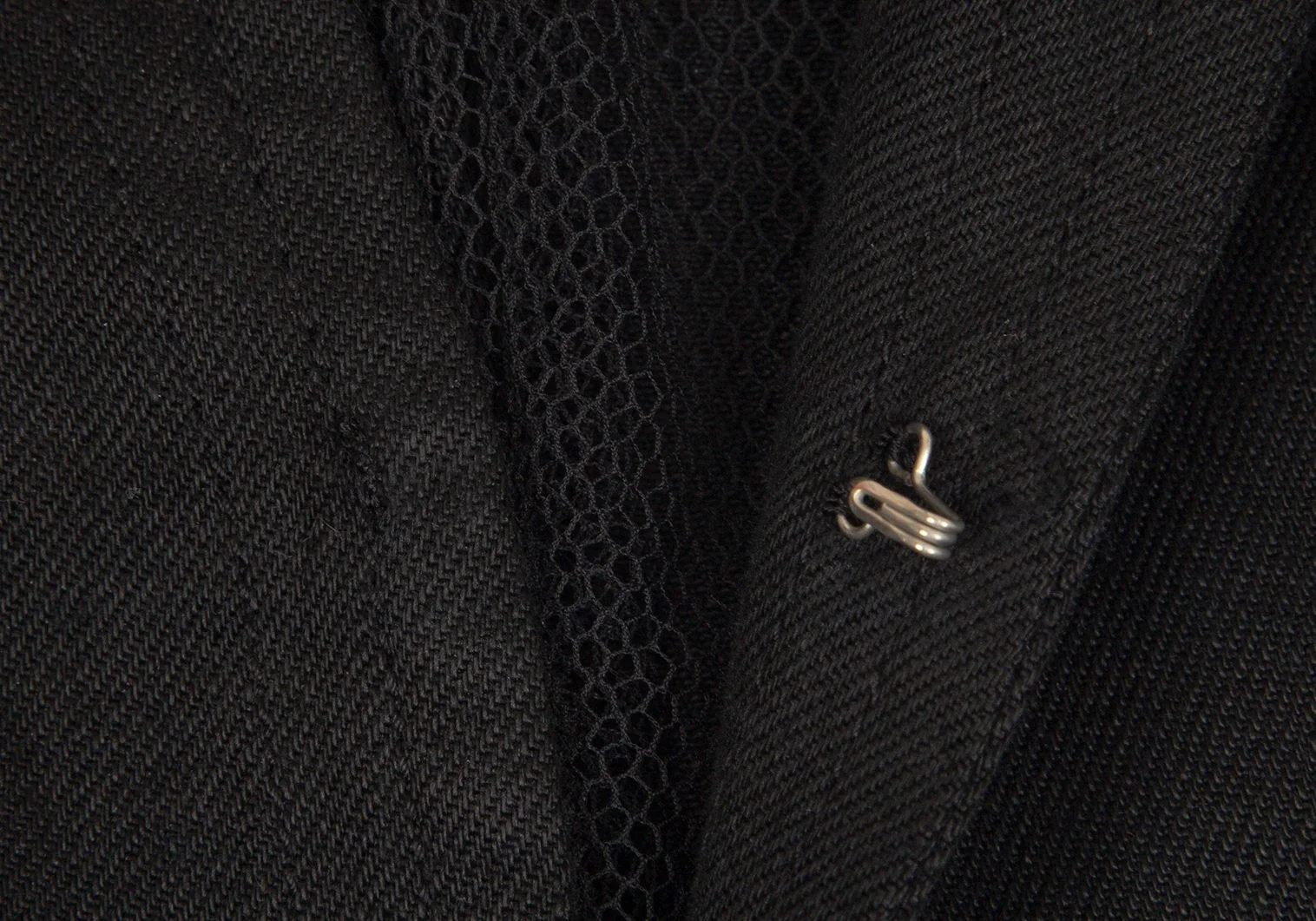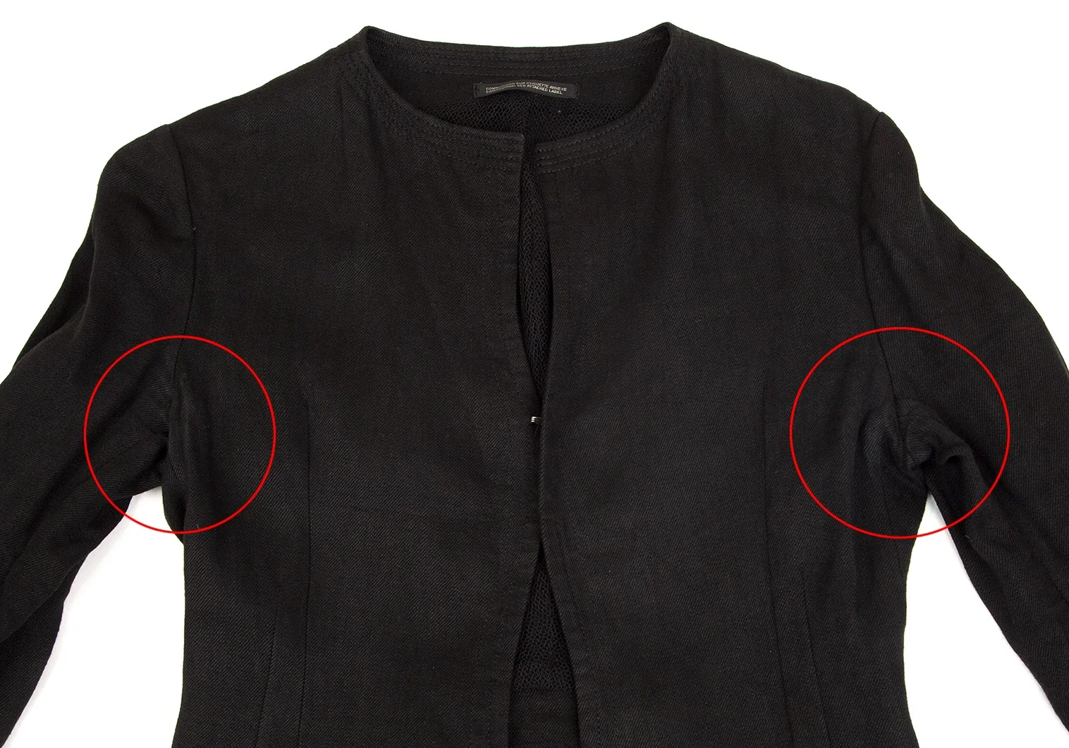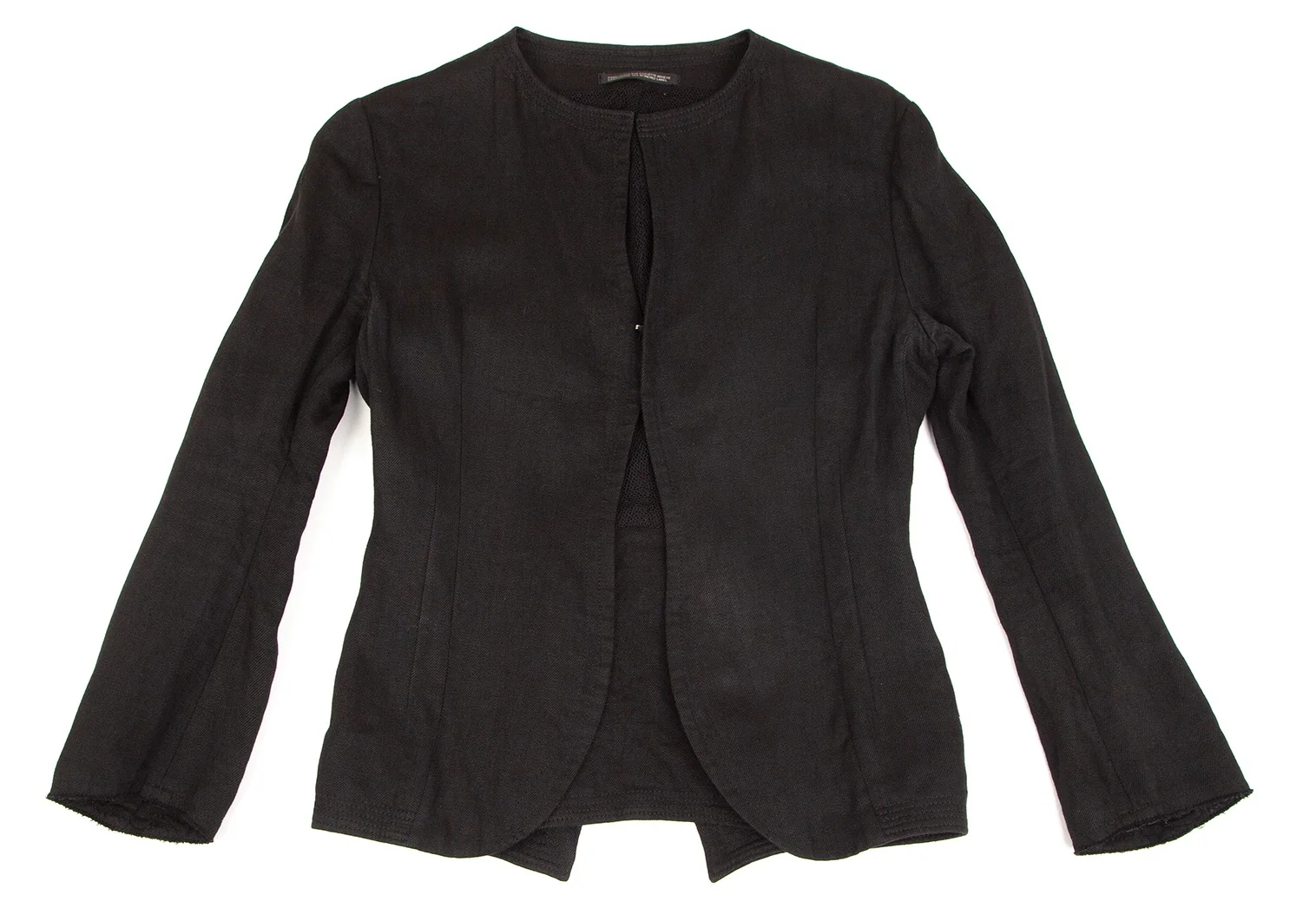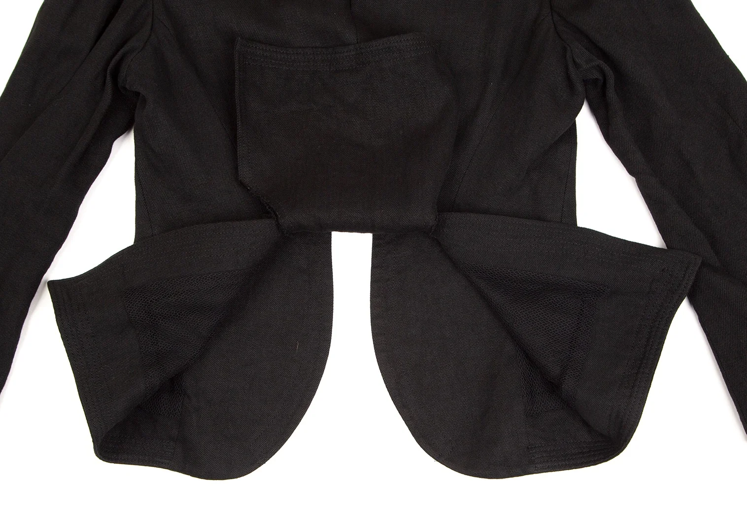 ヨウジヤマモト ファムYohji Yamamoto FEMME リネン裁ち切りデザインノーカラーホック留めジャケット 黒2