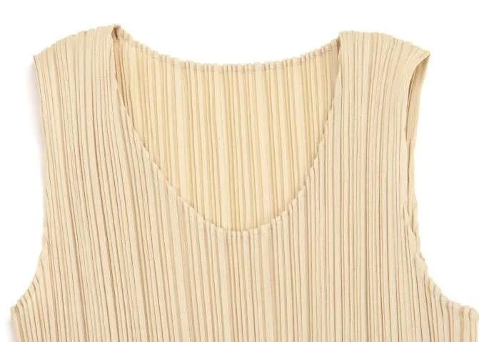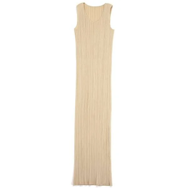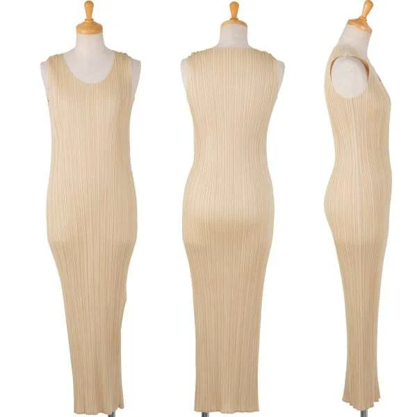 プリーツプリーズPLEATS PLEASE ロングノースリーブワンピース ベージュ1