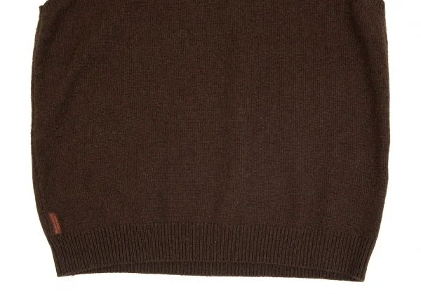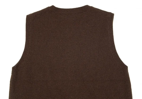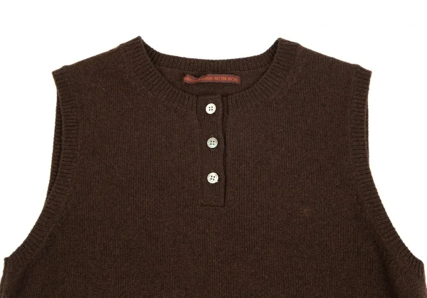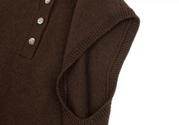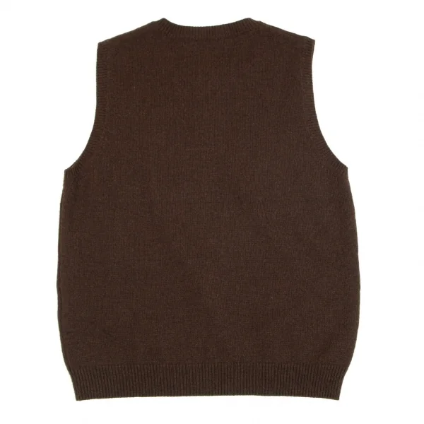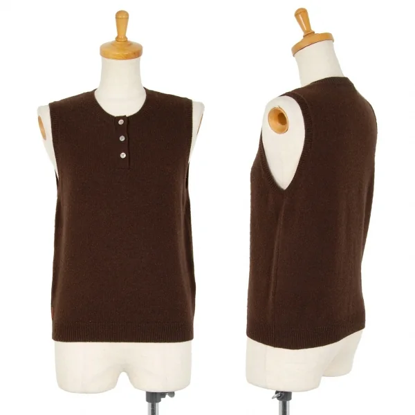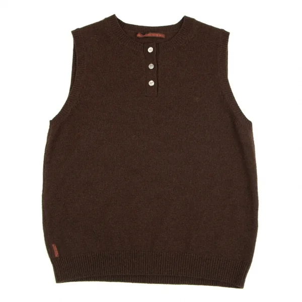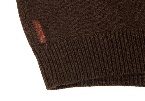 マドモアゼルノンノンMademoiselle NON NONカシミヤ混ワンポイント刺繍ヘンリーネックニットベスト 茶M