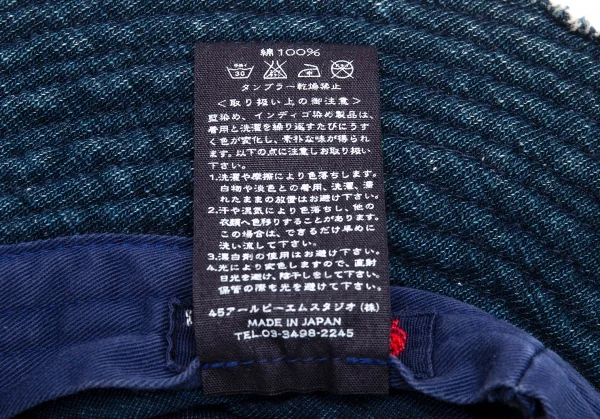 R by 45rpm コットン藍染め切りっぱなしハット インディゴ