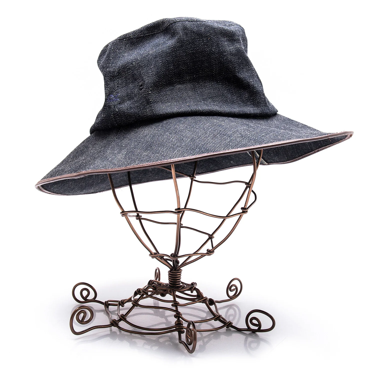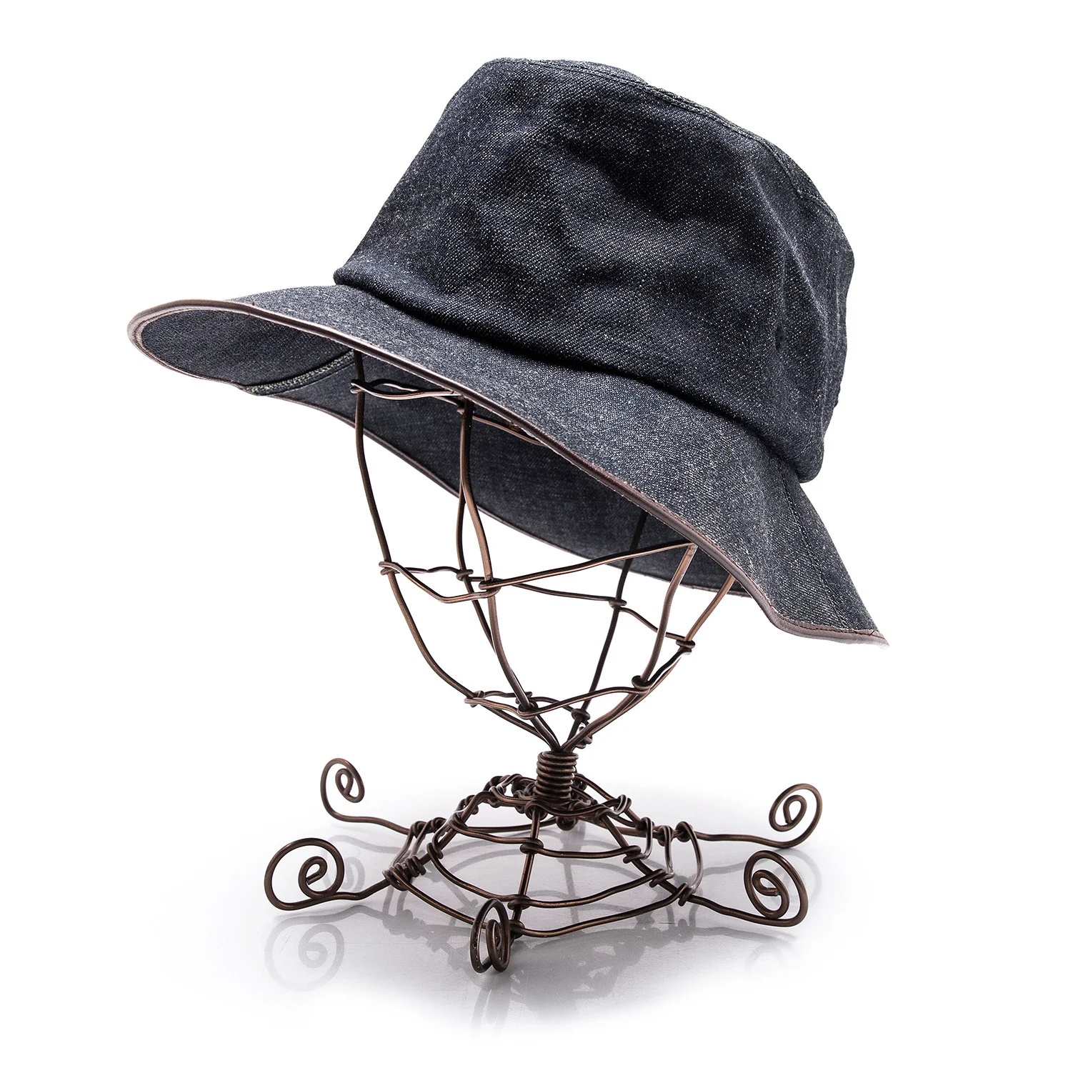 R by 45rpm コットン藍染めレザーパイピングハット 濃インディゴ