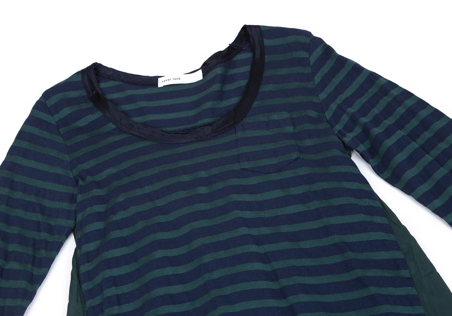 サカイラックsacai luck コットンボーダー切替カットソーワンピース グリーン 青緑2