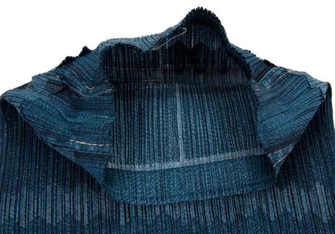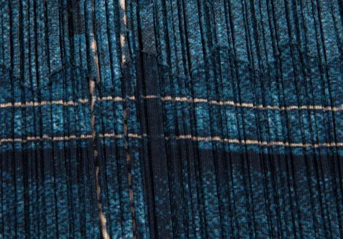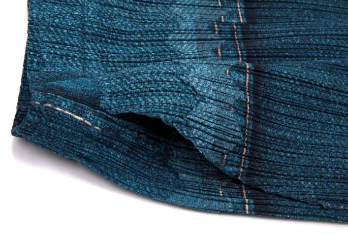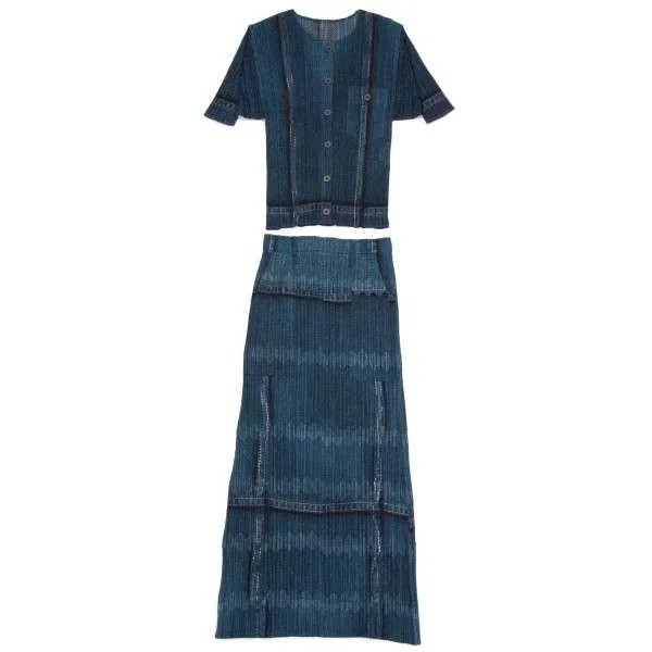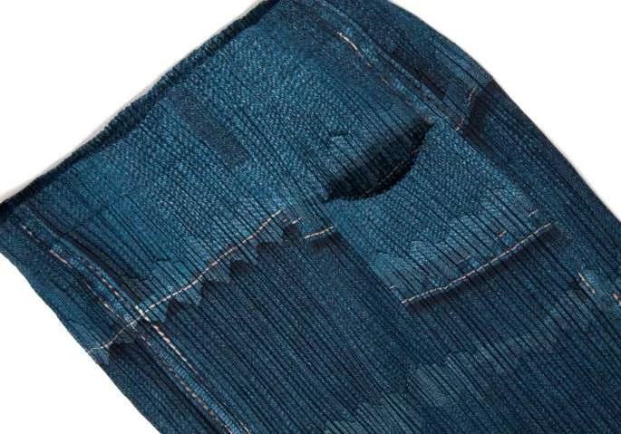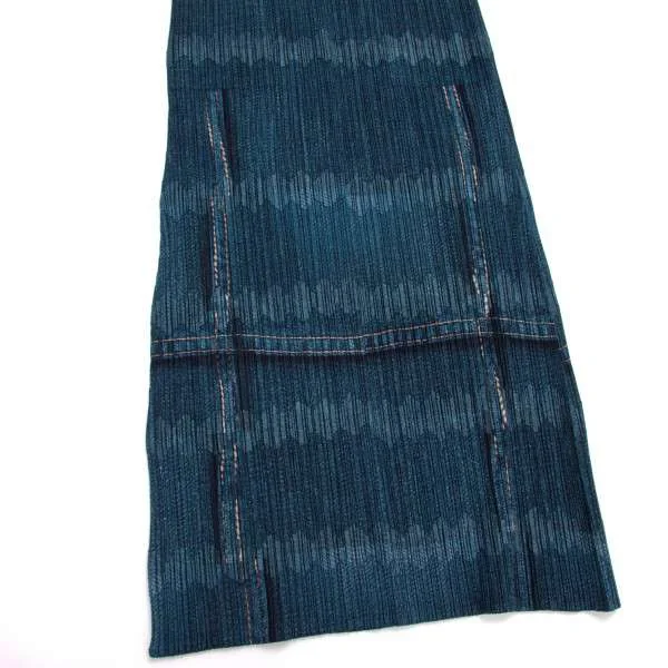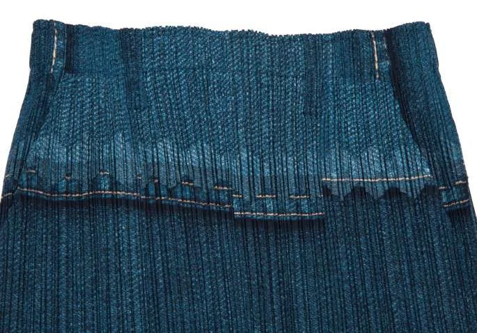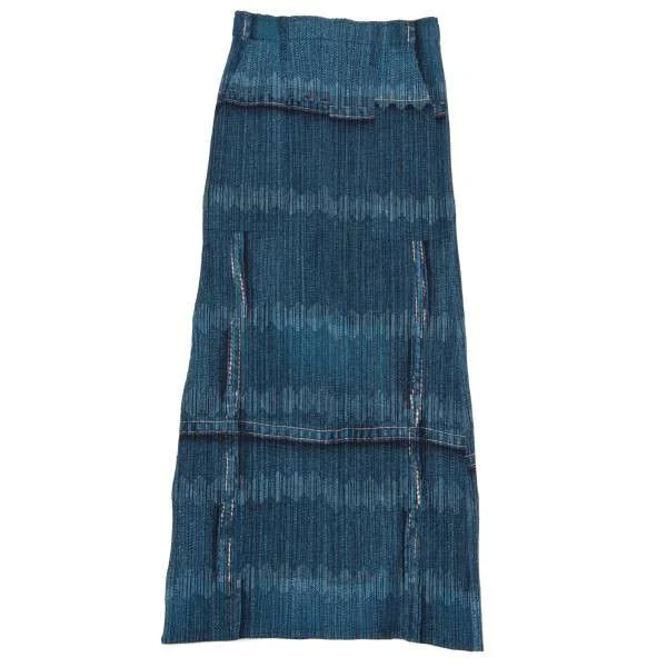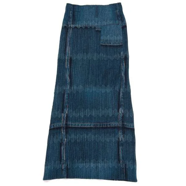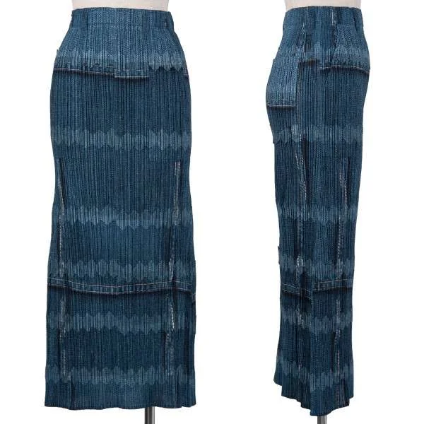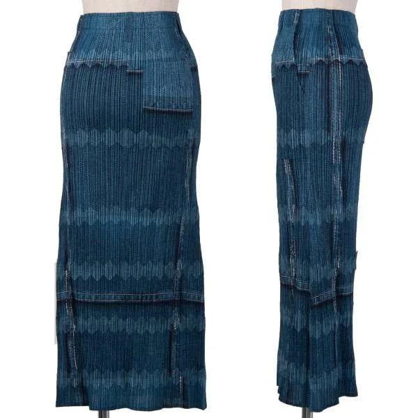 プリーツプリーズPLEATS PLEASE デニム転写プリントロングスカート 藍紺1