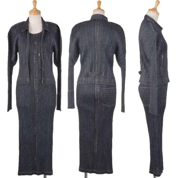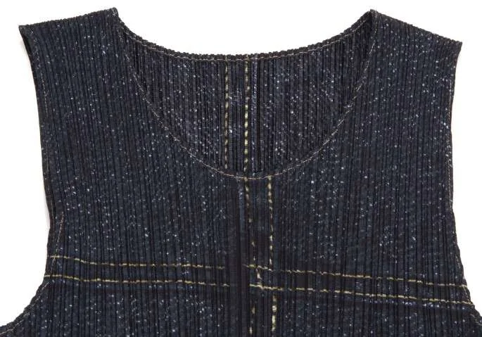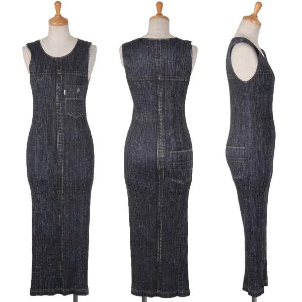 プリーツプリーズPLEATS PLEASE デニムプリントノースリーブワンピース 藍紫3