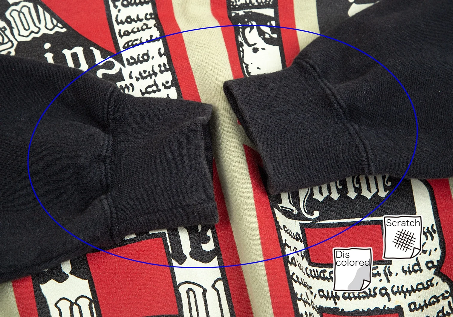 首周り・袖先・袖裏にスレと色褪せ、前身頃にシミ・汚れ、後ろ身頃にスレと汚れがあります(画像参照)。その他目立ったシミ、汚れ、ほつれ等ありません。クリーニング済み