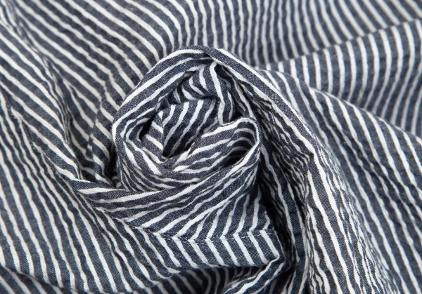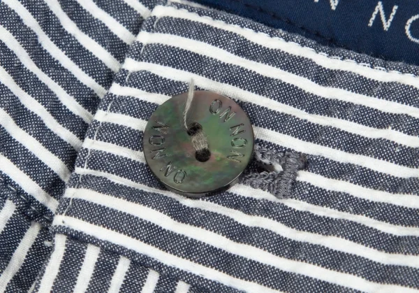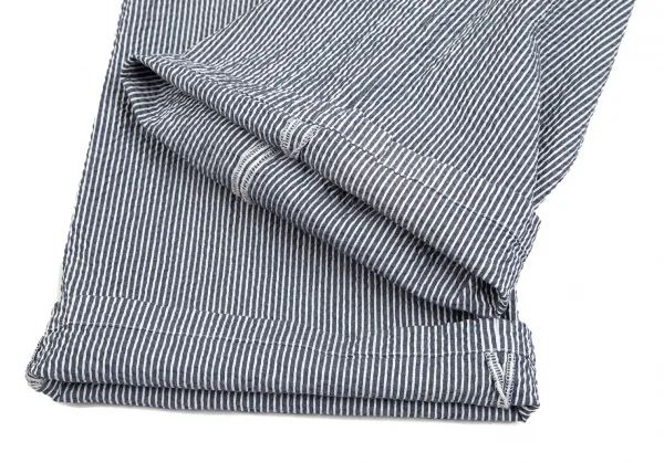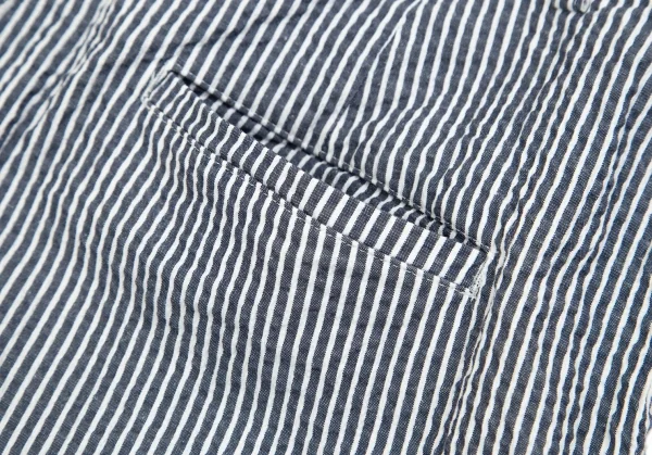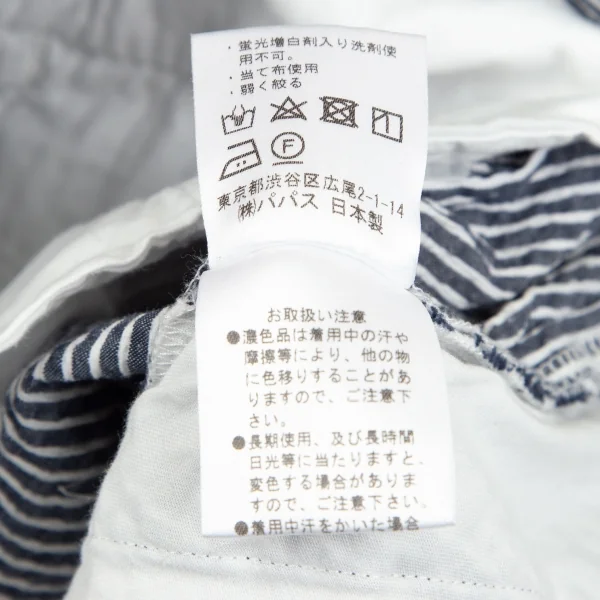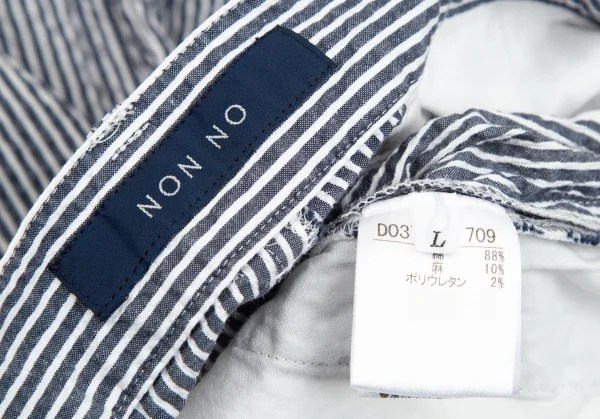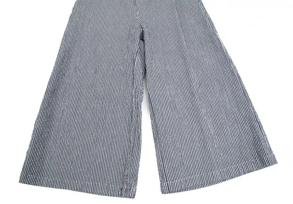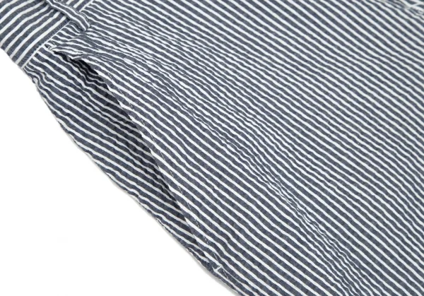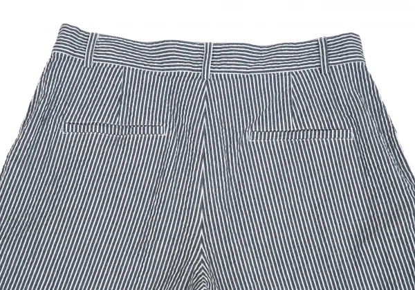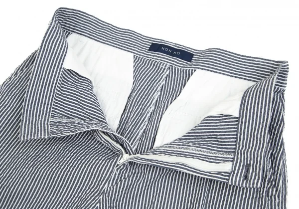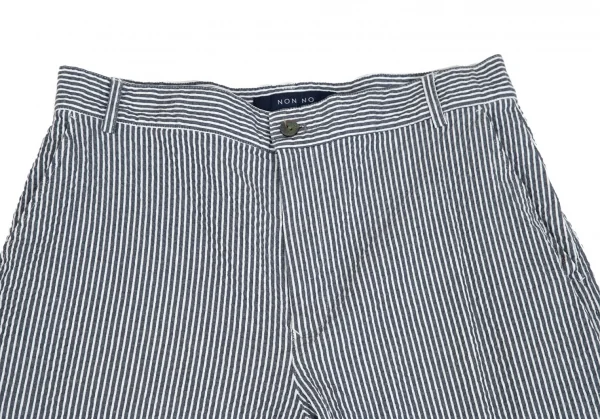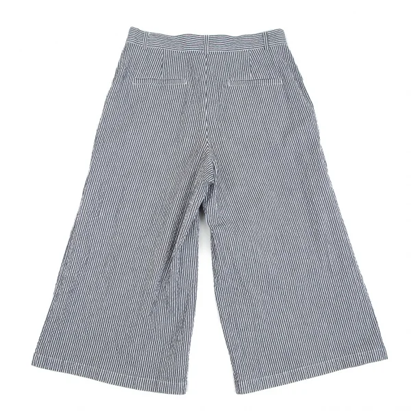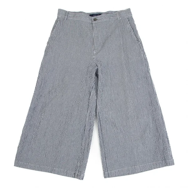 マドモアゼルノンノMademoiselle NON NO シアサッカーストレッチクロップドワイドパンツ 白紺L