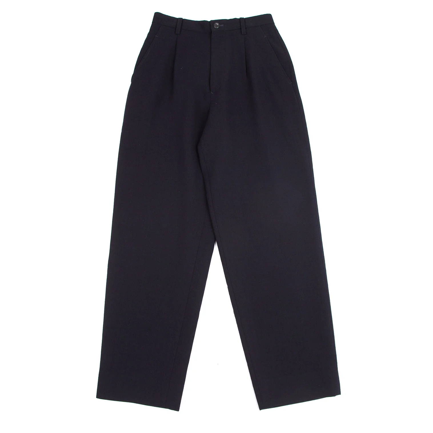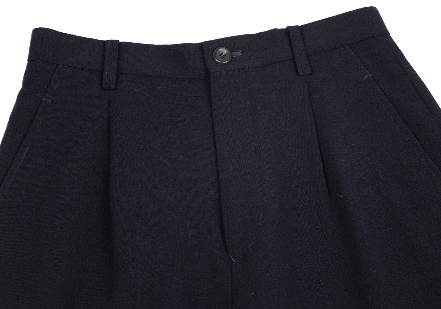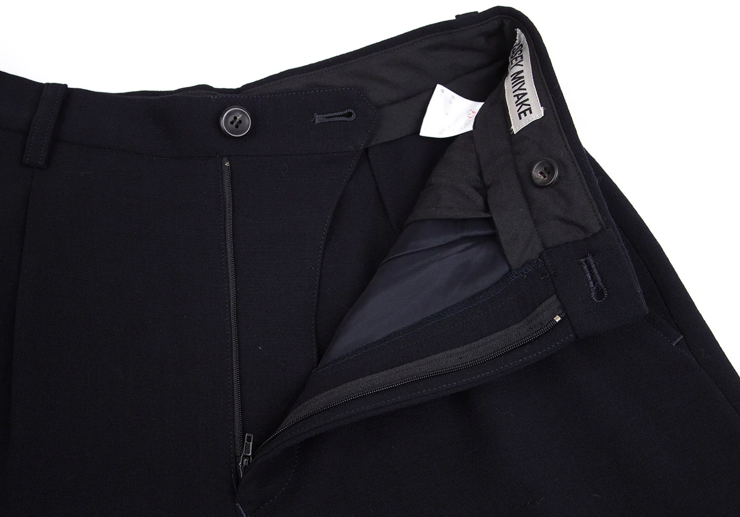イッセイミヤケISSEY MIYAKE ウールタックワイドパンツ 紺L