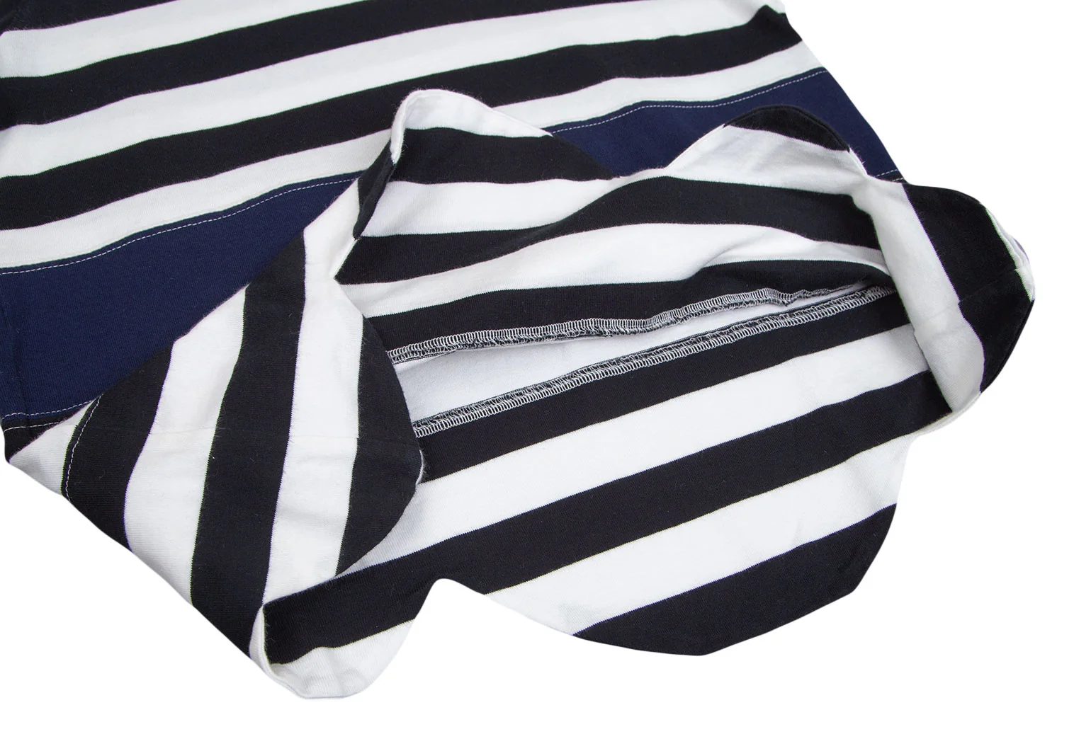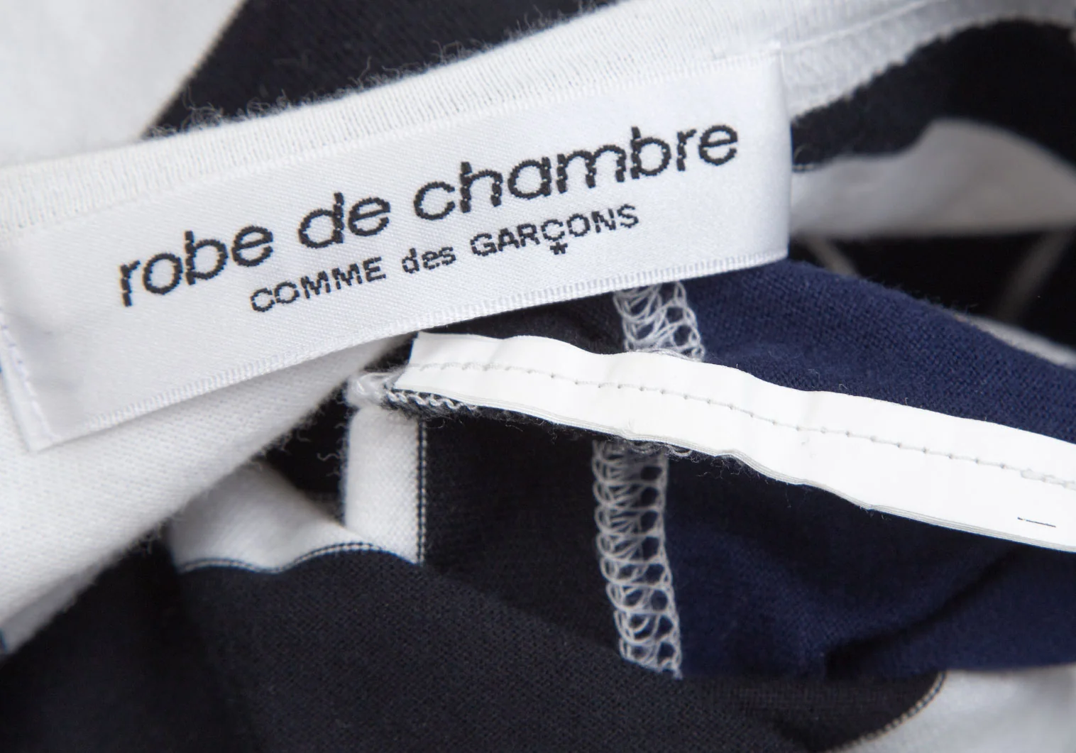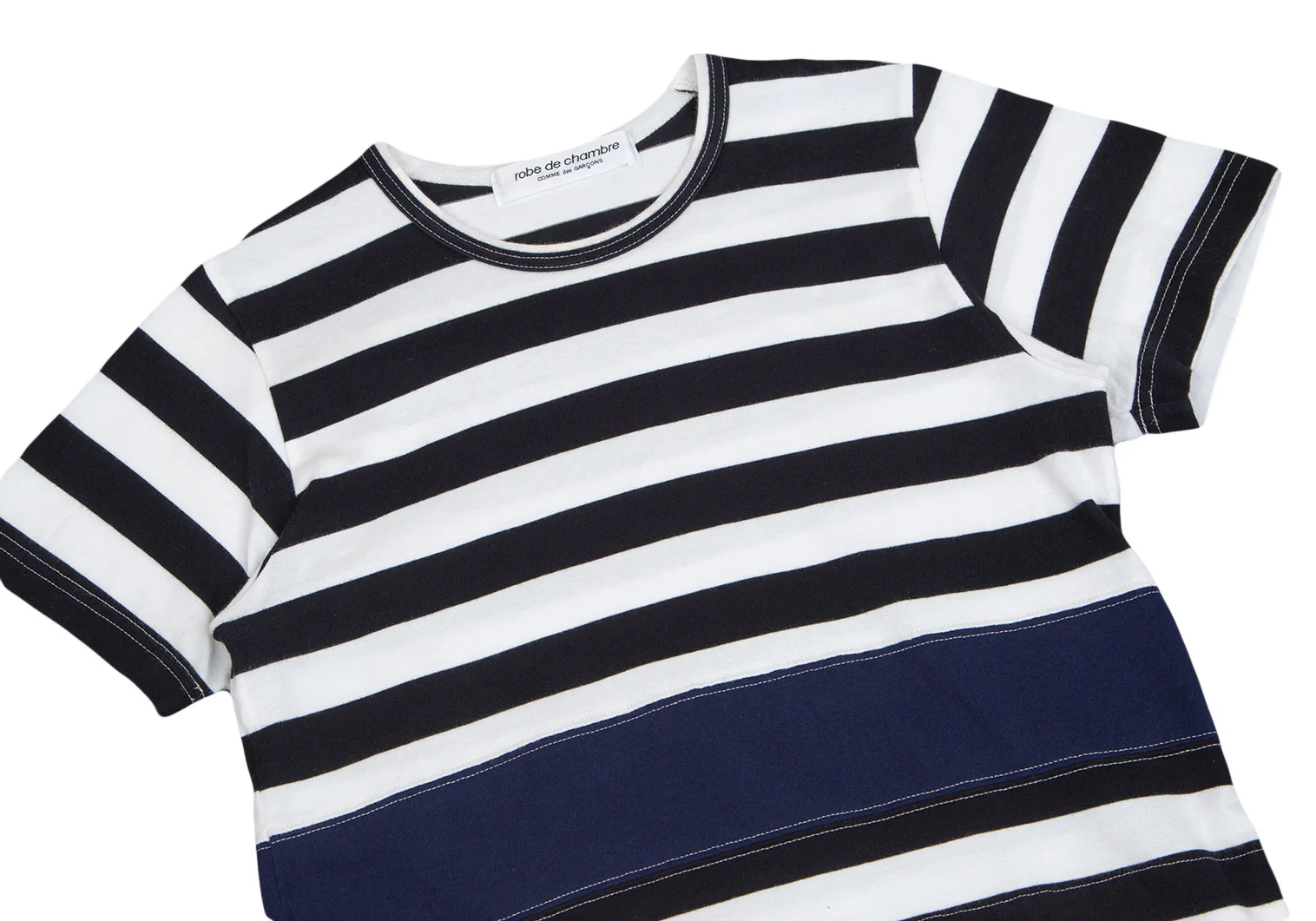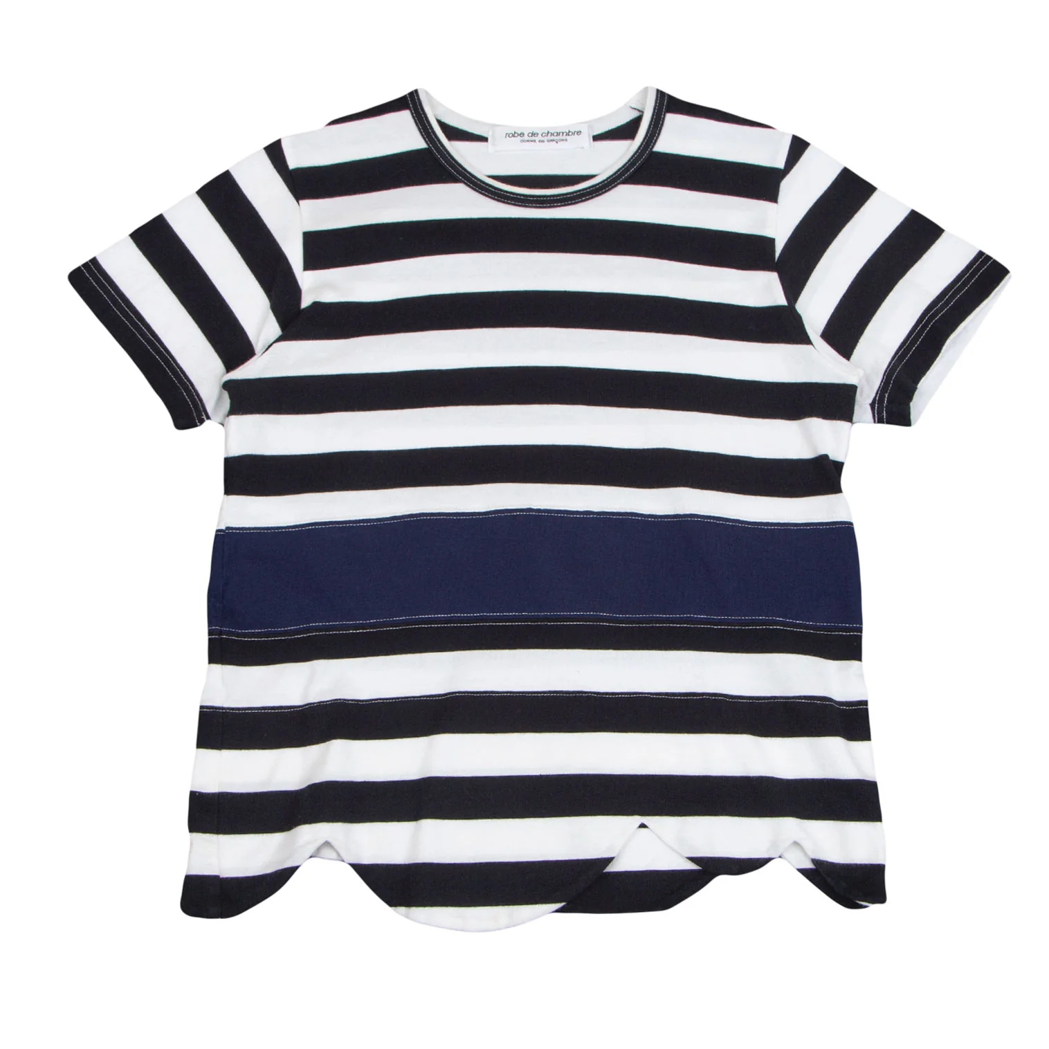 ローブドシャンブル コムデギャルソンrobe de chambre COMME des GARCONS 裾ラウンドカットボーダー切替Tシャツ 白黒紺M位