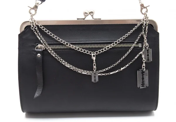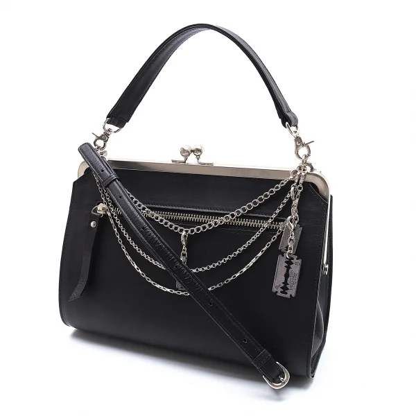 ジャンポールゴルチエJean Paul GAULTIER レザーチェーンカミソリチャームハンドバッグ 黒