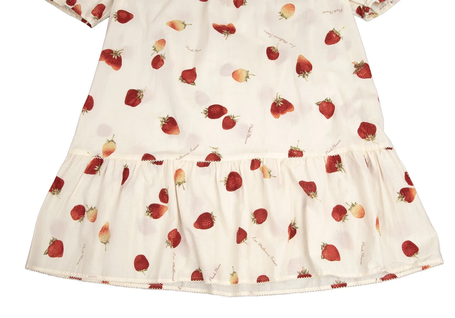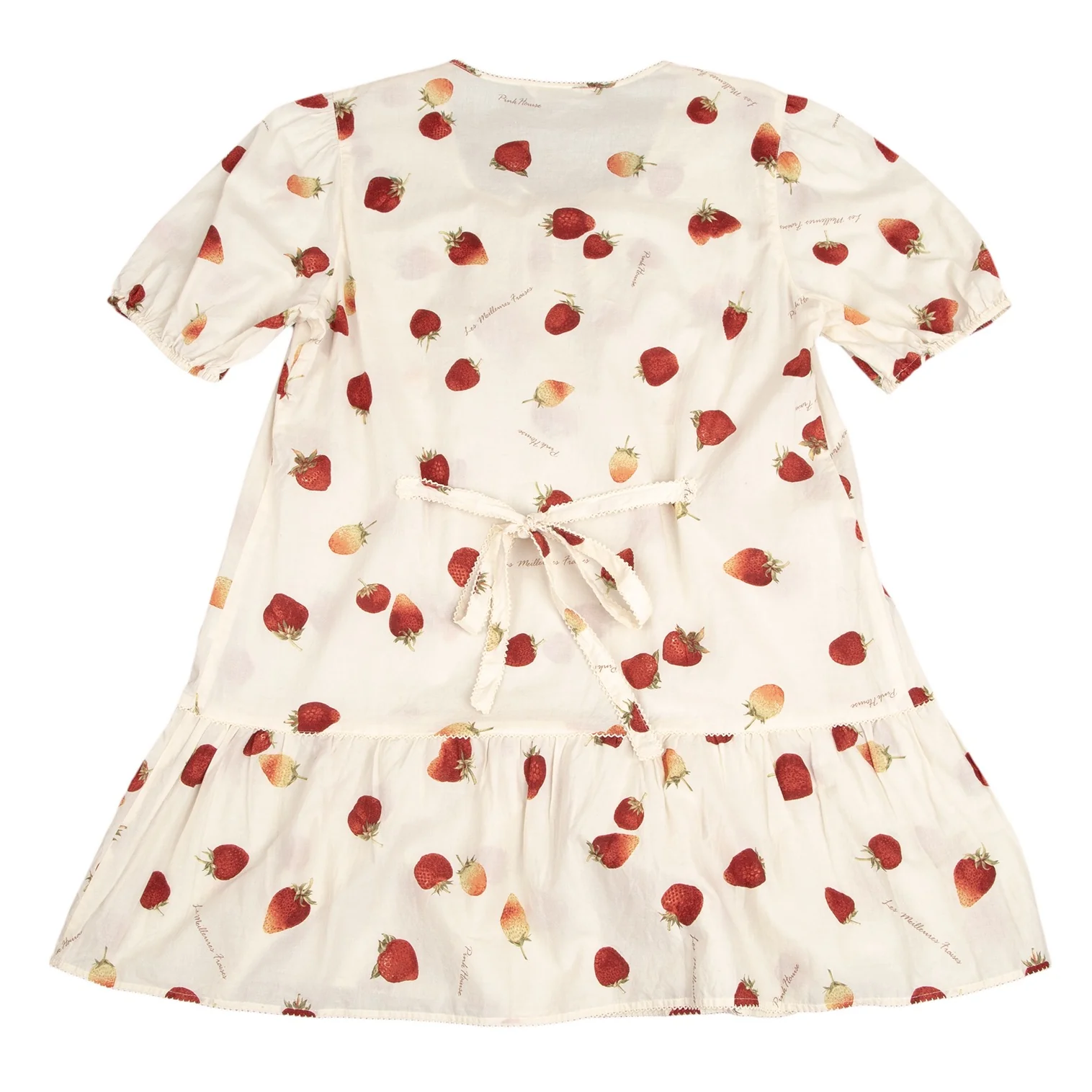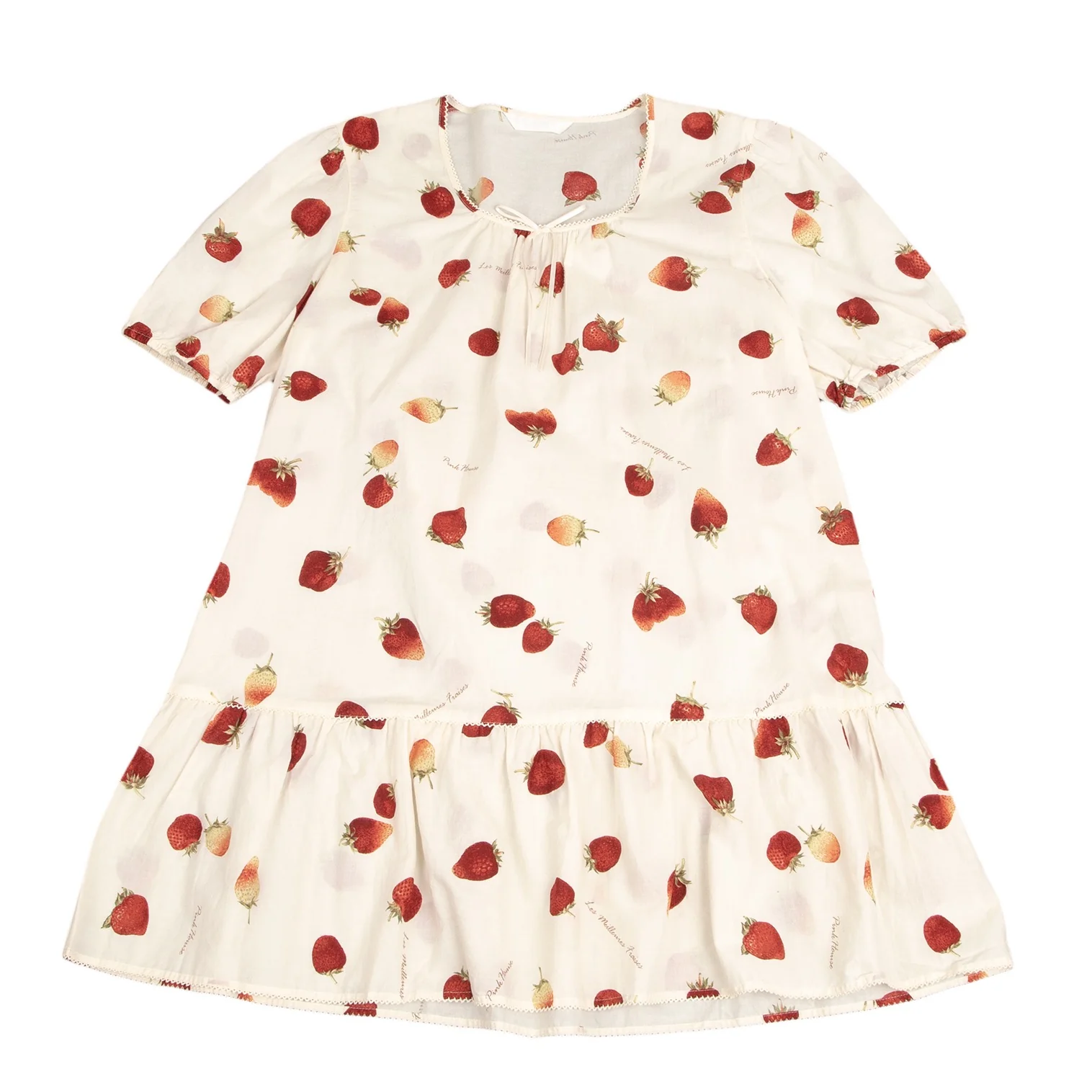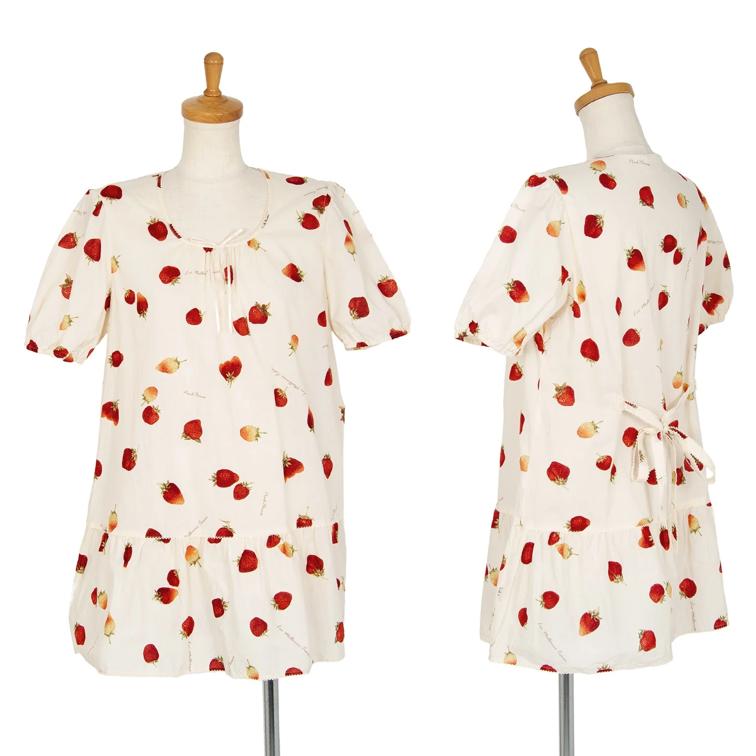 ピンクハウスPINK HOUSE ストロベリー総柄リボンデザイン半袖チュニックワンピース アイボリーM位