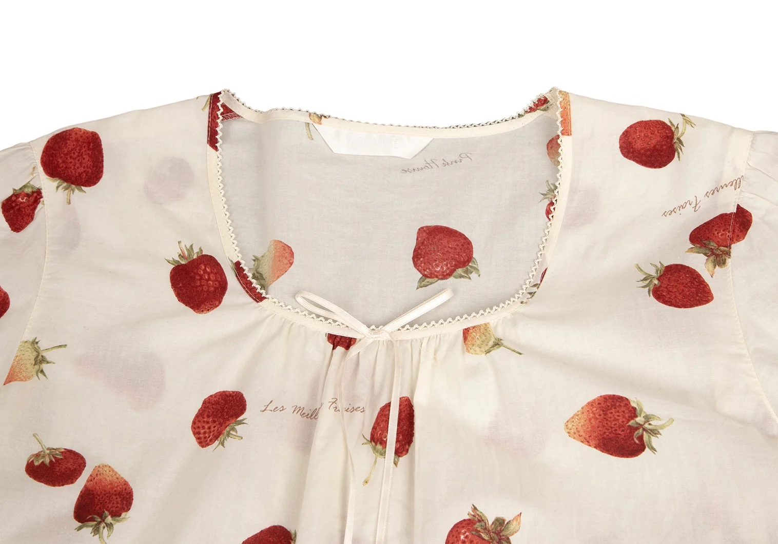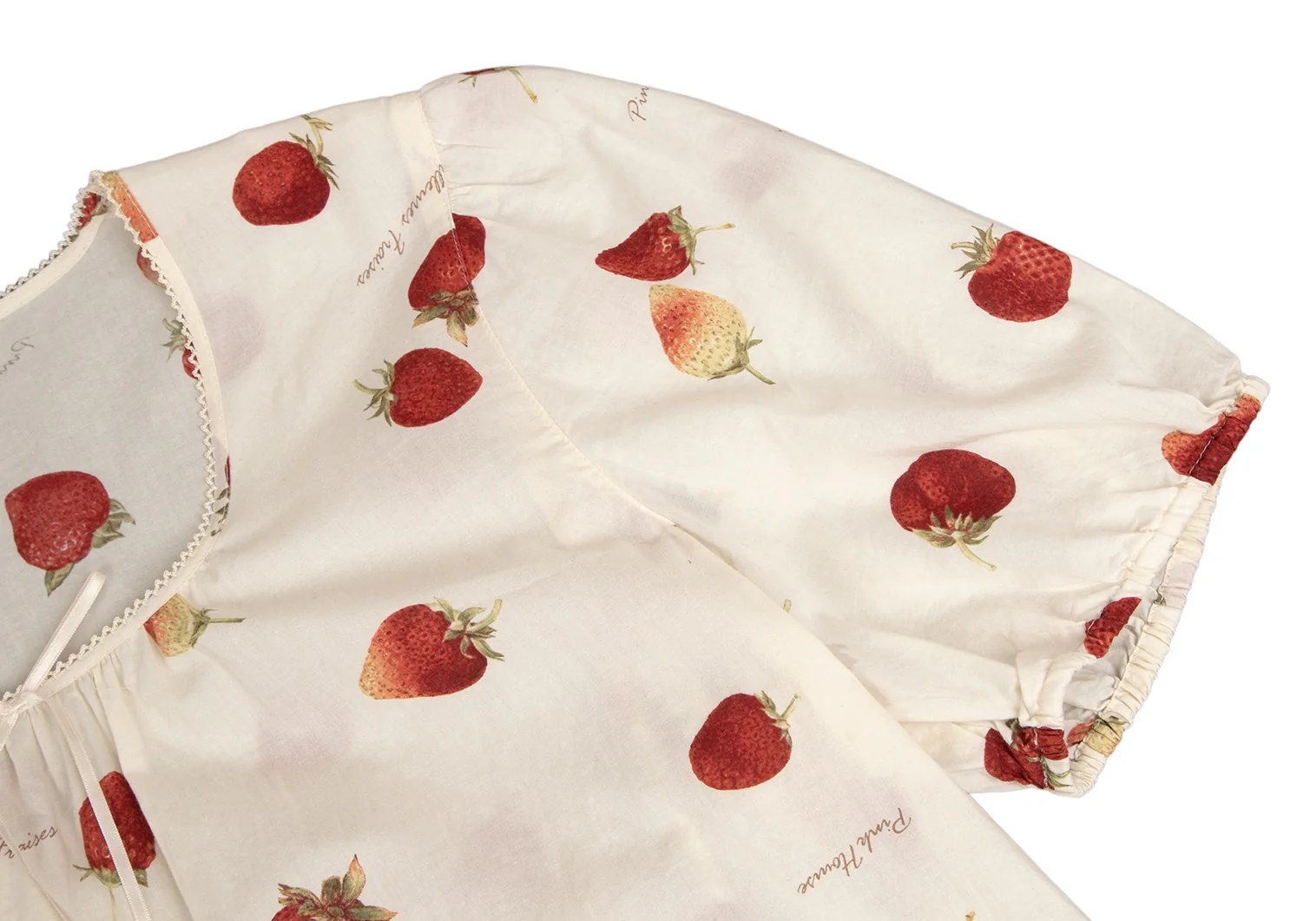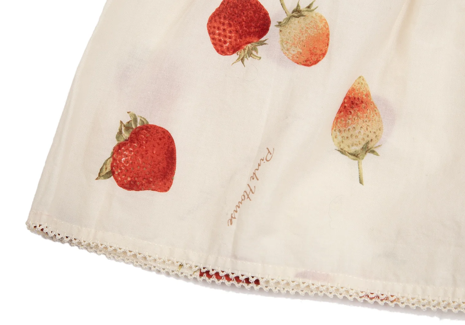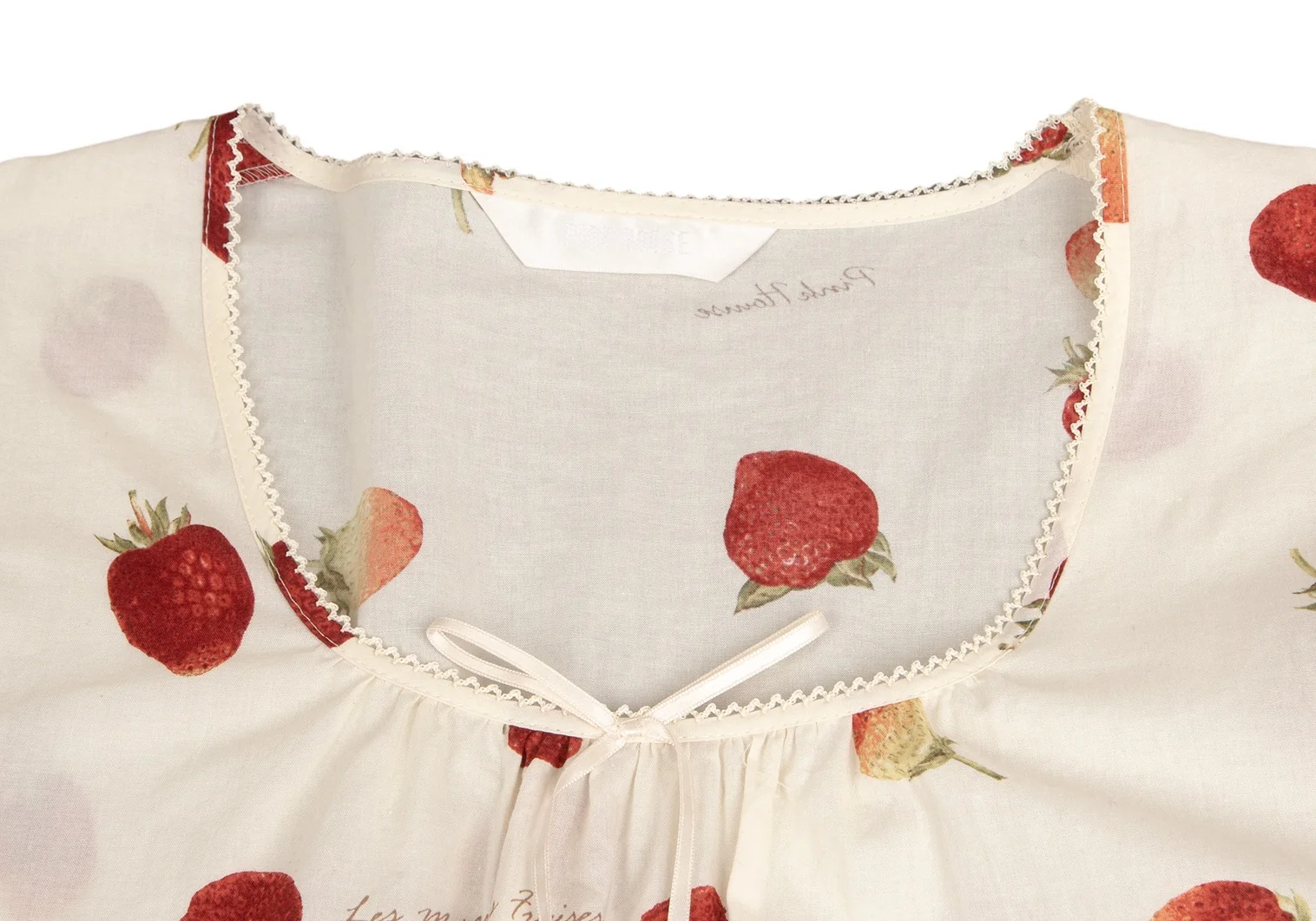 ピンクハウスPINK HOUSE ストロベリー総柄リボンデザイン半袖チュニックワンピース アイボリーM位