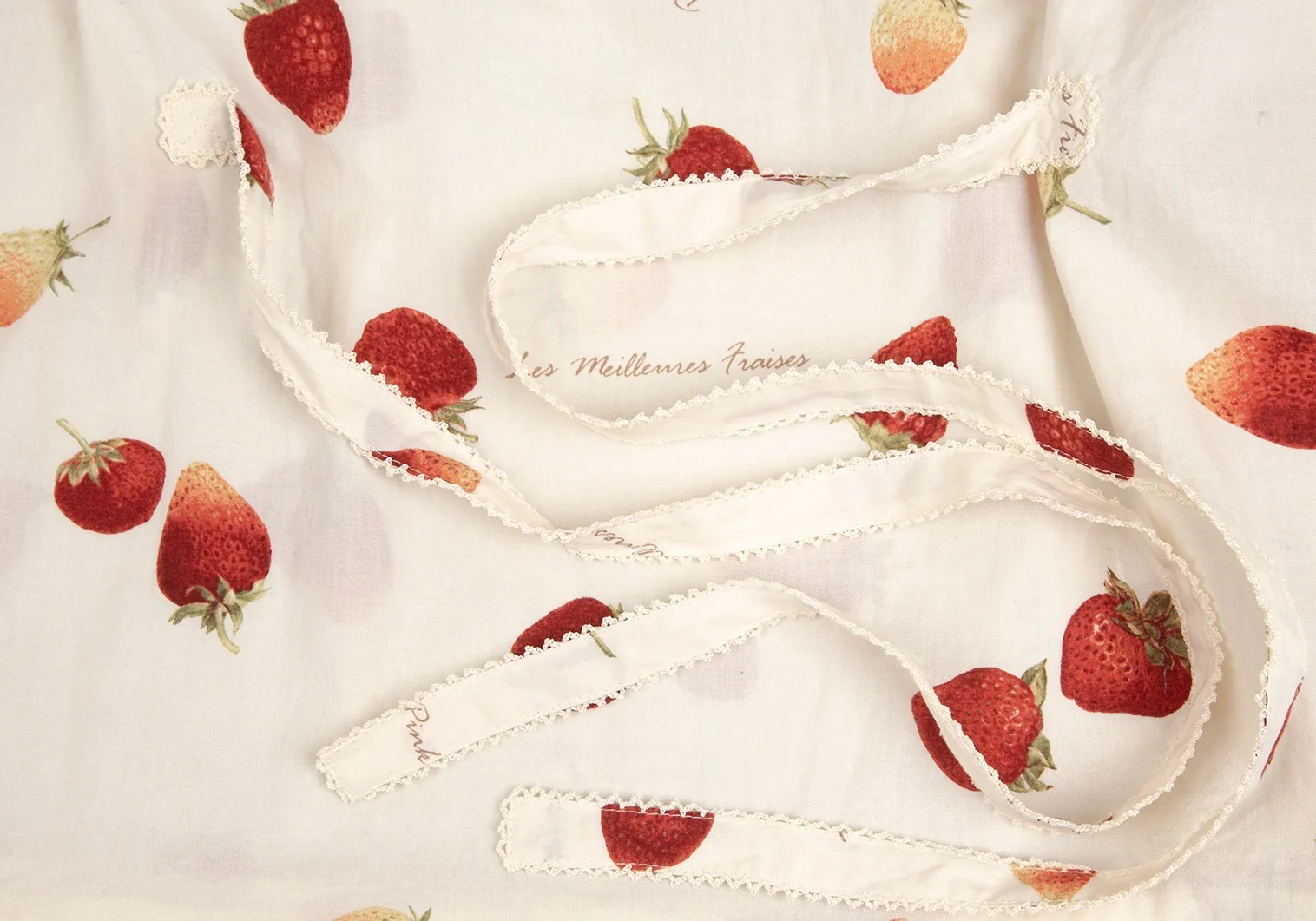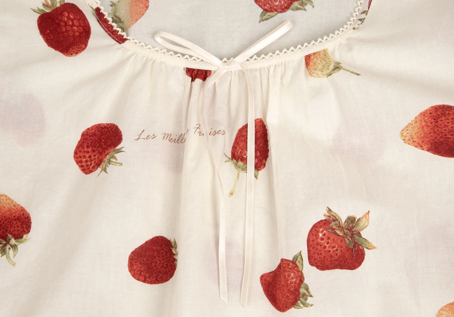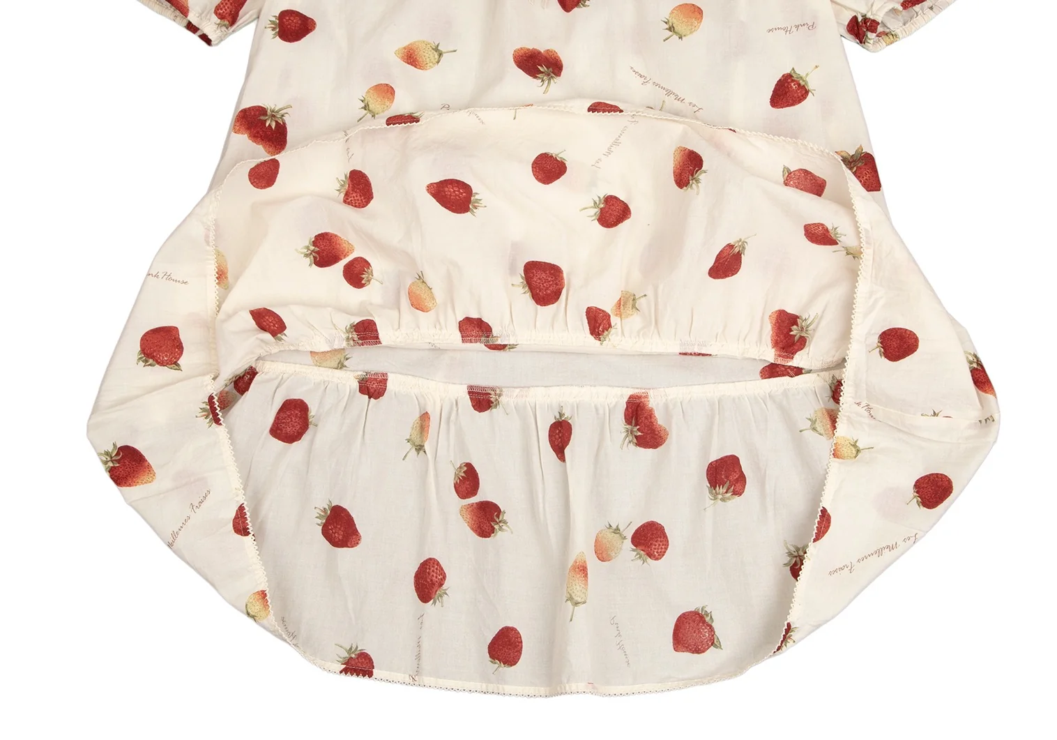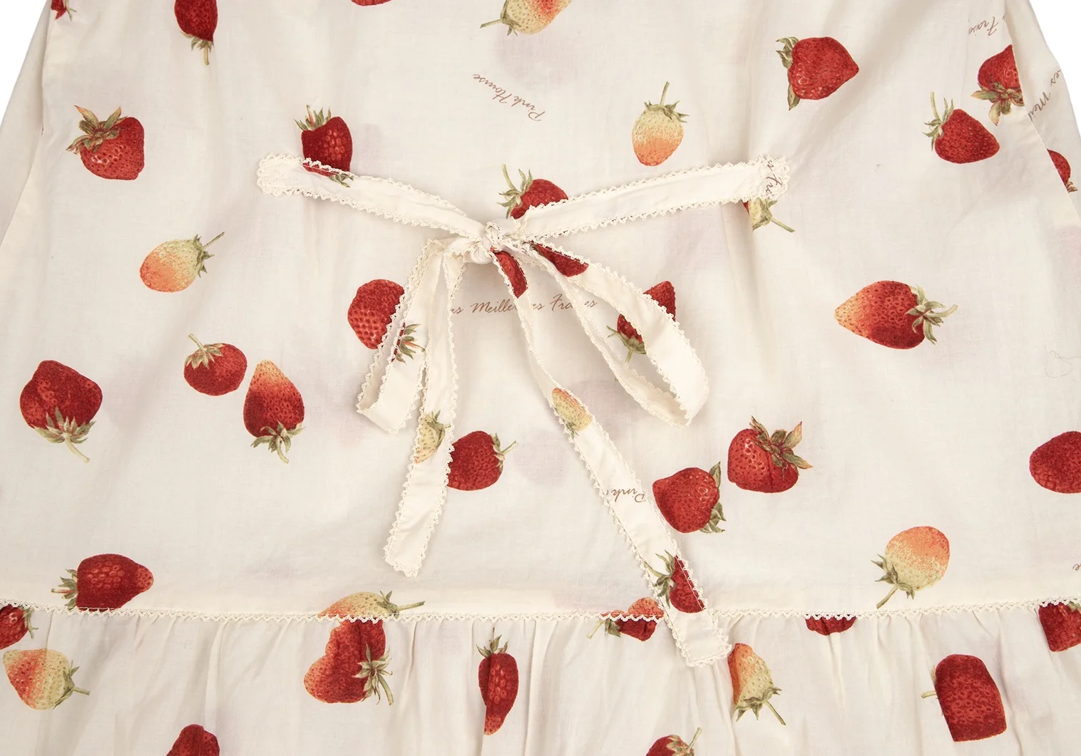 ピンクハウスPINK HOUSE ストロベリー総柄リボンデザイン半袖チュニックワンピース アイボリーM位