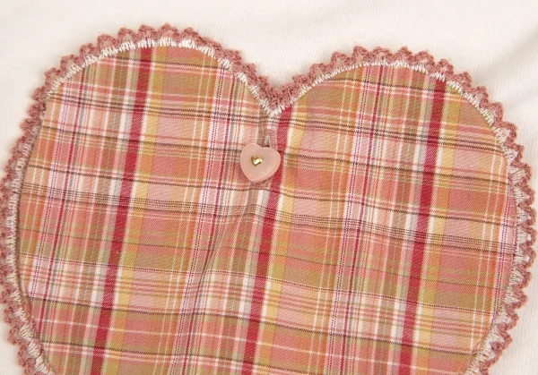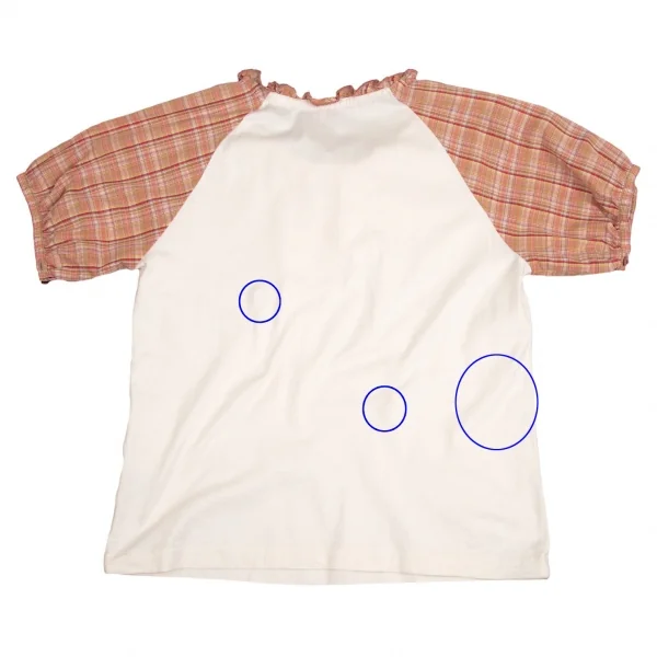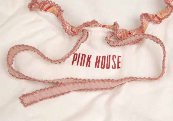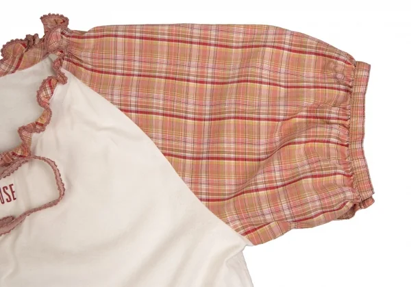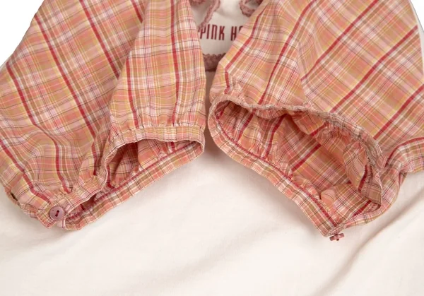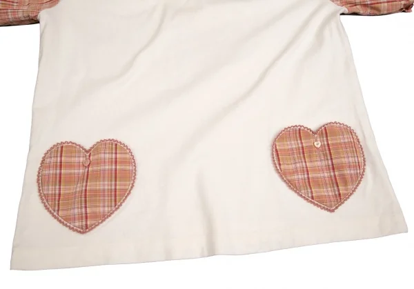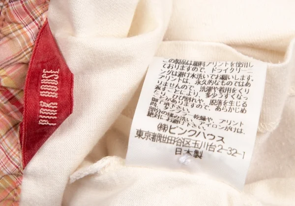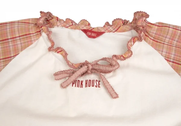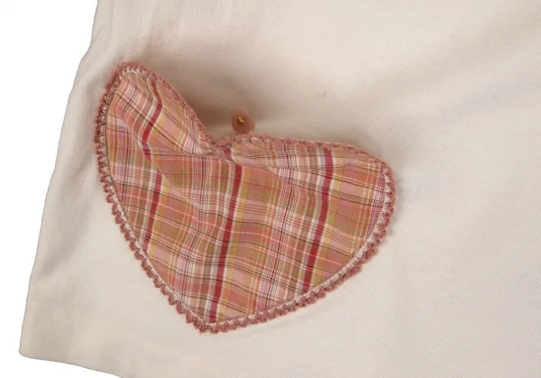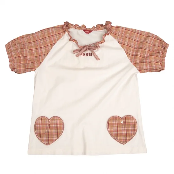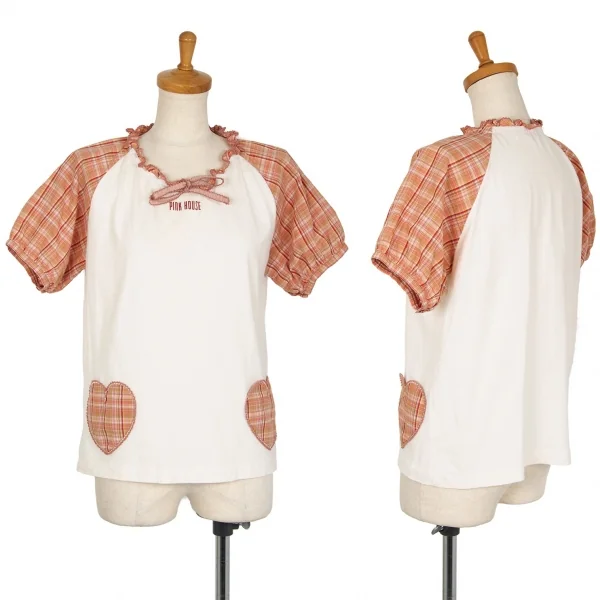 ピンクハウスPINK HOUSE 袖チェックラグラン切替ハートポケットロゴTシャツ アイボリー他L