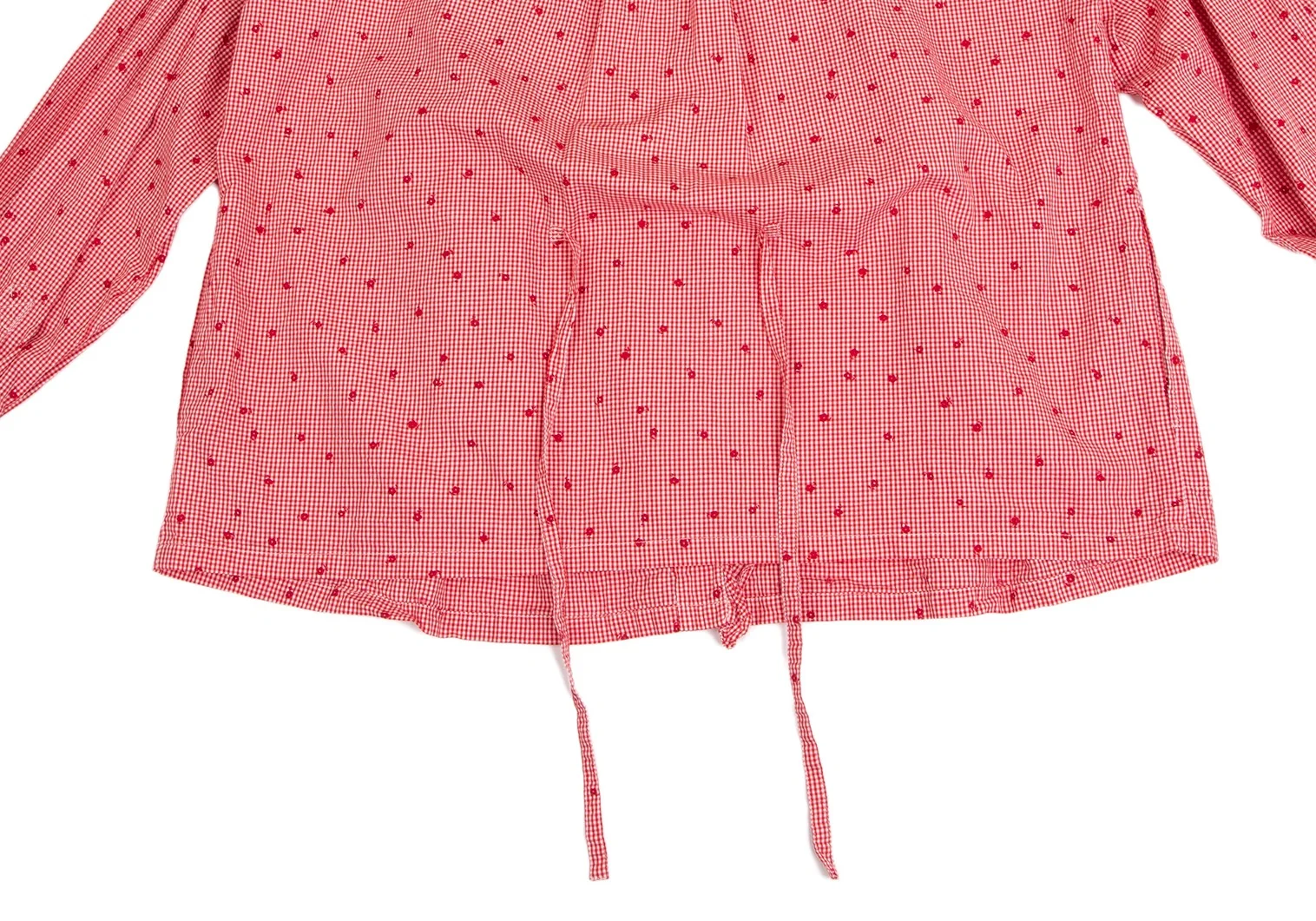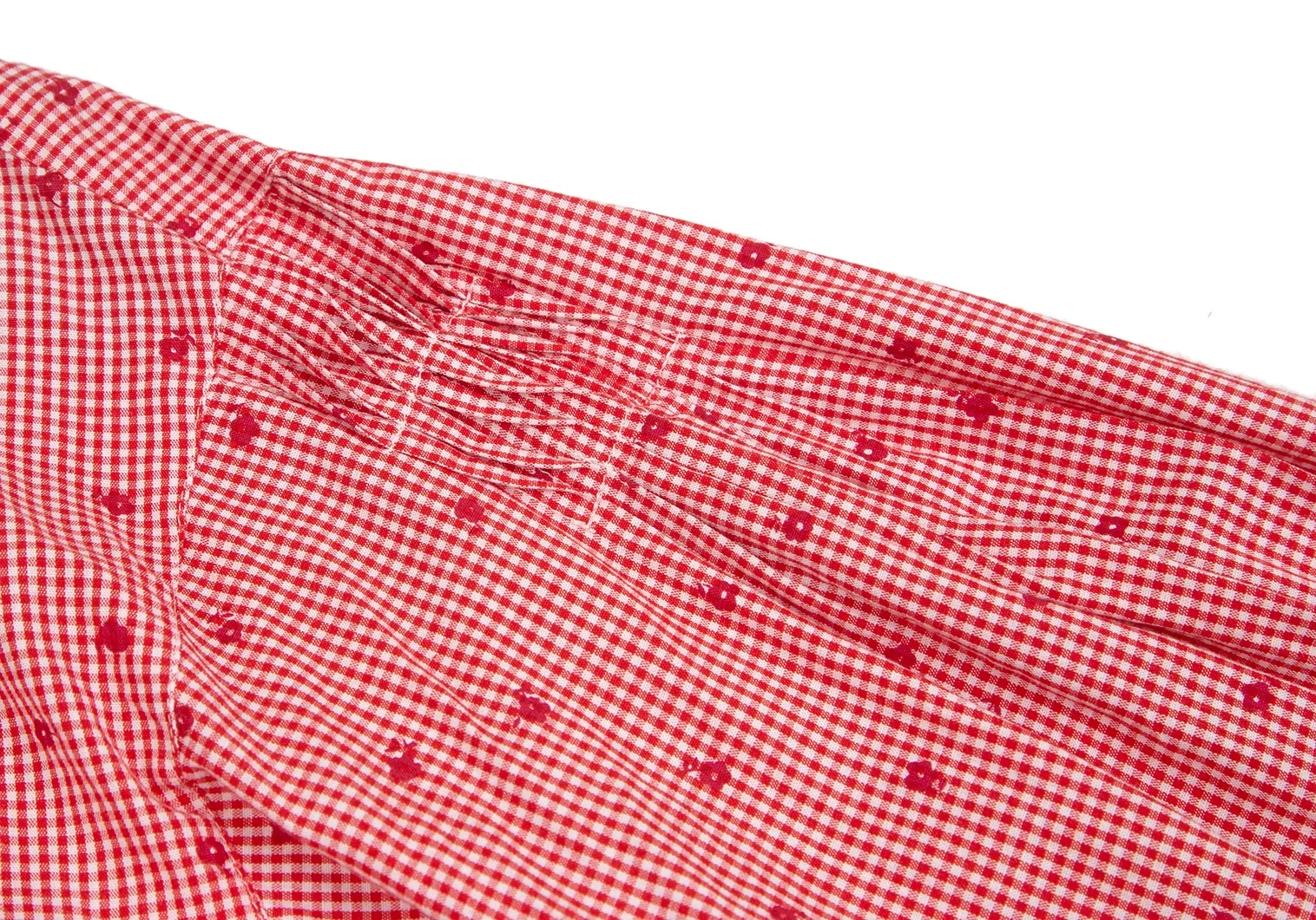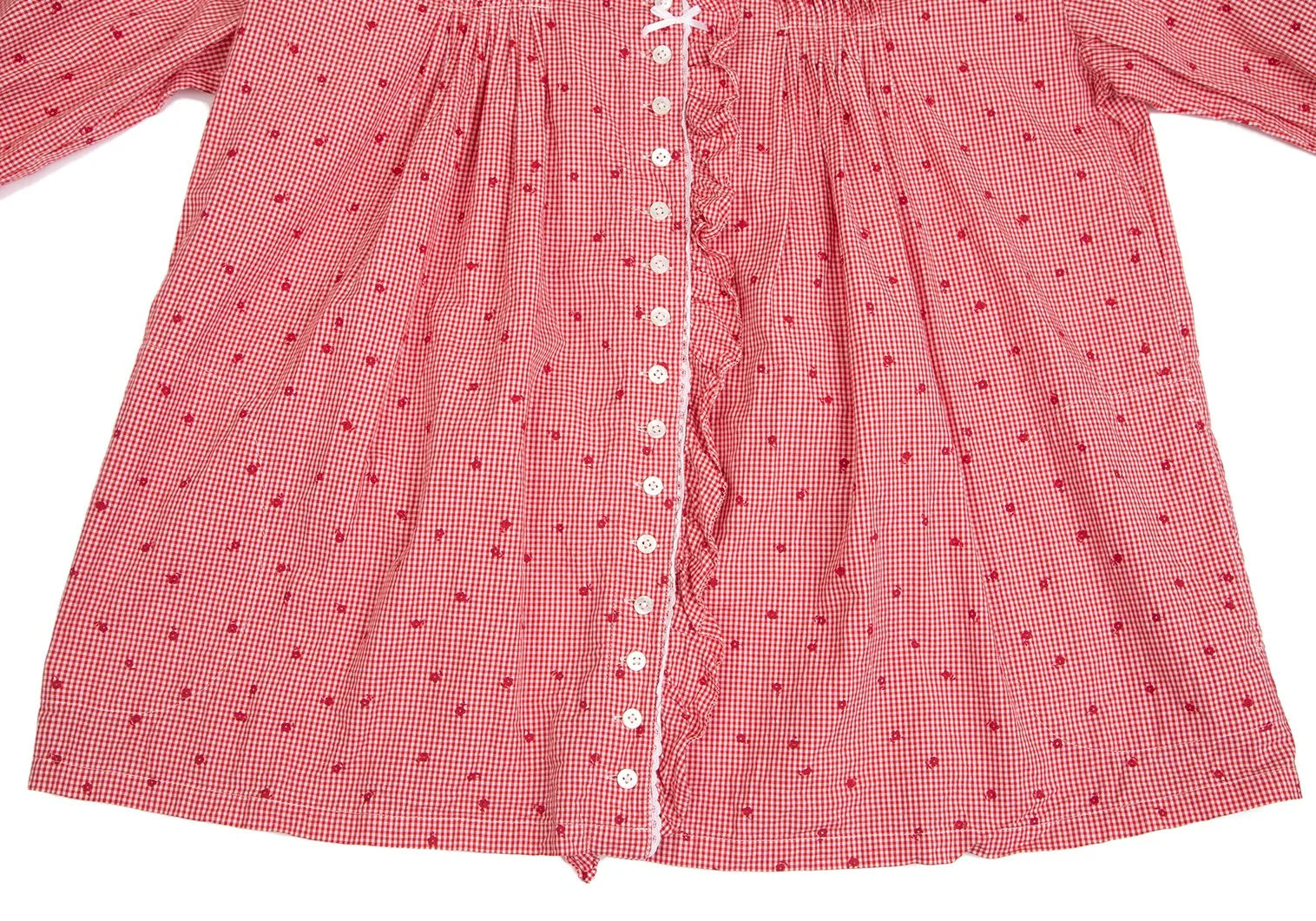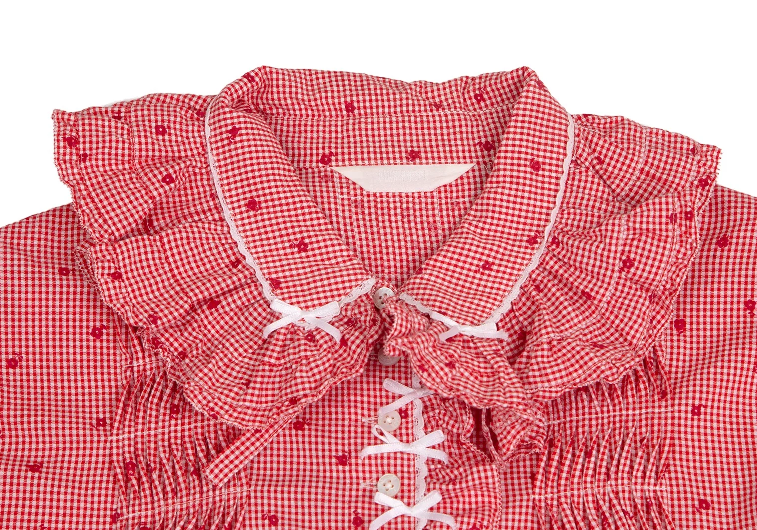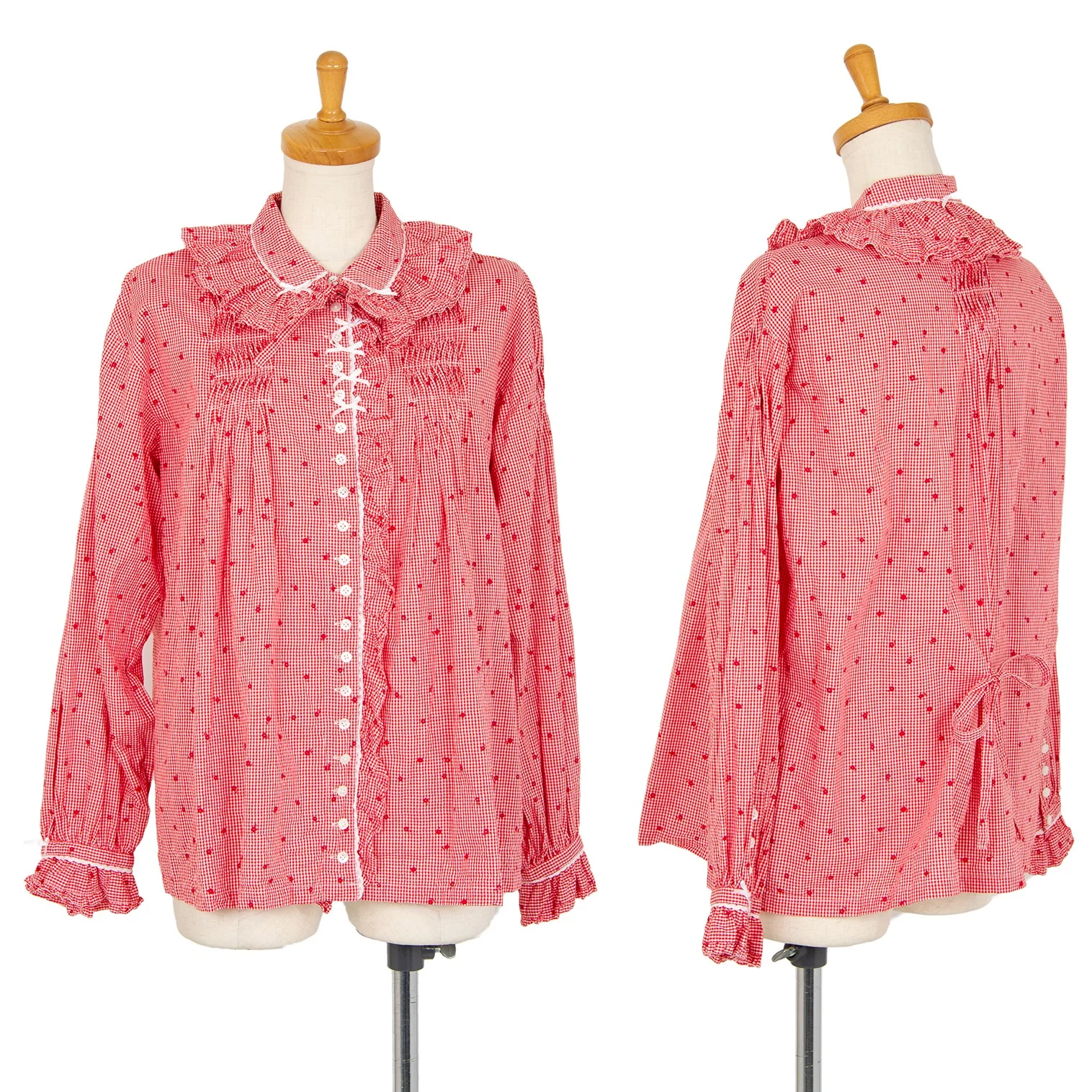 ピンクハウスPINK HOUSE 花柄ギンガムチェックフリルネックリボンデザインシャツ 赤白M位