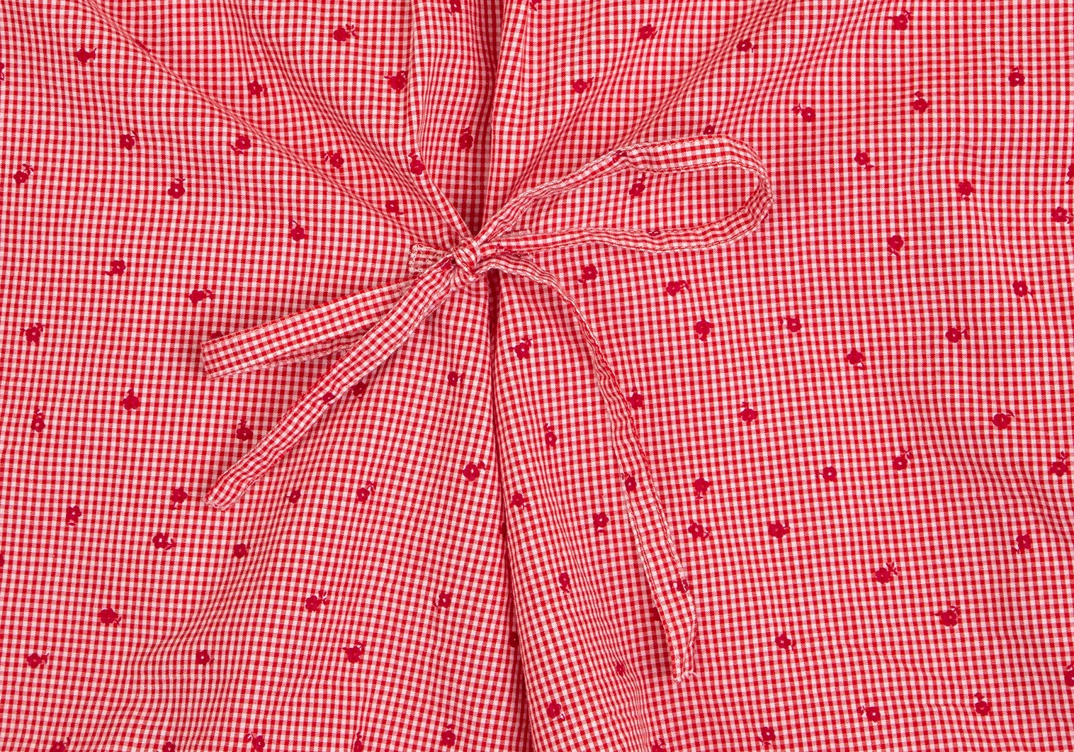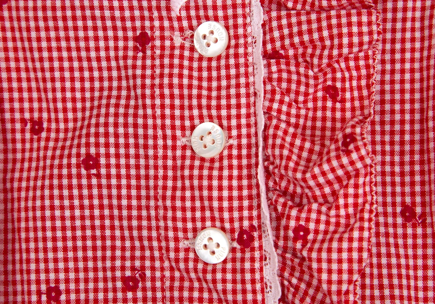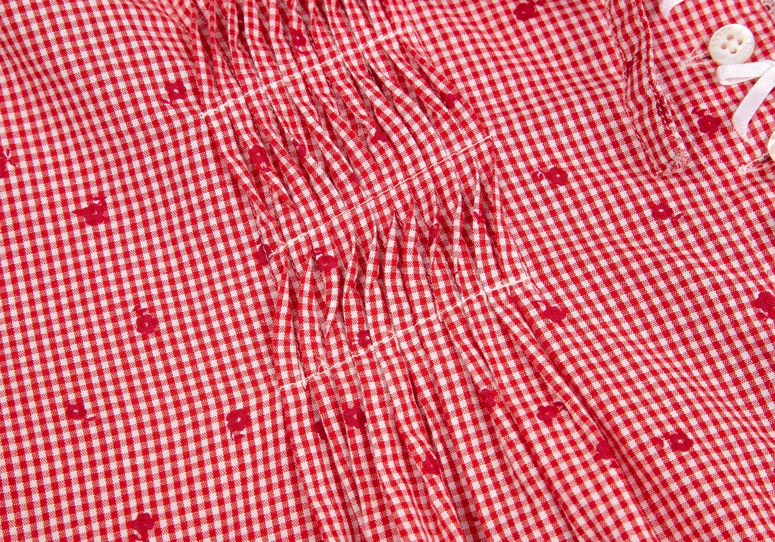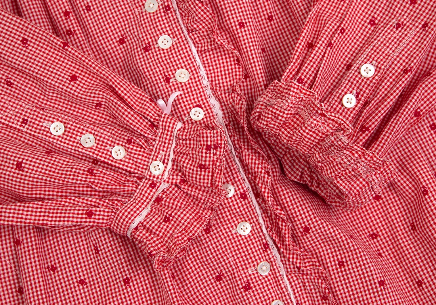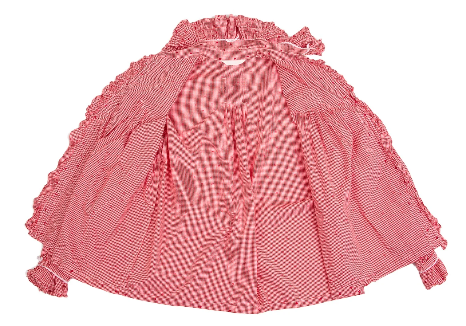 ピンクハウスPINK HOUSE 花柄ギンガムチェックフリルネックリボンデザインシャツ 赤白M位