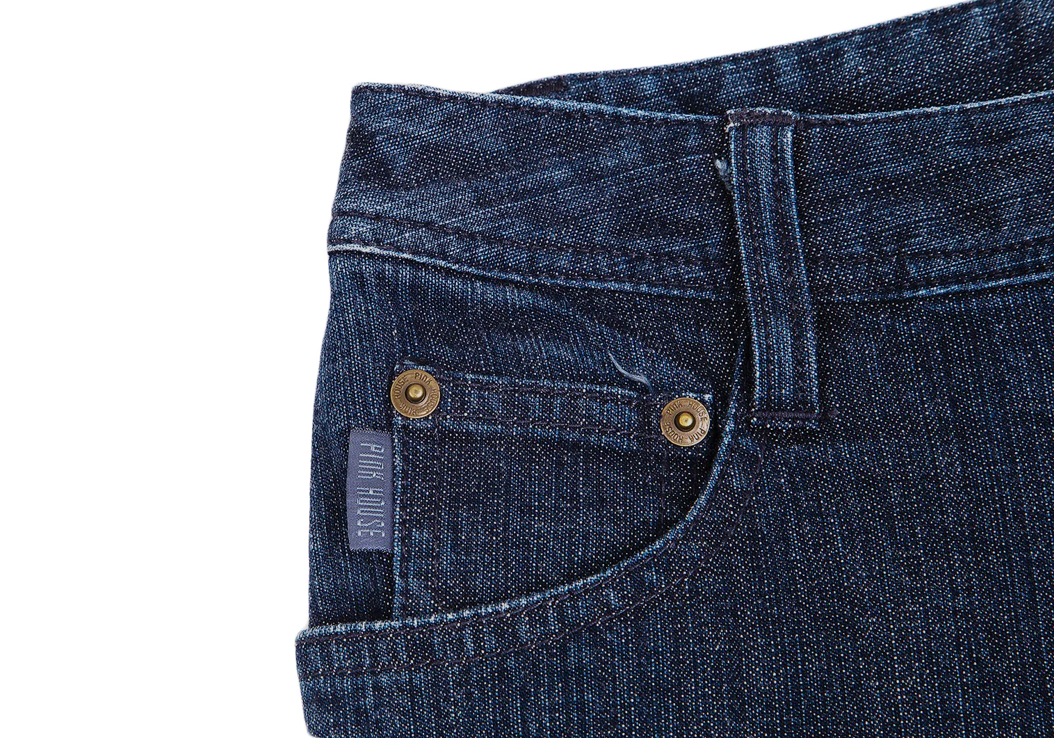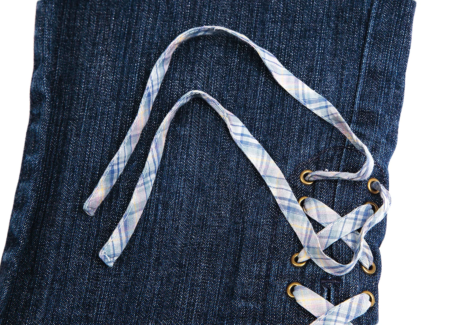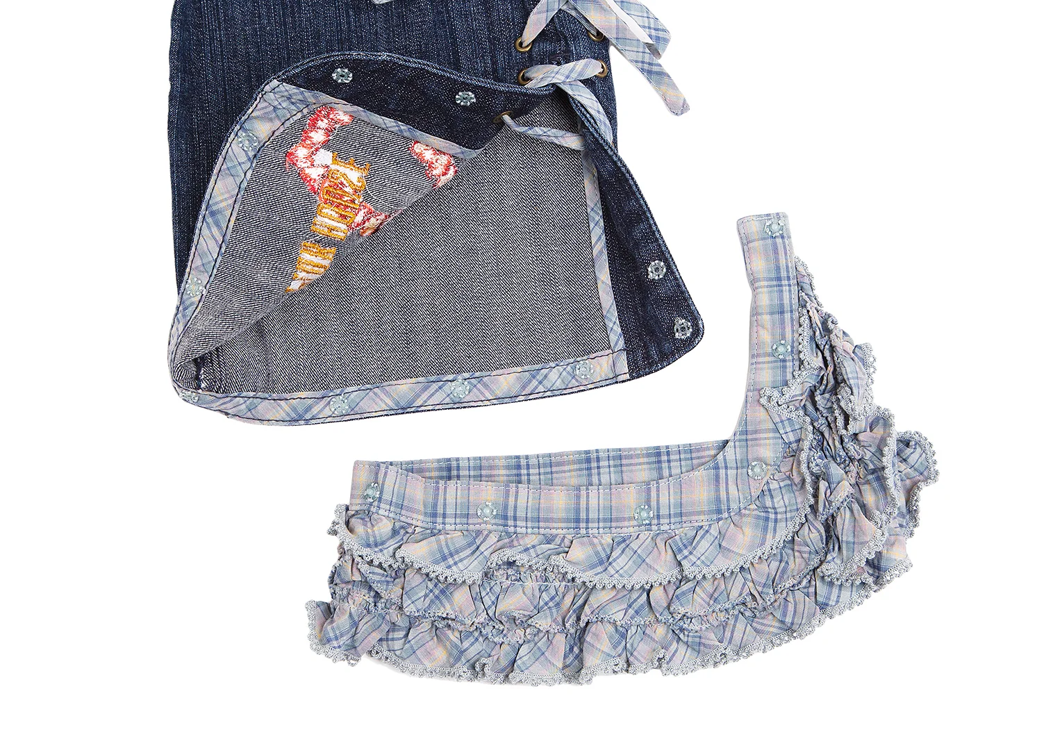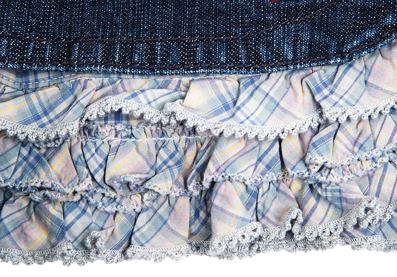 ピンクハウスPINK HOUSE ロゴ刺繍裾フリルレースアップクロップドデニムパンツ インディゴM