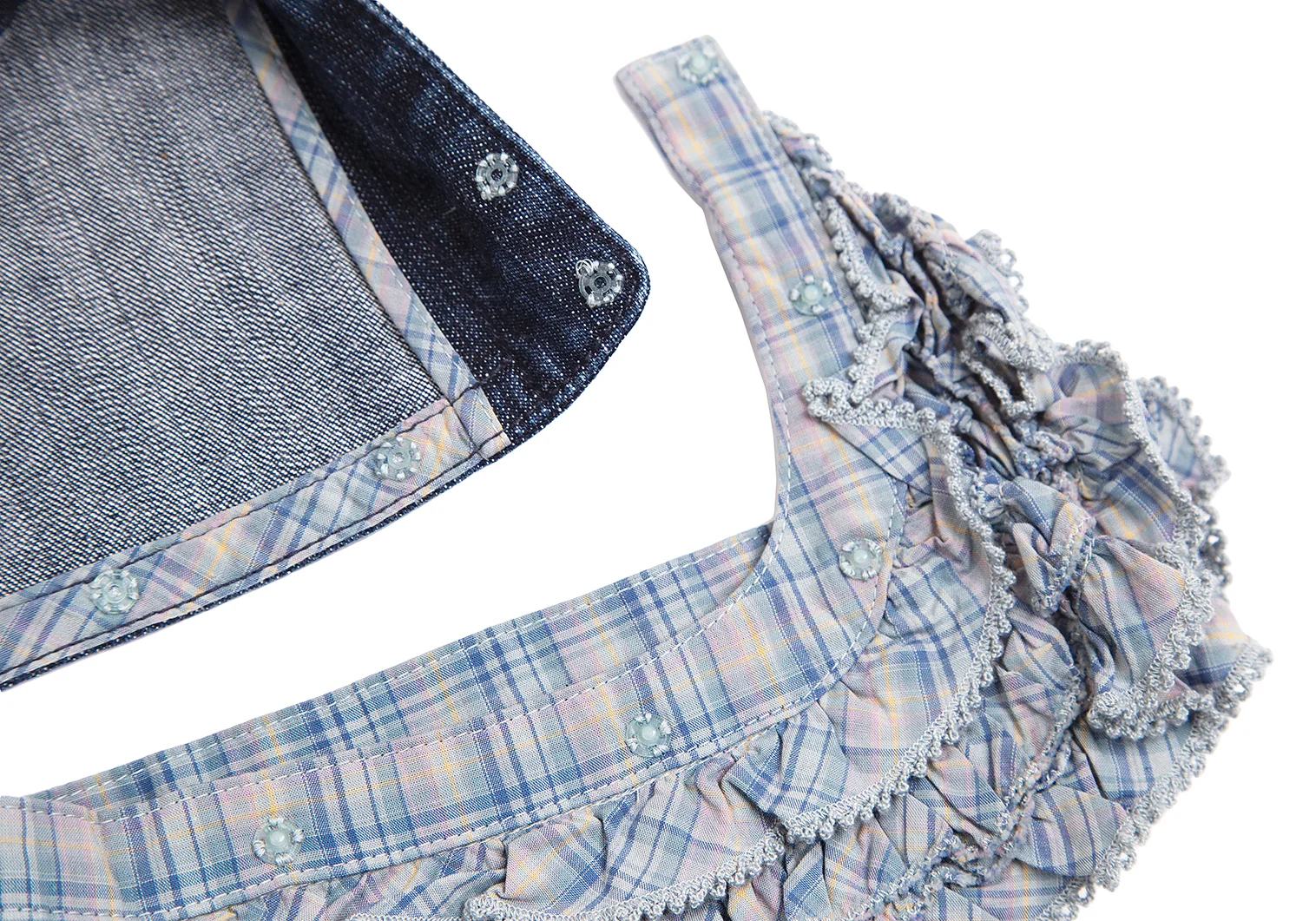 裾のフリルが取り外し可能です。目立ったシミ、汚れ、ほつれ等なくいい状態です。クリーニング済み